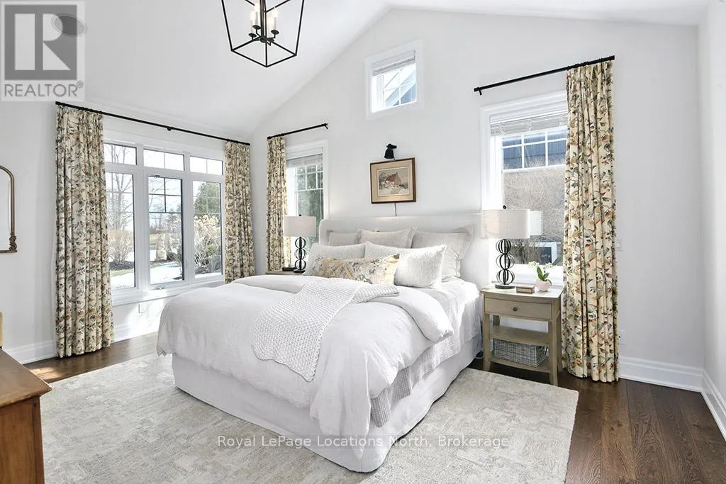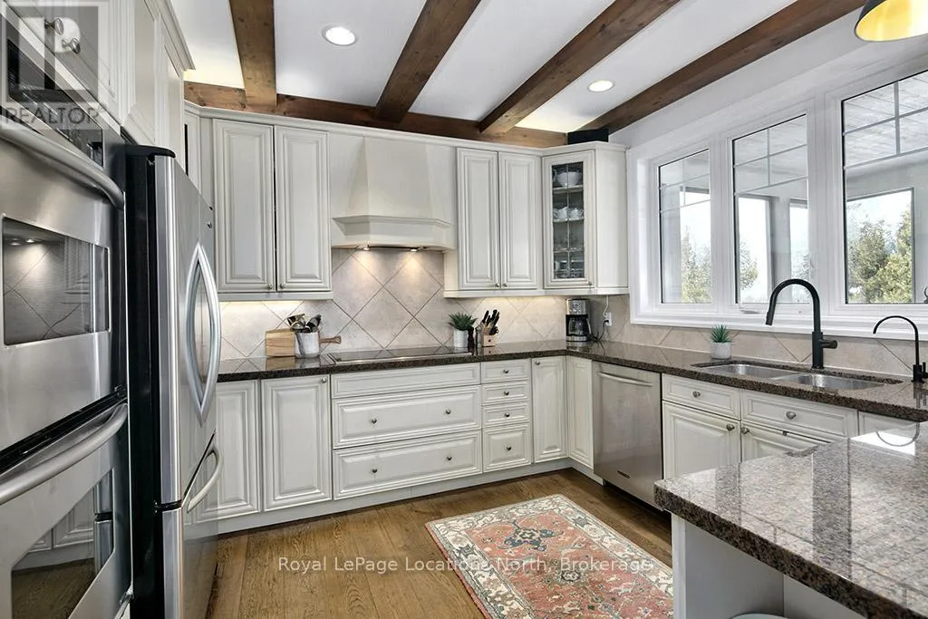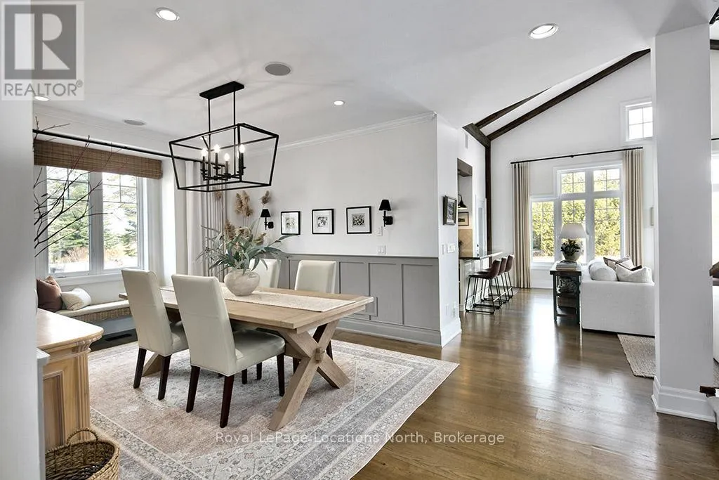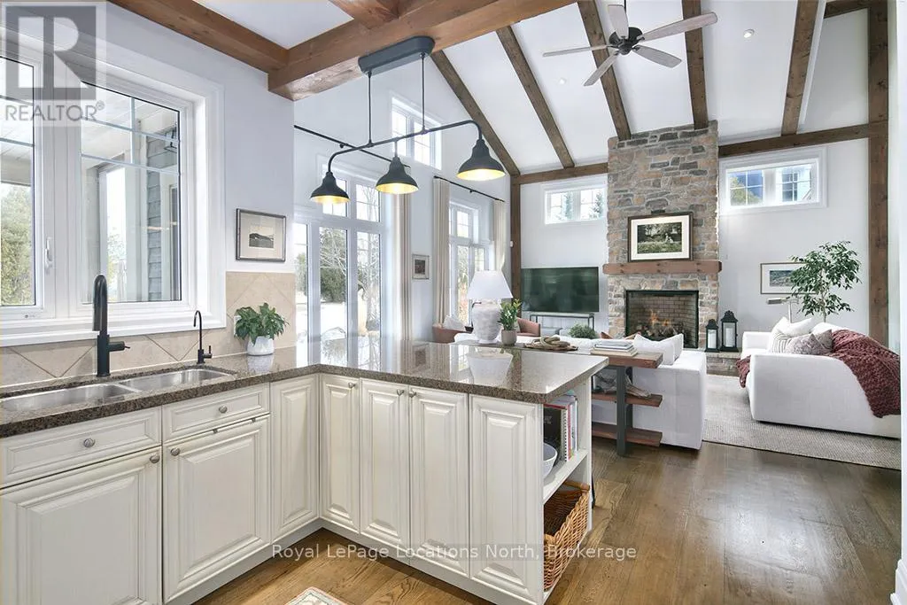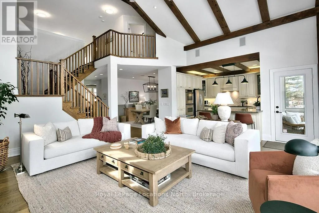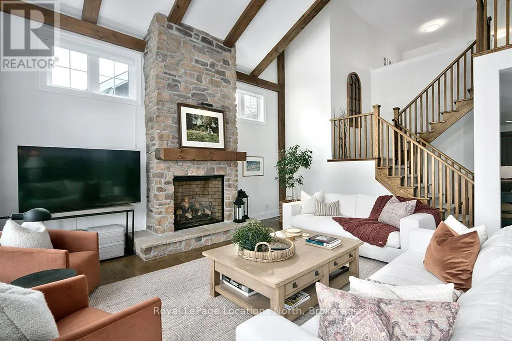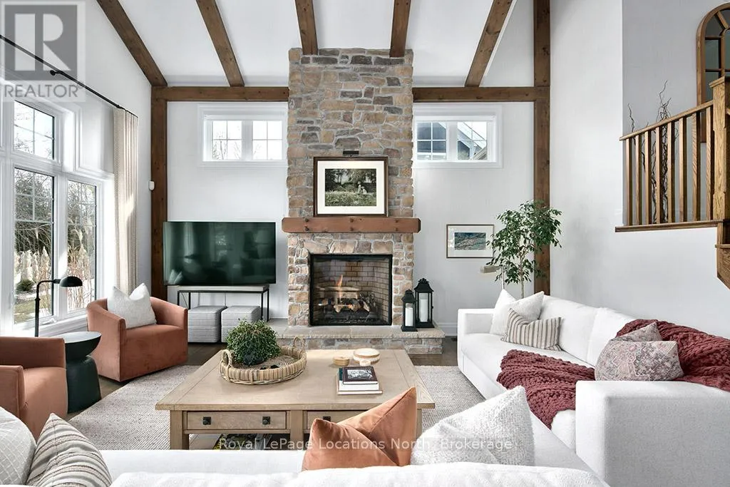 Cross Streets: East Ridge Drive & Rankins Crescent. ** Directions: Hwy 26 to Lora Bay Drive, Take 1st Exit onto East Ridge Drive. Follow ER Drive to SIGN. Located on one of the most coveted streets in the Lora Bay community, Welcome to East Ridge Drive. Meandering through the east side of the neighbourhood, this quiet, tree-lined street is framed by mature gardens, parkettes, and direct access to the Bruce Trail. Residents enjoy Lora Bay's exceptional amenities, including a championship golf course, private beach on Georgian Bay, state-of-the-art fitness facility, clubhouse, and an active social calendar. This custom home sits on one of the finest lots on East Ridge, offering remarkable privacy while capturing expansive views of both the golf course and Georgian Bay. The professionally landscaped outdoor space features mature trees and gardens, open green space, and swoon-worthy views that change beautifully with the seasons. Inside, the heart of the home is the stunning great room, highlighted by wood beams, a floor-to-ceiling stone fireplace, and a wall of windows designed to showcase the breathtaking scenery East Ridge is known for. A Muskoka room seamlessly extends your living space, allowing you to enjoy the outdoors through every season. The kitchen offers ample storage and prep space for the chef, complete with bar seating for three, while the dining room seats eight or more-ideal for entertaining. The romantic primary suite features serene outdoor views, a five-piece ensuite, and a walk-in closet. A full bathroom, sun-soaked office, and mudroom/laundry complete the main level. Upstairs, two generous bedrooms share a four-piece bath, perfect for guests. The fully finished lower level offers a welcoming rec room, two additional bedrooms, and a three-piece bathroom-ideal for family and entertaining. Plenty of storage is found throughout, including an attached two-car garage with inside access. Updates include a new roof (2025), furnace w heat pump (2024), exterior painting (2024), EV Charger & new hardwood flooring. This is an exceptional opportunity to live the Lora Bay lifestyle from a truly spectacular home. (id:27476)