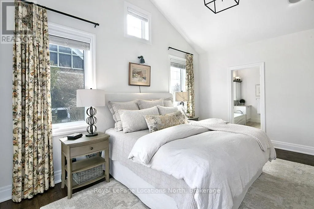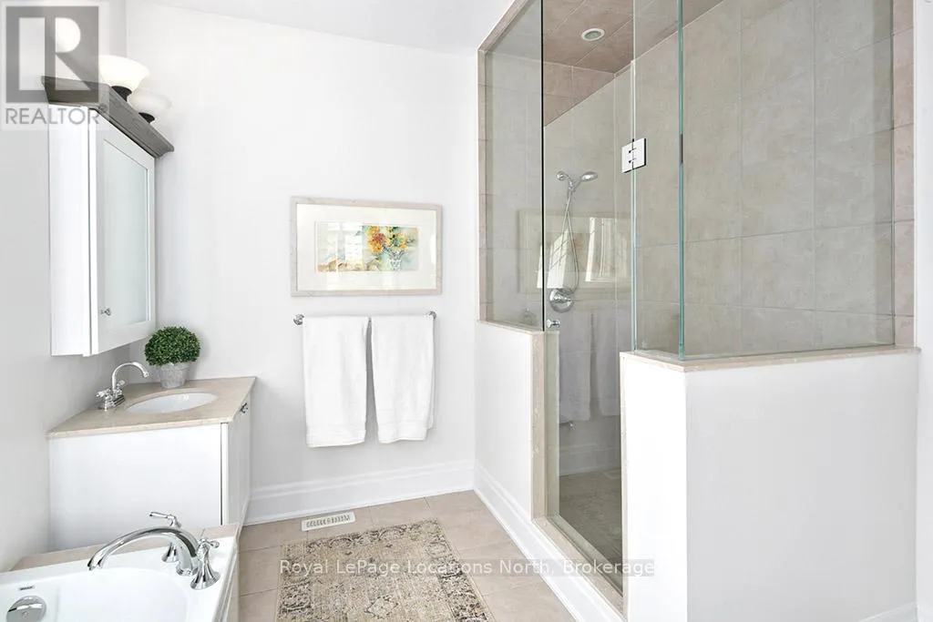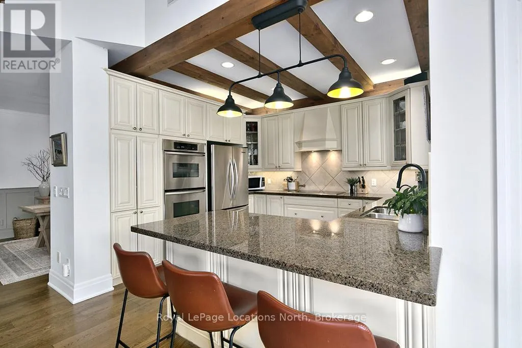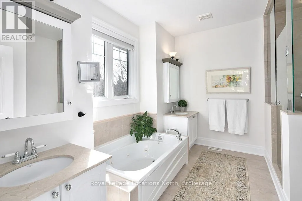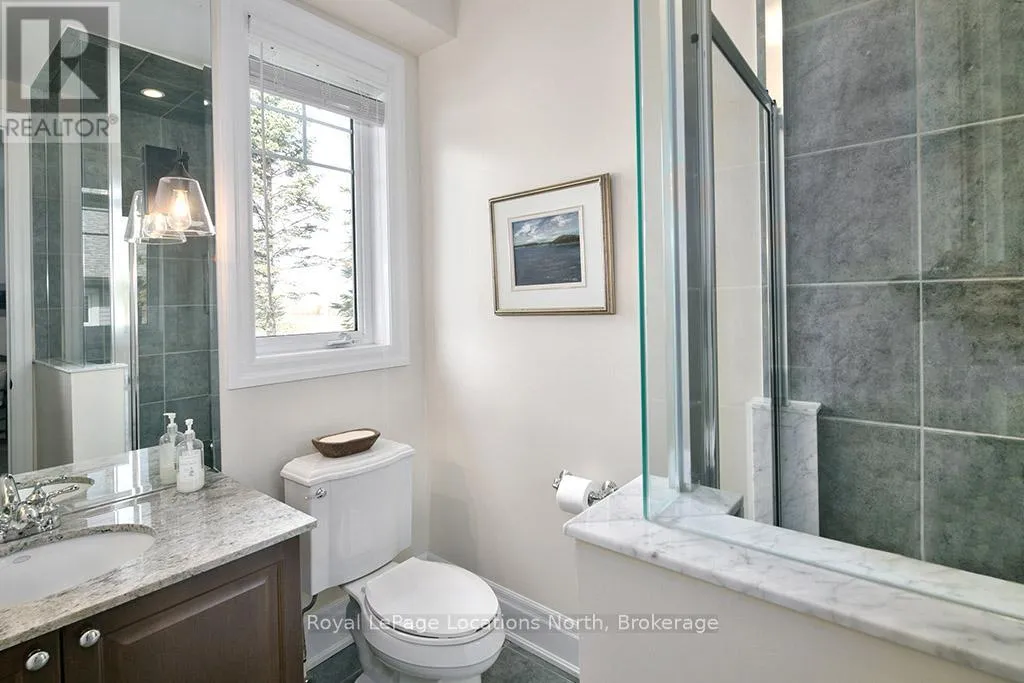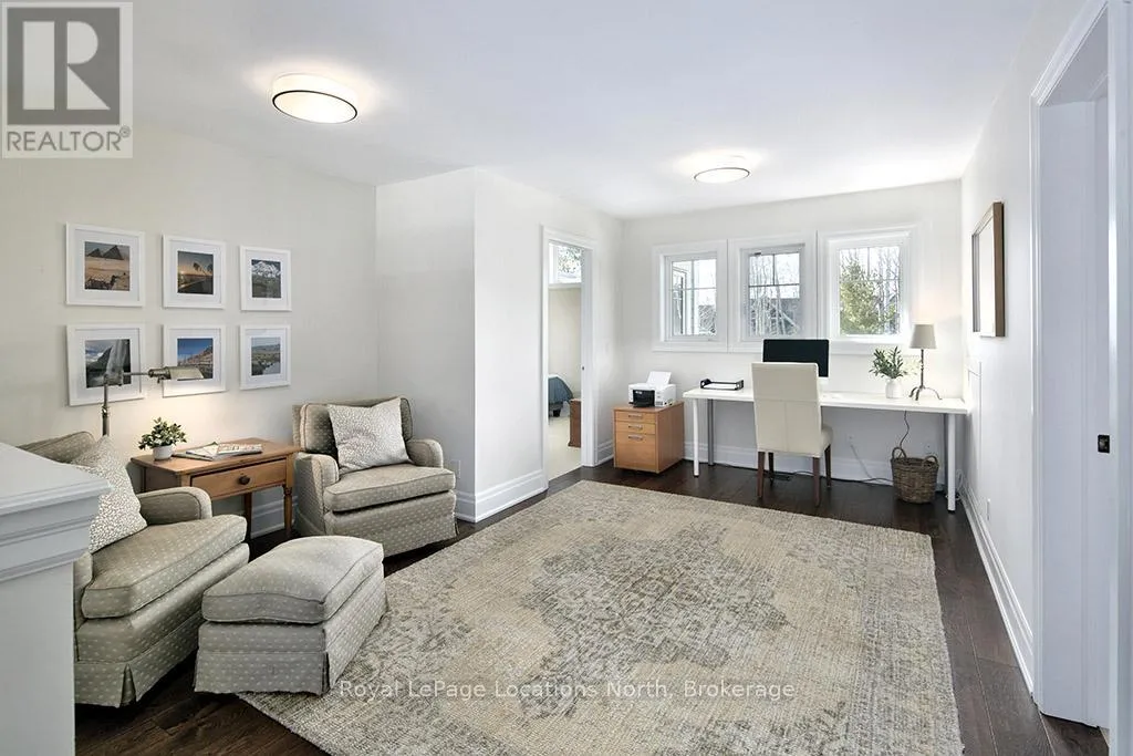Cross Streets: East Ridge Drive & Rankins Crescent. ** Directions: Hwy 26 to Lora Bay Drive, Take 1st Exit onto East Ridge Drive. Follow ER Drive to SIGN. Located on one of the most coveted streets in the Lora Bay community, Welcome to East Ridge Drive. Meandering through the east side of the neighbourhood, this quiet, tree-lined street is framed by mature gardens, parkettes, and direct access to the Bruce Trail. Residents enjoy Lora Bay's exceptional amenities, including a championship golf course, private beach on Georgian Bay, state-of-the-art fitness facility, clubhouse, and an active social calendar. This custom home sits on one of the finest lots on East Ridge, offering remarkable privacy while capturing expansive views of both the golf course and Georgian Bay. The professionally landscaped outdoor space features mature trees and gardens, open green space, and swoon-worthy views that change beautifully with the seasons. Inside, the heart of the home is the stunning great room, highlighted by wood beams, a floor-to-ceiling stone fireplace, and a wall of windows designed to showcase the breathtaking scenery East Ridge is known for. A Muskoka room seamlessly extends your living space, allowing you to enjoy the outdoors through every season. The kitchen offers ample storage and prep space for the chef, complete with bar seating for three, while the dining room seats eight or more-ideal for entertaining. The romantic primary suite features serene outdoor views, a five-piece ensuite, and a walk-in closet. A full bathroom, sun-soaked office, and mudroom/laundry complete the main level. Upstairs, two generous bedrooms share a four-piece bath, perfect for guests. The fully finished lower level offers a welcoming rec room, two additional bedrooms, and a three-piece bathroom-ideal for family and entertaining. Plenty of storage is found throughout, including an attached two-car garage with inside access. Updates include a new roof (2025), furnace w heat pump (2024), exterior painting (2024), EV Charger & new hardwood flooring. This is an exceptional opportunity to live the Lora Bay lifestyle from a truly spectacular home. (id:27476)
