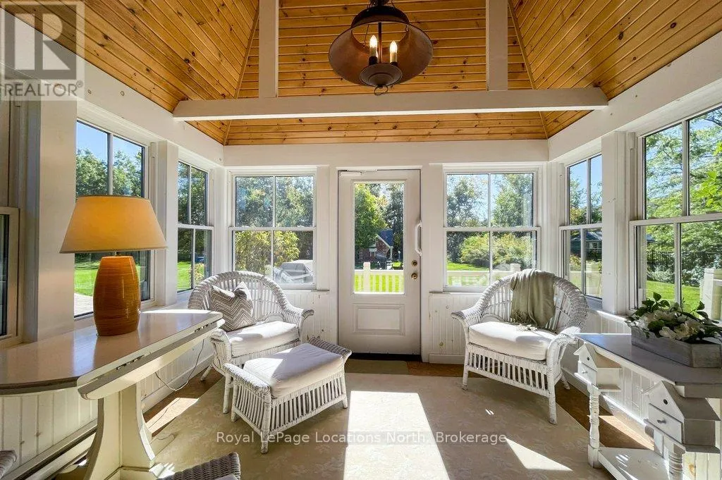 Cross Streets: Grey Road 19 and Snowbridge Way. ** Directions: Follow First St/ON-26 W, Mountain Rd and Grey County Rd 19 to Snowbridge Way in The Blue Mountains. Effortless turnkey property in Historic Snowbridge, perfectly positioned at the base of Blue Mountain. Surrounded by world-class 4-Season recreation, this beautifully maintained home places you minutes from Blue Mountain Resort, the region's premier private ski clubs, the waters and beaches of Georgian Bay, and several exceptional golf courses. Whether skiing in winter, cycling the Georgian Trail, golfing at Monterra, or enjoying summer days on the Bay, this property offers seamless access to the very best of Southern Georgian Bay living. Thoughtfully designed and filled with natural light, cathedral windows create bright and inviting living spaces throughout. The home features 3 spacious bedrooms and 2.5 bathrooms, offering a comfortable layout ideal for both weekend escapes and full-time living. A stunning four-season sunroom captures peaceful escarpment views and provides the perfect place to enjoy morning coffee, quiet afternoons, or relaxed evenings with family and friends. Designed for both comfort and entertaining, the home offers multiple gathering spaces including two indoor fireplaces, an oversized back deck for summer entertaining, and a dedicated outdoor fire pit area ideal for cozy après-ski evenings after a day on the slopes. Interior design by Catherine Arcaro of Farrow Arcaro Design adds warmth and refined country elegance throughout the home. The lower level provides excellent additional living space with a large entertainment room, full bathroom, storage room, and utility area, with potential to add a fourth bedroom if desired. Whether used as a full-time residence, weekend retreat, or investment property, this exceptional Snowbridge home offers the perfect balance of comfort, location, and four-season lifestyle in the heart of Blue Mountain. Property is also available furnished. (id:27476)