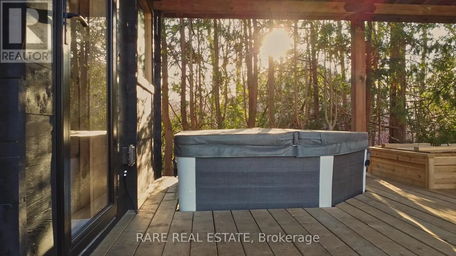 Cross Streets: HWY26 and Blue Mountain Dr. ** Directions: Please park on a drive way only. All-Season Retreat in The Blue Mountains. Own the lifestyle everyone is looking for. Perfectly located in the heart of The Blue Mountains, this stunning retreat offers private beach access with sandy shores and breathtaking Georgian Bay views. Steps to the Georgian Trail (40 km of year-round hiking, biking & cross-country skiing) and minutes to the ski lifts. Unwind in your private spa oasis featuring a sauna, hot tub, and cold plunge. Designed for relaxation, built for every season. Recent upgrades: new roof (2024), spa (2024), shed (2024). EV charging outlet on-site. Sold fully furnished, completely turn-key. Move in. Relax. Enjoy.This isn't just a property, it's the Blue Mountain lifestyle waiting for you. (id:27476)