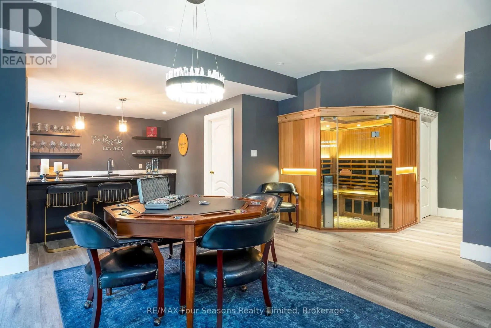 Grey Rd 19 to Kitzbuhl to Aspen Way to #149 Luxury Home in Coveted Nipissing Ridge - 7 Beds, 8 Baths. This grand-scale luxury home offers 6,600 sq. ft. of finished living space across three levels, located in the prestigious Nipissing Ridge neighborhood-ideal for year-round living or weekend retreats near the ski hills. Featuring 7 bedrooms (6 with private ensuites, including one on the main floor) and 8 baths, this home is designed for comfort, space, and entertaining. The open-concept gourmet kitchen includes high-end finishes, a large dining area, and a walk-out balcony with gas hookup for year-round barbecuing. A separate entrance and back staircase lead to two private bedrooms with full ensuites-perfect for teens, guests, or in-law suites. Enjoy partial bay views and large windows overlooking a beautiful garden with a creek, wooded area, and custom treehouse. The oversized two-car garage provides space for recreational vehicles and inside entry to both the main and lower levels. Multiple outdoor spaces include a deck off the kitchen, living room, and primary suite. The lower level walkout is designed for entertaining with a bar, kitchenette, gym, and home theatre, along with a patio area for outdoor gatherings. Conveniently located near beaches, and premier ski clubs, this home offers an unmatched combination of luxury, lifestyle, and location. Truly one of a kind-don't miss this rare opportunity! (id:27476)