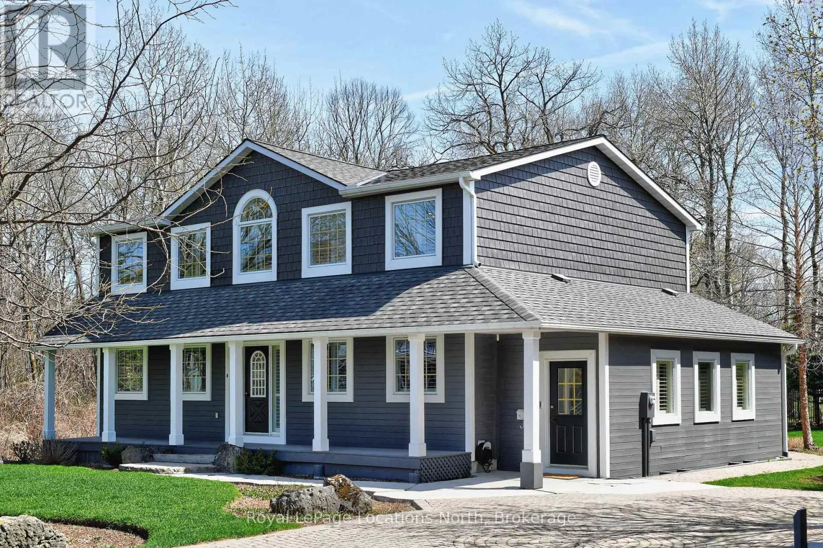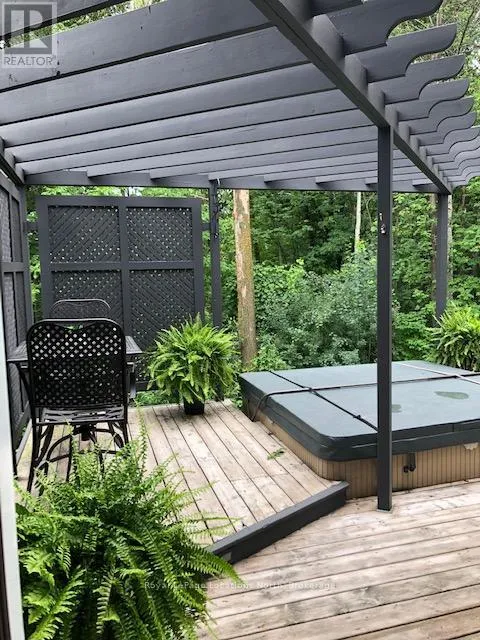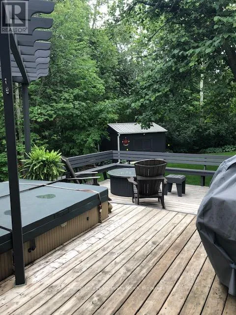 Cross Streets: Grey Rd 19 & Monterra Rd. ** Directions: Monterra Rd, North on Brooker Blvd, to Liisa's Lane. Beautiful CUSTOM BUILT home/chalet, on a cul-de-sac, steps to Blue Mountain Village & Skiing! Privacy w 3 acre protected greenspace, never have a house on your east side! 4 bedroom, 4 full bath, 3332 sqft of finished living space. A primary bedroom suite upstairs + a large main floor bedroom. Guests use main door on the covered front porch, you can enter into the side breezeway w slate tiles & large windows for lots of light, a 2nd back entrance & 2nd stairway to the lower level. Chef's dream kitchen w attractive granite counters ,lots of cupboards & counter space, SS appliances & breakfast bar. Open concept w large dining area to fit all your dining cabinets & overlooks the gorgeous backyard w walkout to the back dining patio.2nd walkout to hot tub deck w greenspace privacy, built-in gas firepit, backyard oasis w beautiful large trees. Main floor bathroom has a convenient shower for use after your hot tub & granite counters. Large living room w gas fireplace, all front rooms (main & 2nd floor) have custom shutters, w blinds on other windows. Upgraded Awning Windows (hinged at the top, creating an awning effect provides excellent ventilation & rain protection). Primary bedroom suite w green space views, 2nd cozy gas fireplace, his & hers closets, mirrored dressing area & ensuite w granite counters, heated floors & soaker tub in an attractive stacked-stone enclave. 2 more large bedrooms on this floor & main bath w gorgeous walk-in shower & granite counters. Main basement staircase has a door to provide quiet between levels, huge family room currently set up as a home office w ceramic "wood-plank look" floors, an extensive built-in wall unit,4th full bathroom w sauna, a laundry room,utility/storage room w built-in ski-tuning bench, on-demand (owned) water heater, another storage room. Enjoy the backyard oasis created by renowned Landmark Group, large drive-shed & side parking for10 cars.Note jumbo flagstones front & back! Visit REALTOR website for further informatio (id:27476)