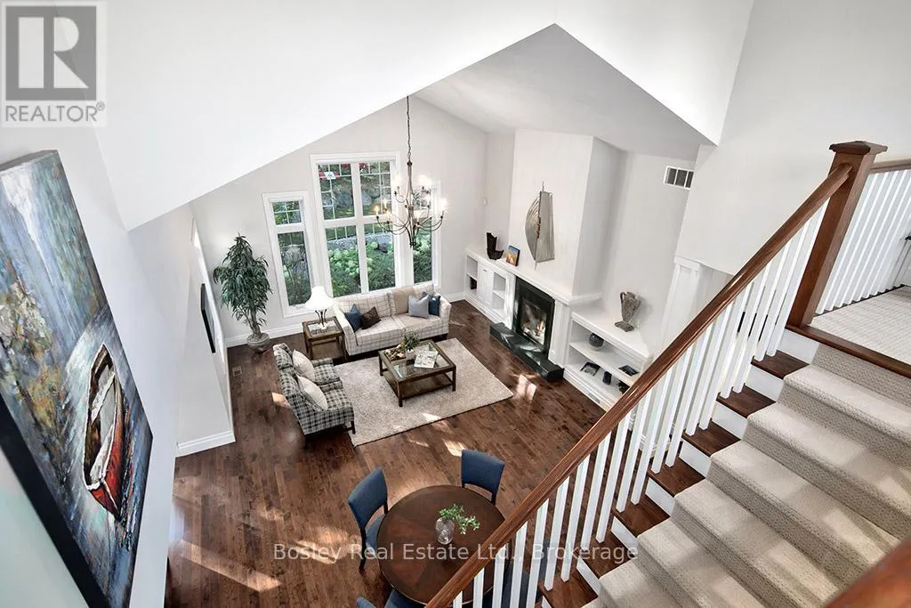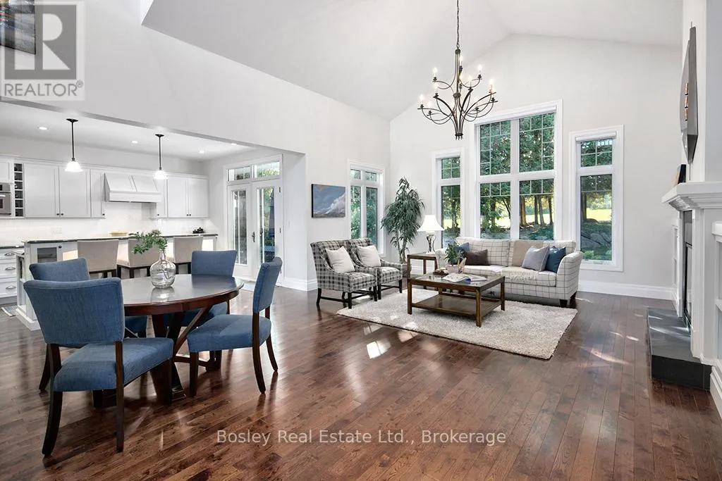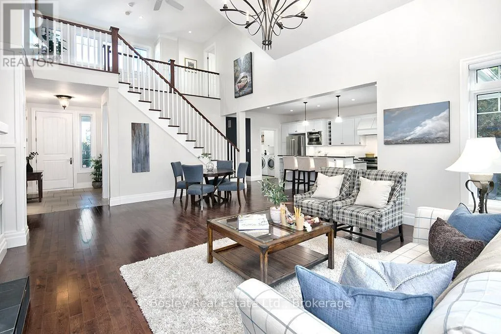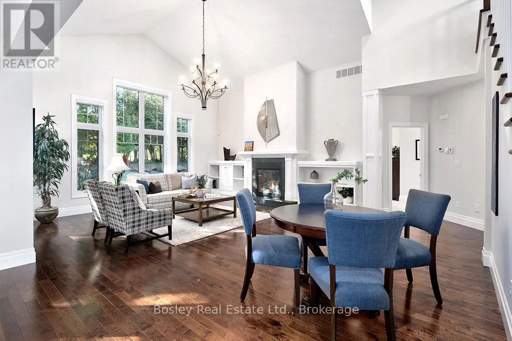 Cross Streets: HIGHWAY 26 TO LORA BAY, LEFT AT THE ROUNDABOUT TO LANDRY LANE. ** Directions: From hwy 26 turn on to Lora Bay Drive. Third exit at roundabout. Left on landry. property on left. Introducing a stunning 5-bedroom custom residence by renowned builder Dezign2000, perfectly situated in the exclusive Lora Bay community. Backing onto the driving range and surrounded by mature trees and landscaped gardens, this home offers luxurious seclusion and refined living. Inside, wide-plank oak floors, soaring ceilings, and timeless design set the tone. The gourmet kitchen features white shaker cabinetry, granite counters, gas cooktop, and walkout to a private terrace. The great room impresses with vaulted ceilings, custom built-ins, and a dramatic gas fireplace. The main-floor primary suite is a tranquil retreat with garden access, walk-in closet, and a spa-like ensuite with heated floors, soaker tub, and glass shower. A formal dining room (or office), powder room, laundry with garage access, and oversized double garage complete the main level.Upstairs offers two guest bedrooms, a sitting area, and a beautifully appointed bathroom. The finished lower level expands your space with two more bedrooms, a den, spacious rec. room, bathroom with heated floors, large storage room, and cold cellar. Additional features include a built-in home audio system (ceiling and in-wall speakers, home audio connection), whole-house air purification system, brand-new furnace (March 2025). The exterior was fully painted in 2023.Outdoors, enjoy stone pathways, lush perennial gardens, and a private patio oasis. Just a short walk to the beautiful Georgian Trail system and minutes from Thornbury. Lora Bay residents enjoy two private beaches, championship golf, members lodge, dining, and curated social events. Indulge in a four season lifestyle that's sure to impress. Community fees (GCECC): $2,280/year. (id:27476)