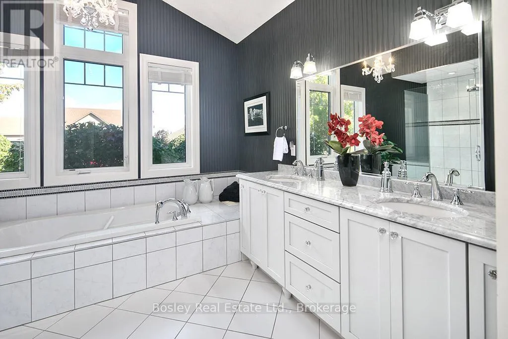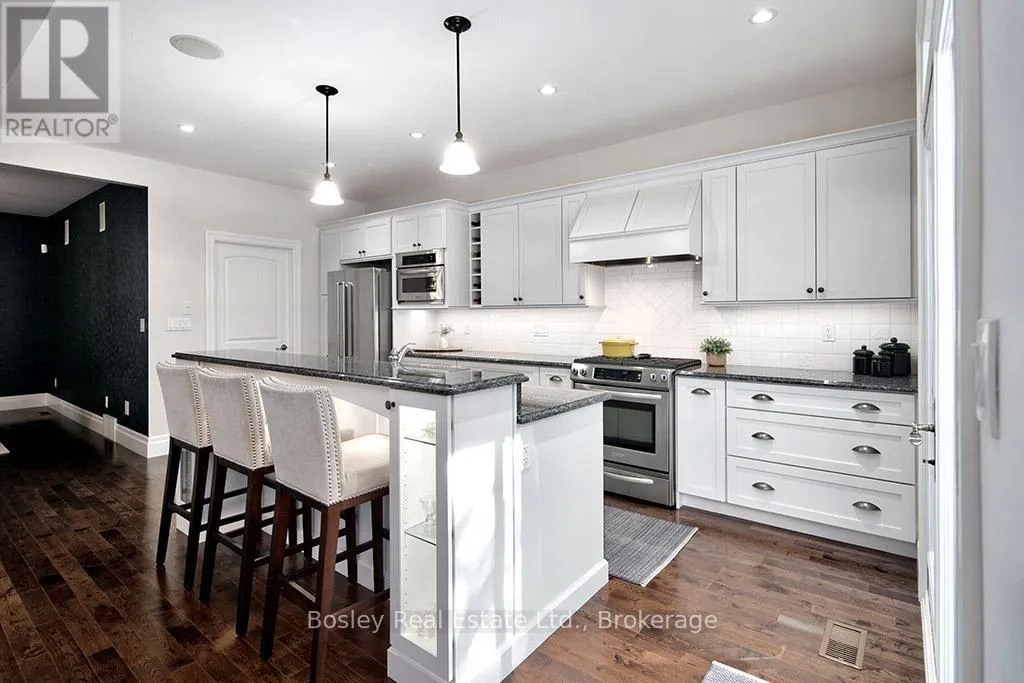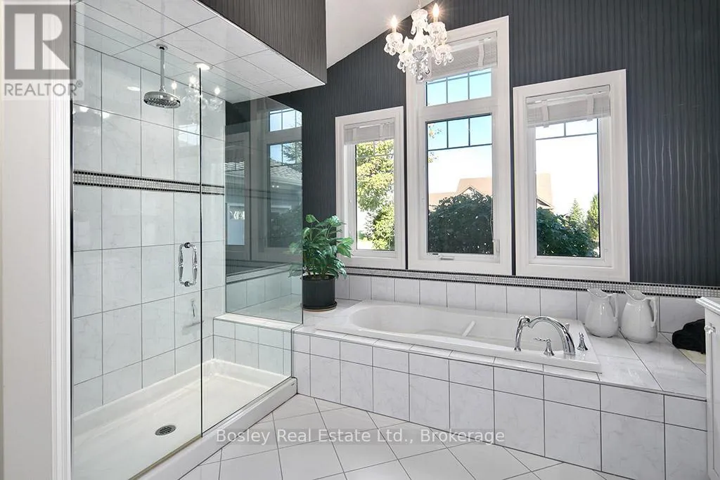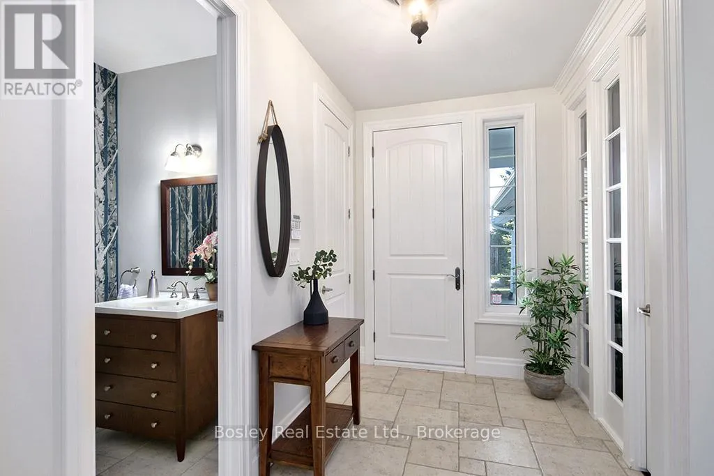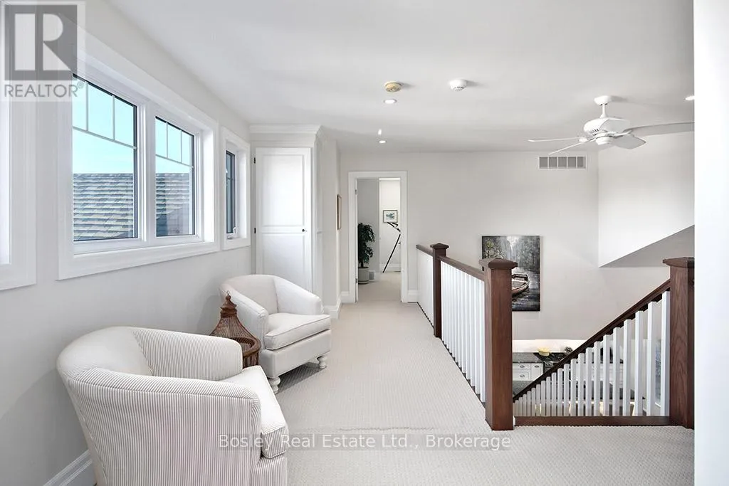 Cross Streets: HIGHWAY 26 TO LORA BAY, LEFT AT THE ROUNDABOUT TO LANDRY LANE. ** Directions: From hwy 26 turn on to Lora Bay Drive. Third exit at roundabout. Left on landry. property on left. Introducing a stunning 5-bedroom custom residence by renowned builder Dezign2000, perfectly situated in the exclusive Lora Bay community. Backing onto the driving range and surrounded by mature trees and landscaped gardens, this home offers luxurious seclusion and refined living. Inside, wide-plank oak floors, soaring ceilings, and timeless design set the tone. The gourmet kitchen features white shaker cabinetry, granite counters, gas cooktop, and walkout to a private terrace. The great room impresses with vaulted ceilings, custom built-ins, and a dramatic gas fireplace. The main-floor primary suite is a tranquil retreat with garden access, walk-in closet, and a spa-like ensuite with heated floors, soaker tub, and glass shower. A formal dining room (or office), powder room, laundry with garage access, and oversized double garage complete the main level.Upstairs offers two guest bedrooms, a sitting area, and a beautifully appointed bathroom. The finished lower level expands your space with two more bedrooms, a den, spacious rec. room, bathroom with heated floors, large storage room, and cold cellar. Additional features include a built-in home audio system (ceiling and in-wall speakers, home audio connection), whole-house air purification system, brand-new furnace (March 2025). The exterior was fully painted in 2023.Outdoors, enjoy stone pathways, lush perennial gardens, and a private patio oasis. Just a short walk to the beautiful Georgian Trail system and minutes from Thornbury. Lora Bay residents enjoy two private beaches, championship golf, members lodge, dining, and curated social events. Indulge in a four season lifestyle that's sure to impress. Community fees (GCECC): $2,280/year. (id:27476)
