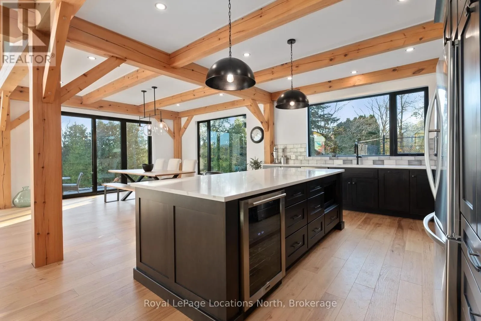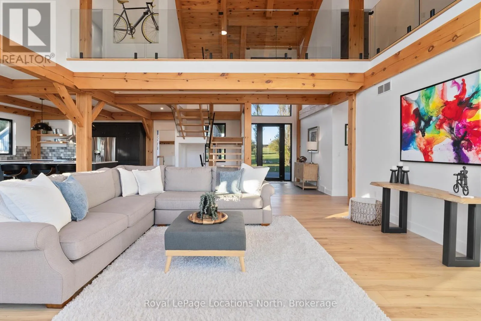 Cross Streets: Beaver VAlley Rd (Grey Rd 13) and Slabtown Rd. ** Directions: Beaver Valley Rd to Slabtown. South of Grey Rd. 40. Welcome to 113 Slabtown Rd W, this modern timber frame home is in one of the area's most charming and quietly sought-after enclaves. Thoughtfully designed and built with timeless craftsmanship, with nearly 5,000 sq. ft. of livable space the home balances luxury with an inviting warmth that makes everyday living feel relaxed and comfortable. Exceptional value for the quality of build. Soaring ceilings, exposed beams, and expansive windows create a sense of openness while drawing in natural light throughout the day. The main living spaces flow seamlessly-perfect for gathering with family, hosting friends, or simply settling into a slower pace. The kitchen, living, and dining areas are grounded by natural materials and thoughtful details, while multiple walkouts connect you effortlessly to the outdoors.The private primary suite offers a calming retreat with a serene ensuite. The main floor is complemented with an upstairs with 2 additional bedrooms and flexible spaces suited to work, hobbies, or guests. The fully finished lower level provides additional room for living and entertaining, complete with a large mudroom, an additional bedroom and direct garage access for practical day-to-day living.There is also a bonus room that would make a great sauna or ski tuning room. Outside, the setting is something truly special. Slabtown is a small, welcoming community-rural in feel, yet just a 5-minute drive to Thornbury's highly desirable community school, shops, dining, marina, and conveniences. Step outside your door to the Slabtown Dam for a summer swim or paddle the Beaver River at sunset. Ski clubs, golf, hiking trails, and Georgian Bay are all close by, making four-season adventure part of your rhythm.This is a home where mornings are slow, evenings gather everyone at the table, and the natural beauty of the Blue Mountains shapes the way you live. Warm, grounded, and quietly luxurious- 113 Slabtown Rd W offers a lifestyle that feels both connected and comfortably at ease. (id:27476)