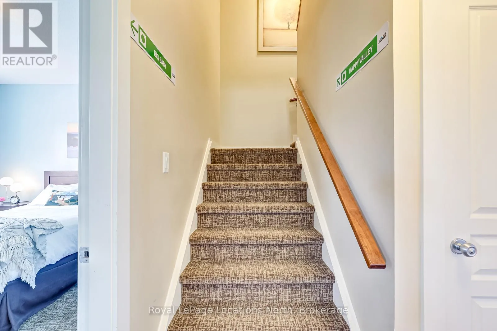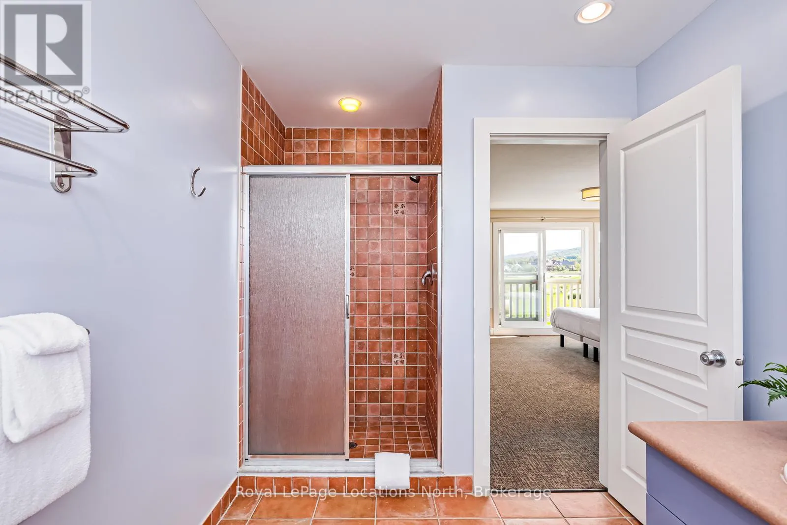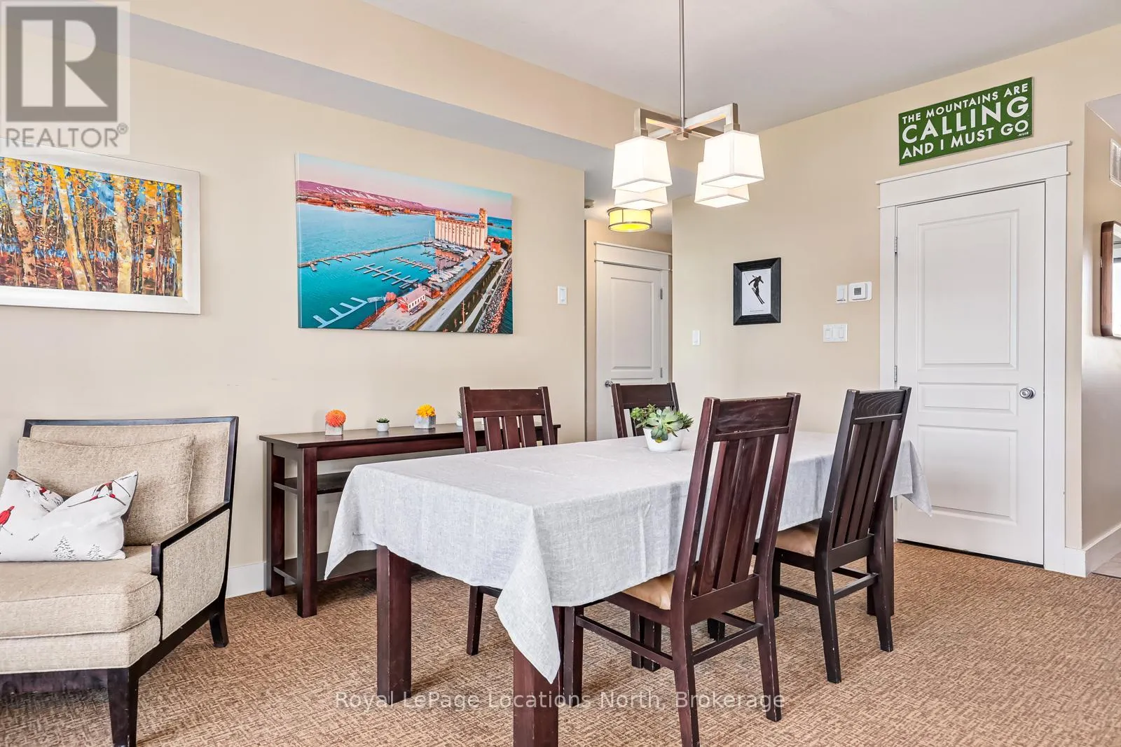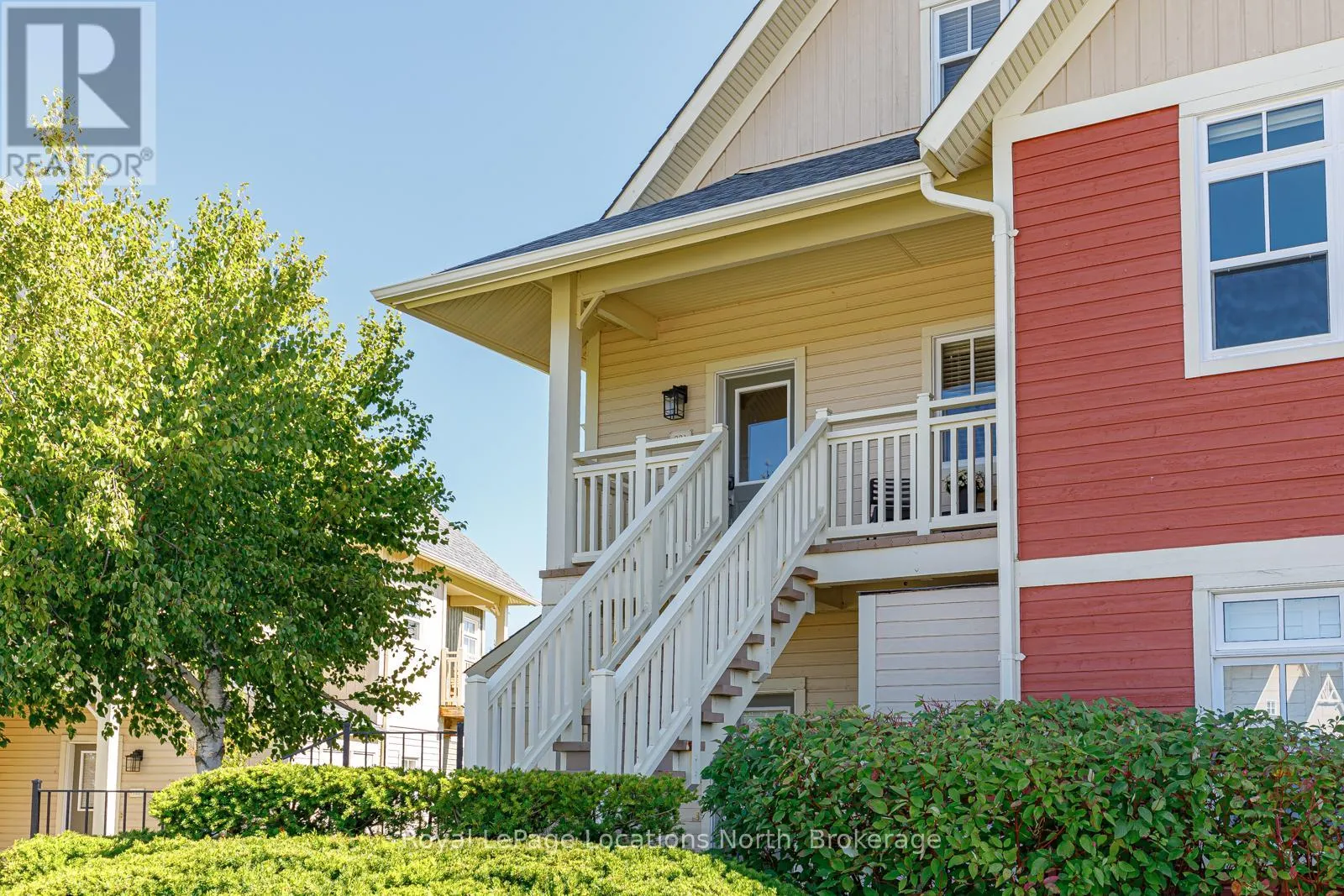 Mountain Road to 19 to Jozo Weider, then North on Fairway Court to end and building is on your right. Turnkey 3-bedroom, 2-bath upper-level end-unit condo in Rivergrass, just a short stroll to Blue Mountain Village with easy access to ski slopes, golf, hiking and cycling trails. A true four-season getaway in the heart of it all. Bright and inviting, the main floor offers a spacious family room with cathedral ceilings, cozy gas fireplace, and walkout to a private deck - perfect for après-ski or summer evenings. The open-concept kitchen with bar seating keeps everyone connected while cooking and entertaining. This level also features two generous bedrooms, a 4-piece bathroom, and in-suite laundry. Upstairs, the private primary retreat includes a Juliette balcony, 3-piece ensuite, and double closet, creating a comfortable space to unwind.The condo is being leased fully furnished and equipped - truly turnkey. Recent upgrades include window coverings throughout, thermostat, and updated light fixtures in the bathrooms and unit. A lockable ski locker (approx. 3x4x8 ft) adds secure storage for gear. Owners and guests enjoy on-site amenities, including a summer outdoor pool and year-round hot tub, ideal after a day on the hills or trails. A shuttle stop just steps away provides convenient service to Blue Mountain Village and the ski lifts. (id:27476)