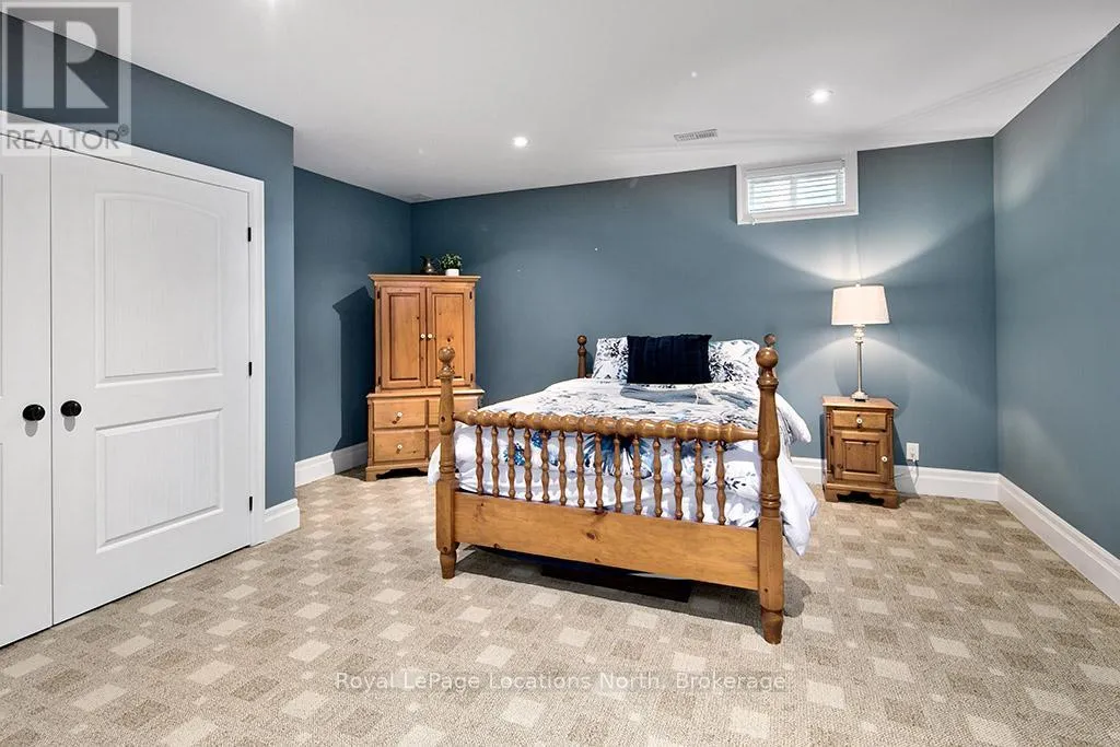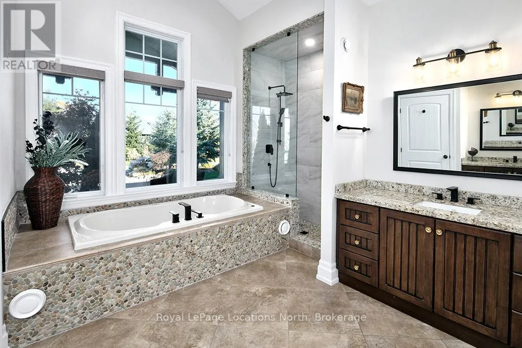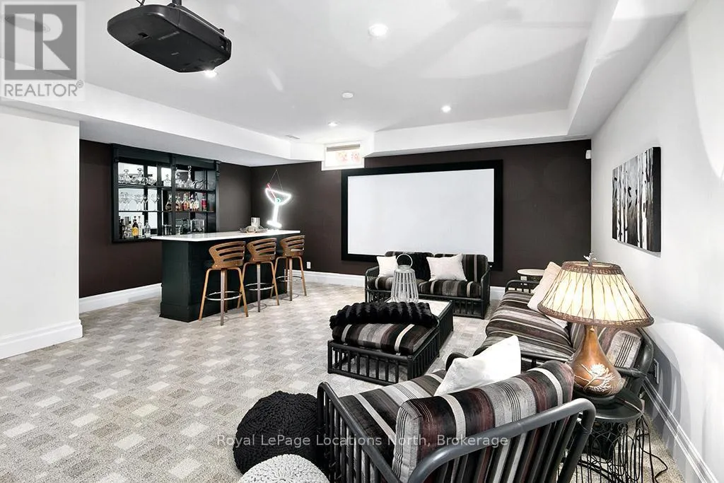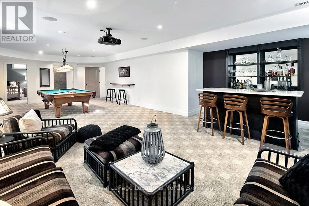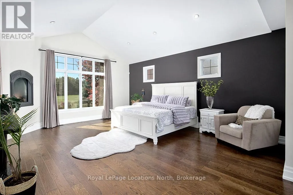 East ridge dr, Rankins cres Discover over 5,300 square feet of beautifully appointed living space in this 5 bed, 4 bath home located in the Lora Bay community, just mins from downtown Thornbury.The open-concept main floor welcomes you with soaring ceilings in the great room, highlighted by a striking floor-to-ceiling stone wood-burning fireplace that creates a warm and inviting focal point. The chef's kitchen offers granite countertops, high-end built-in appliances, a generous island with bar seating, and plenty of space for gathering with family and friends. The spacious primary suite features a gas fireplace, luxurious 5pc ensuite bathroom, and walk-in closet, providing a private and serene retreat. Also on the main level are a dedicated office/den, a convenient laundry room with pantry, and access to the attached two-car garage.Upstairs, a versatile loft area overlooks the main living space and leads to 2 comfortable guest bedrooms and a 5pc bathroom. The fully finished lower level is perfect for entertaining, complete with a large recreation room featuring a bar and projector, pool table, flex room, 2 additional bedrooms, wine cellar and a 3pc bathroom.Outside, the private backyard offers a tranquil escape surrounded by mature trees, beautiful landscaping, and a new privacy fence-ideal for relaxing or hosting gatherings after a day of golf or skiing.Recent updates include a new fibreglass front door and custom sliding patio doors (2025), new carpet in the den (2025), new roof (2024), a fitness room and recreation room bar addition (2024), a wine cellar (2021), and high-efficiency furnace and air conditioning (2020). Extensive landscaping enhancements complete this impressive property.Living in Lora Bay means more than just a beautiful home-it's a lifestyle. Enjoy access to an award-winning golf course, clubhouse restaurant, members-only lodge, fitness centre,two private beaches, with private ski and golf clubs nearby. (id:27476)
