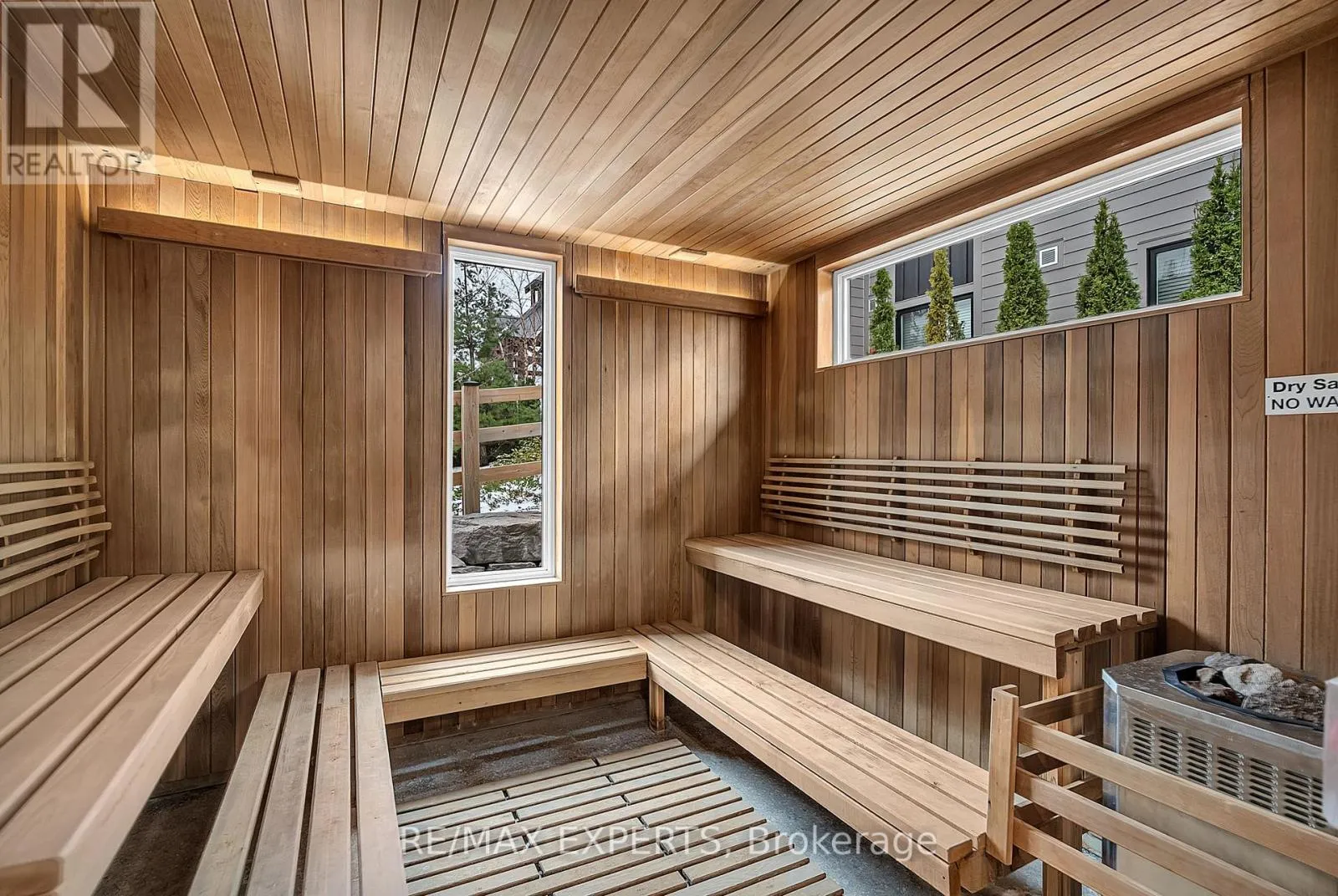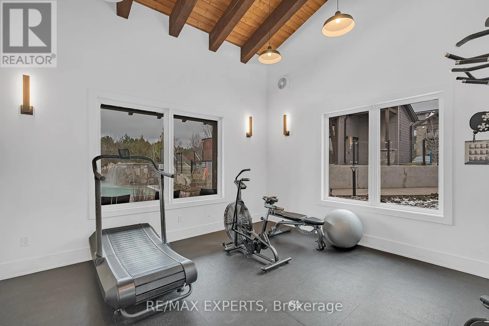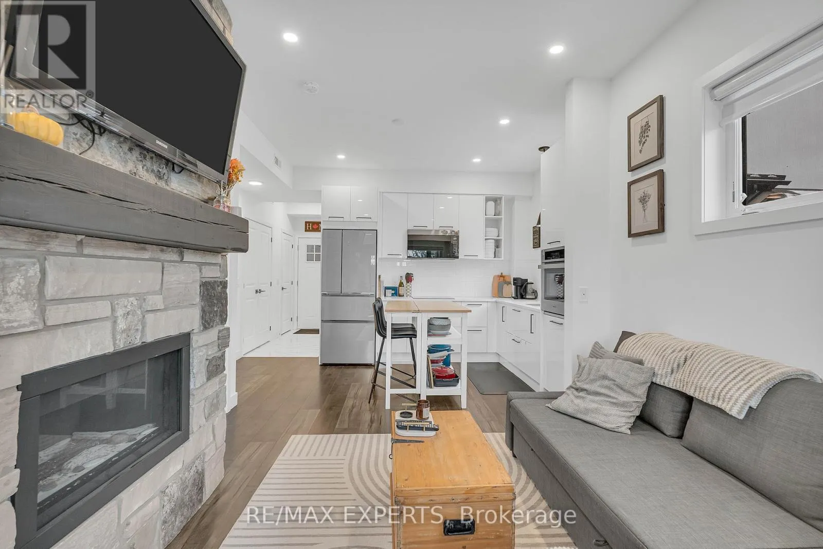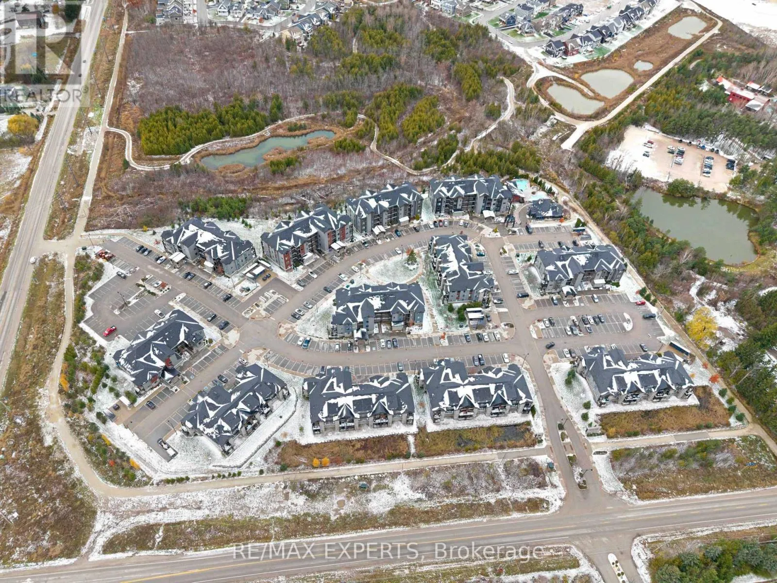GREY RD 19 & BECKWITH LANE Welcome to Mountain House by Windfall, where resort-style living meets modern comfort in this boutique-style resort community. This elegantly appointed one bedroom suite, featuring an enclosed den that can serve as a second bedroom, offers one bathroom and a sun-filled first floor corner layout. Showcasing high-end finishes and energy-efficient appliances throughout, the open-concept living space includes a natural stone fireplace, quartz countertops, mixed marble and engineered flooring, and in-suite laundry with a washer and dryer. Step out onto your private balcony with a gas BBQ hookup and enjoy peaceful panoramic treed views. The unit includes one owned parking spot plus ample visitor parking. Residents enjoy exceptional amenities such as outdoor pools, a gym, sauna, and more, all within walking distance to The Village and the renowned Scandinave Spa. Experience the ultimate blend of luxury, convenience, and lifestyle at Mountain House. (id:27476)