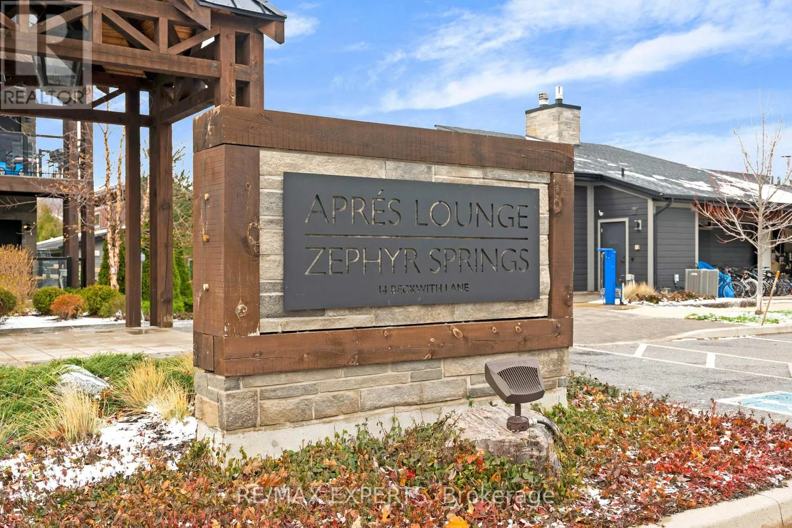 GREY RD 19 & BECKWITH LANE Welcome to Mountain House by Windfall, where resort-style living meets modern comfort in this boutique-style resort community. This elegantly appointed 1 bedroom suite, featuring an enclosed den that can serve as a second bedroom, offers one bathroom and a sun-filled first floor corner layout. Showcasing high-end finishes and energy-efficient appliances throughout, the open-concept living space includes a natural stone fireplace, quartz countertops, mixed marble and engineered flooring, and in-suite laundry with a washer and dryer. Step out onto your private balcony with a gas BBQ hookup and enjoy peaceful panoramic treed views. The unit includes one parking spot plus ample visitor parking. Residents enjoy exceptional amenities such as outdoor pools, a gym, sauna, and more, all within walking distance to The Village and the renowned Scandinavian Spa. Experience the ultimate blend of luxury, convenience, and lifestyle at Mountain House. (id:27476)