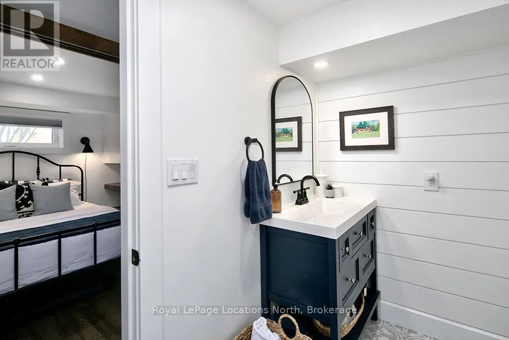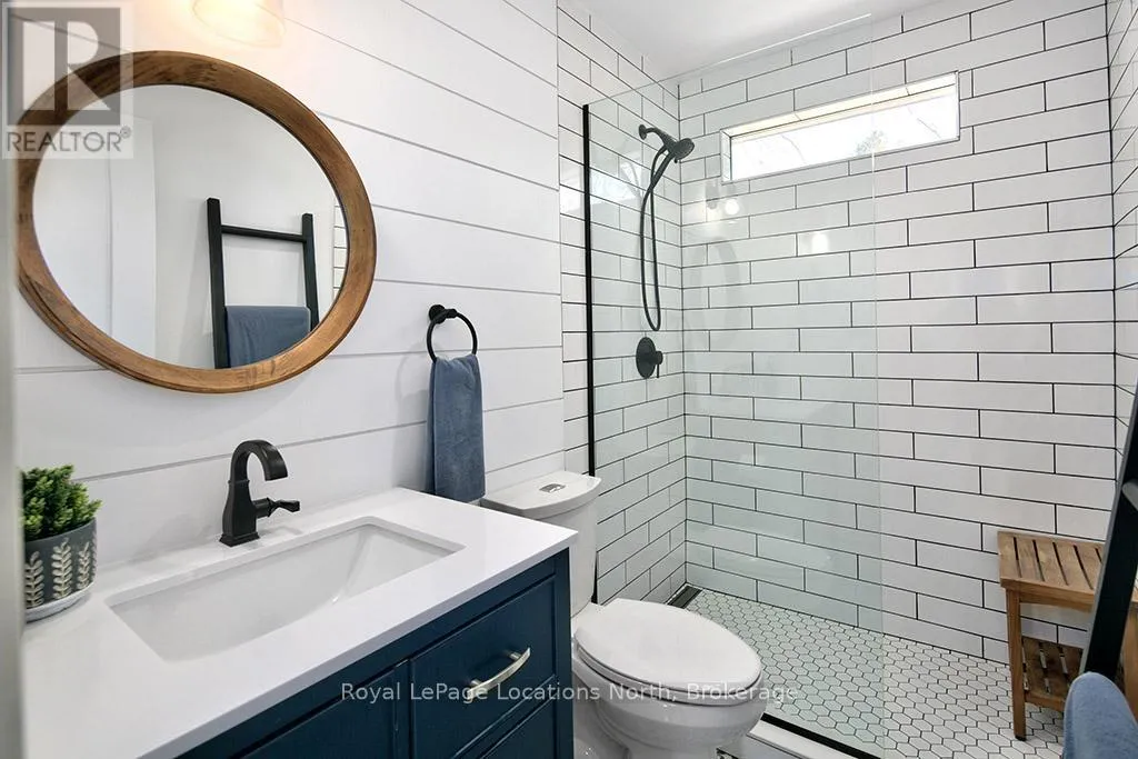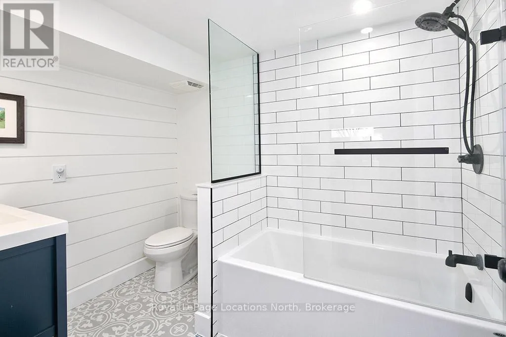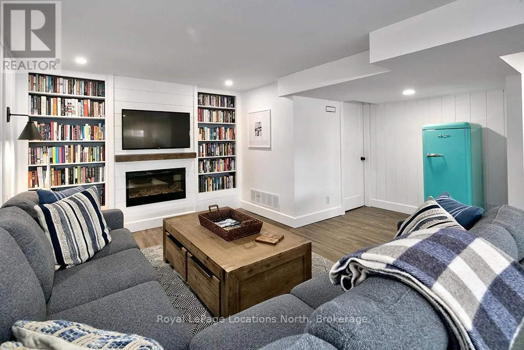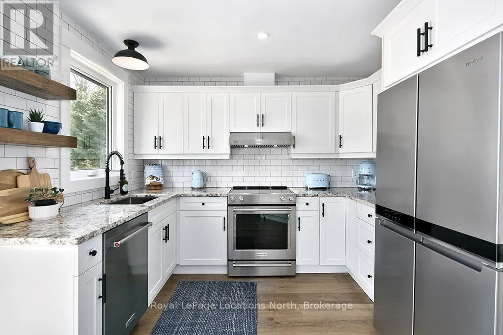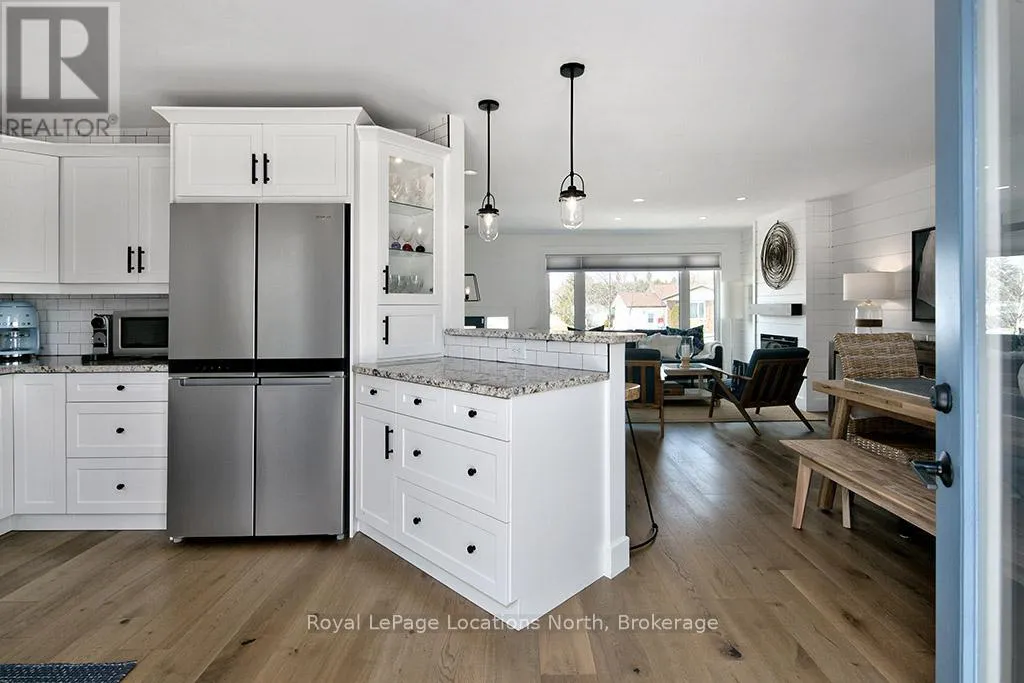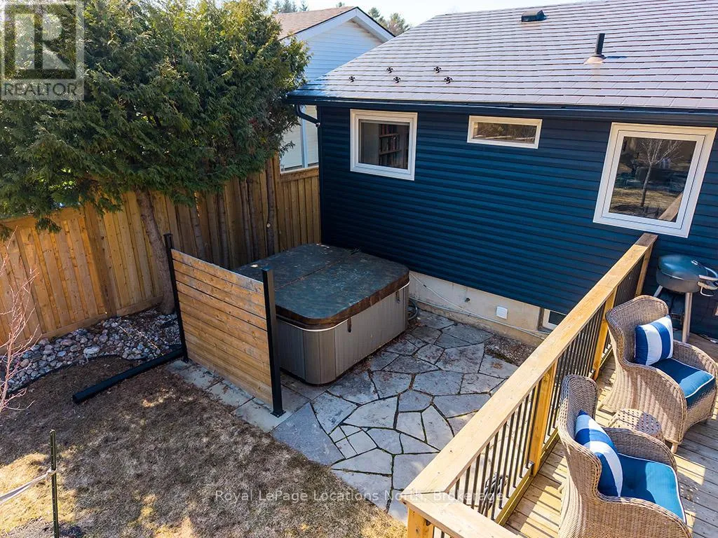 Cross Streets: Orchard & Pyatt. ** Directions: Alfred turn south onto Orchard drive until you see 135. You can't put a price on the feeling this house gives you - warm, considered, and alive with personality. Completely reimagined from top to bottom, this raised bungalow gem sits on a generous 60 x 140 ft lot in one of Thornbury's most beloved in-town neighbourhoods - and there is simply nothing else like it on the market. ~1,900 sq ft of beautifully executed living space, 3 bedrooms on the main level (one used as office) plus 2 additional bedrooms, 4 piece bath recreation living room in a fully finished lower level. Perfect for full-time families, ski crews, downsizers, or professional couples-- your search is over! Every inch lovingly renovated: all new windows , new siding with exterior insulation (Van Dolders), engineered hardwood main level, luxury vinyl plank lower, custom kitchen with granite counters and new appliances, updated bathrooms with new vanities, tile, shower and tub(lower level), all new trim, doors and fixtures, wainscotting, magnificent shiplap accent walls, & 2 electric fireplaces one on each level.The backyard is where the magic really happens - cozy fire pit, hot tub, large patio, fully fenced back yard with back gate, & lush landscaping front and back. All on an incredible 60 x 140 ft lot. Big mechanicals done: Trane furnace (2019), metal roof (2019).Short drive to ski hills, golf courses in the Blue Mountains, steps to trails, parks, marina & Georgian Bay. Walkable to school, library, downtown restaurants and shops. Move in, unpack, exhale. (id:27476)