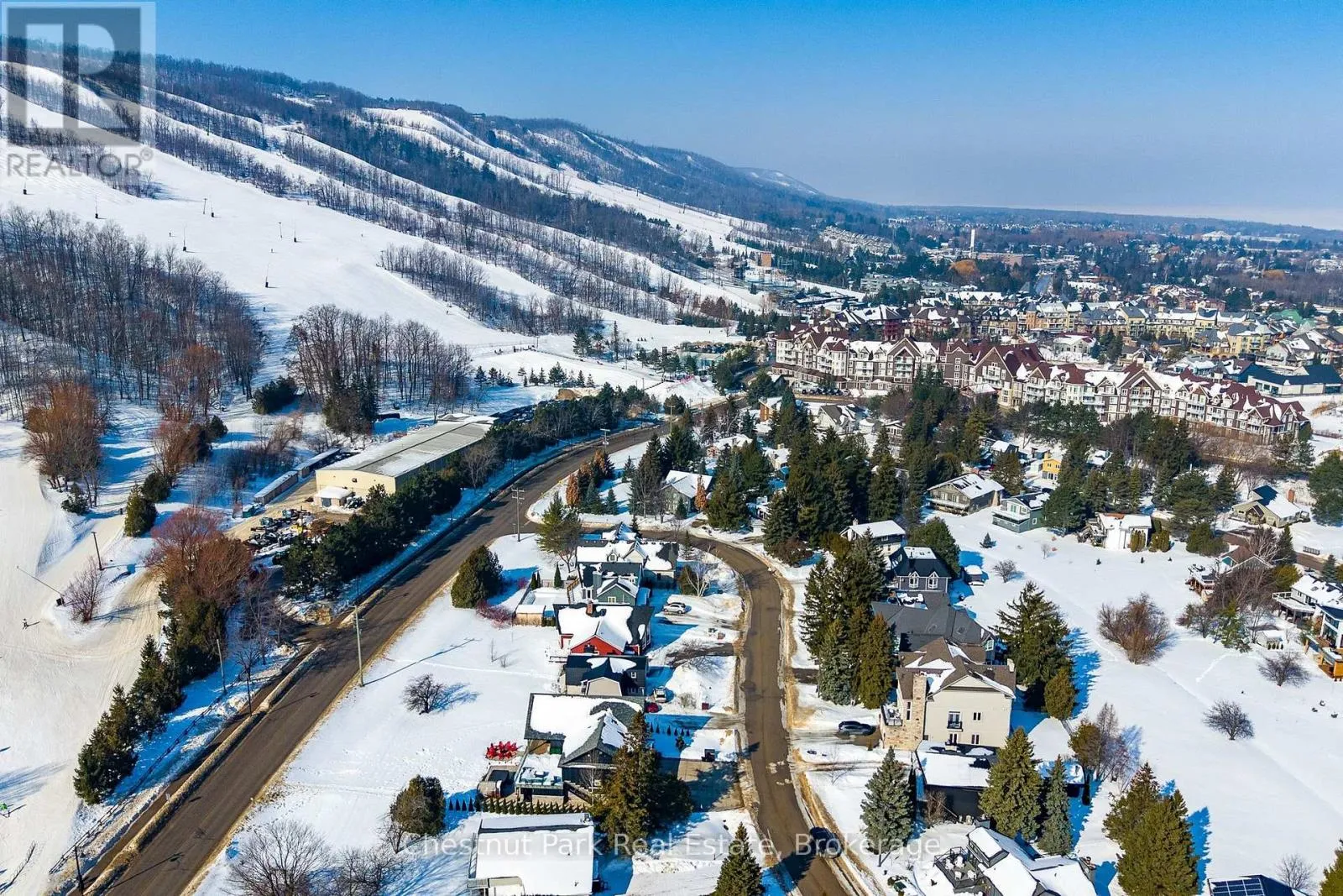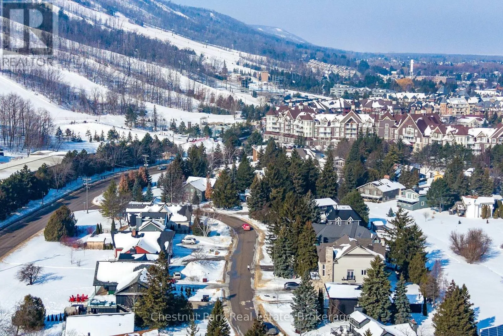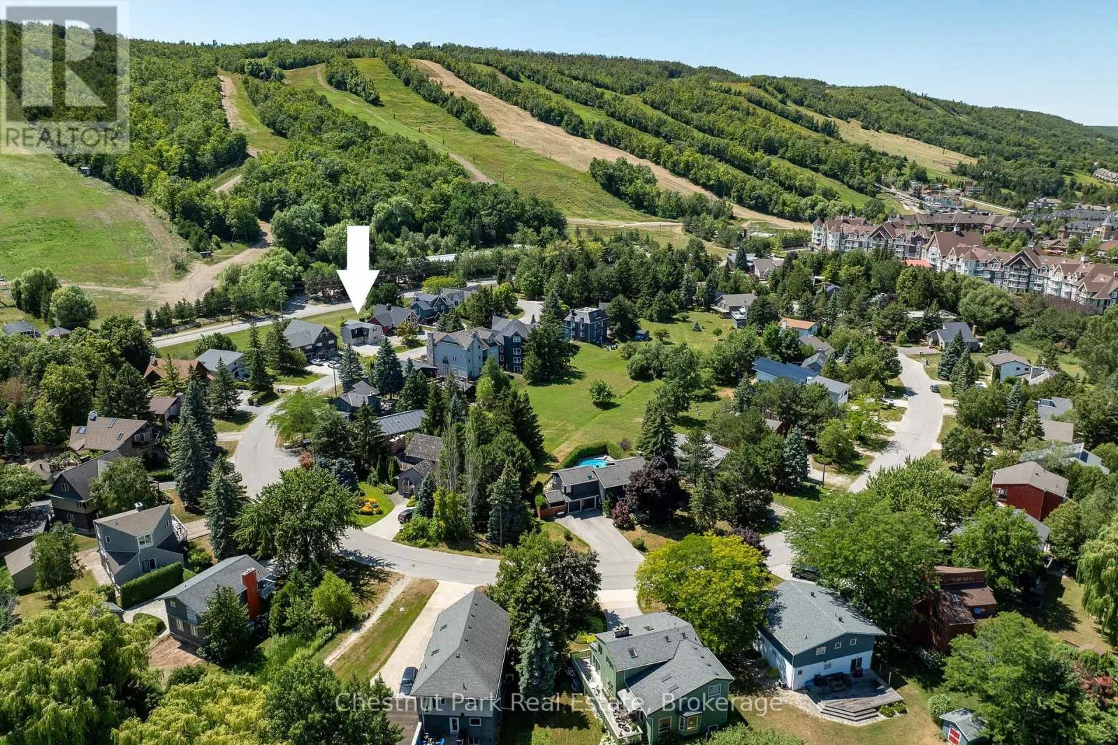 Cross Streets: Gord Canning Drive and Carmichael Crescent. ** Directions: Grey Rd 19 to the round-about to Gord Canning Drive to Carmichael Crescent to the sign on property. Leave your car in the driveway and live the ultimate mountain lifestyle, ideally located on one of the best streets at the base of Blue Mountain. Just walk through your back yard, across the road and catch the first chair lift of the day. A short 2 minute walk to the Village at Blue, this street is known for its welcoming neighbours and unbeatable convenience - everything you need is steps away. This reverse floorplan Turn-key home offers 1760 sq. ft. of finished living space with 6 bedrooms and 1.5 baths. Backing onto the panoramic views of the ski hills, here kids can run and play freely in your yard, take your pets for long walks or enjoy après ski gatherings around a backyard firepit with family and friends. Upon entering the main floor foyer, 4 bedrooms and a 2-piece bath with separate shower provide comfort and flexibility for family or guests. A utility room with ski storage, boot/hat and mitt cubbies and back door access to your yard offer immediate ski access. Upstairs the open floor plan kitchen and dining room open to a small deck with views of the mountain. The family room features an inviting wood-burning fireplace and sliding doors that walk-out to a large deck designed for great gatherings with front-row panoramic views of Blue Mountain's night-lit ski runs or summer BBQ's. Down the hall is another guest bedroom, a primary bedroom and 4 pc bathroom. Five minutes to private ski clubs, golf courses, and a short ride to Northwinds Beach, the Georgian Trail, and downtown Collingwood's shops, restaurants and cultural attractions or the charming town of Thornbury 15 minutes away. Don't miss your chance to start your next chapter in Southern Georgian Bay. Enjoy slopeside living at its finest. (id:27476)