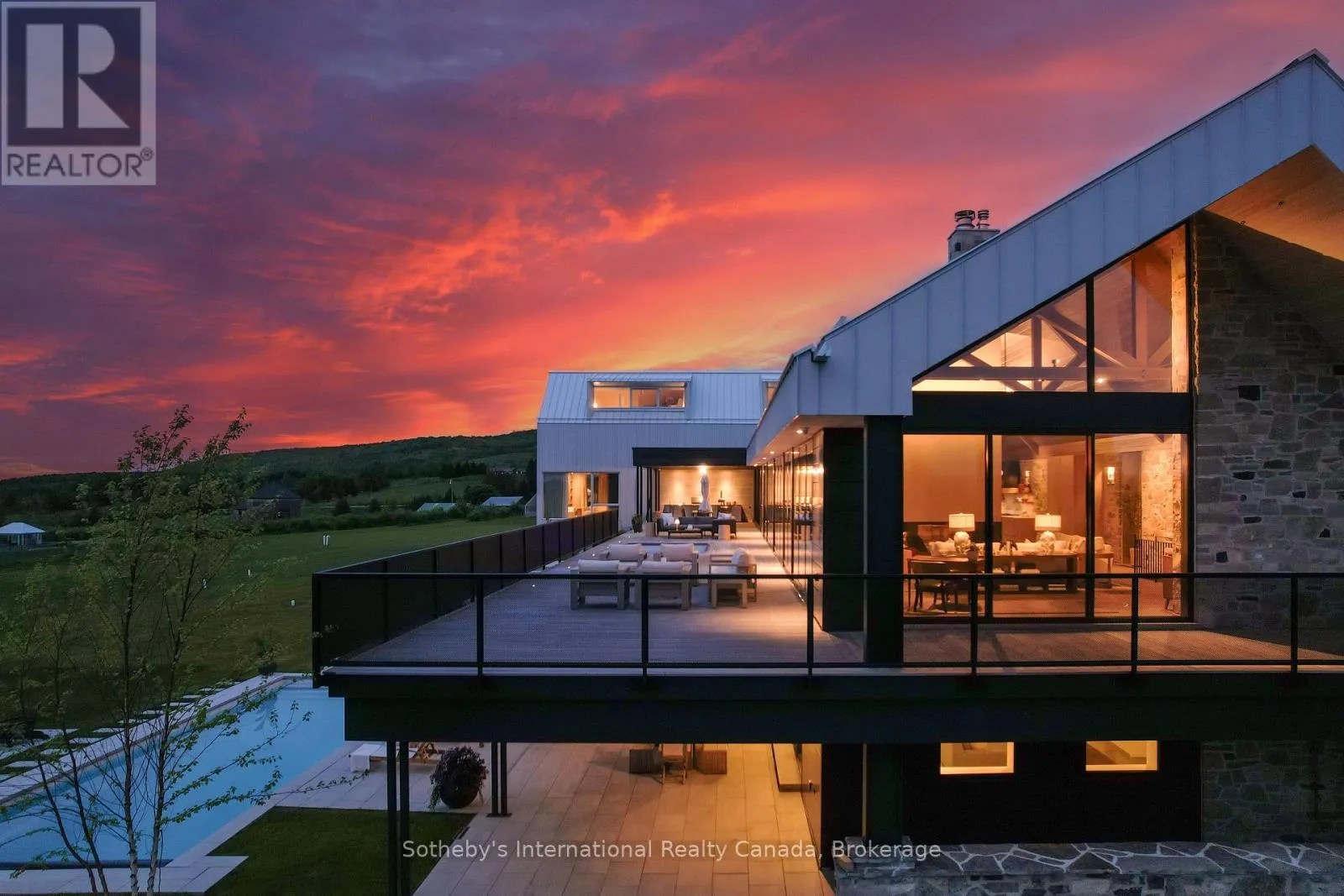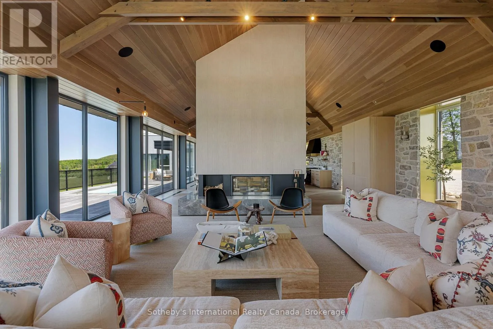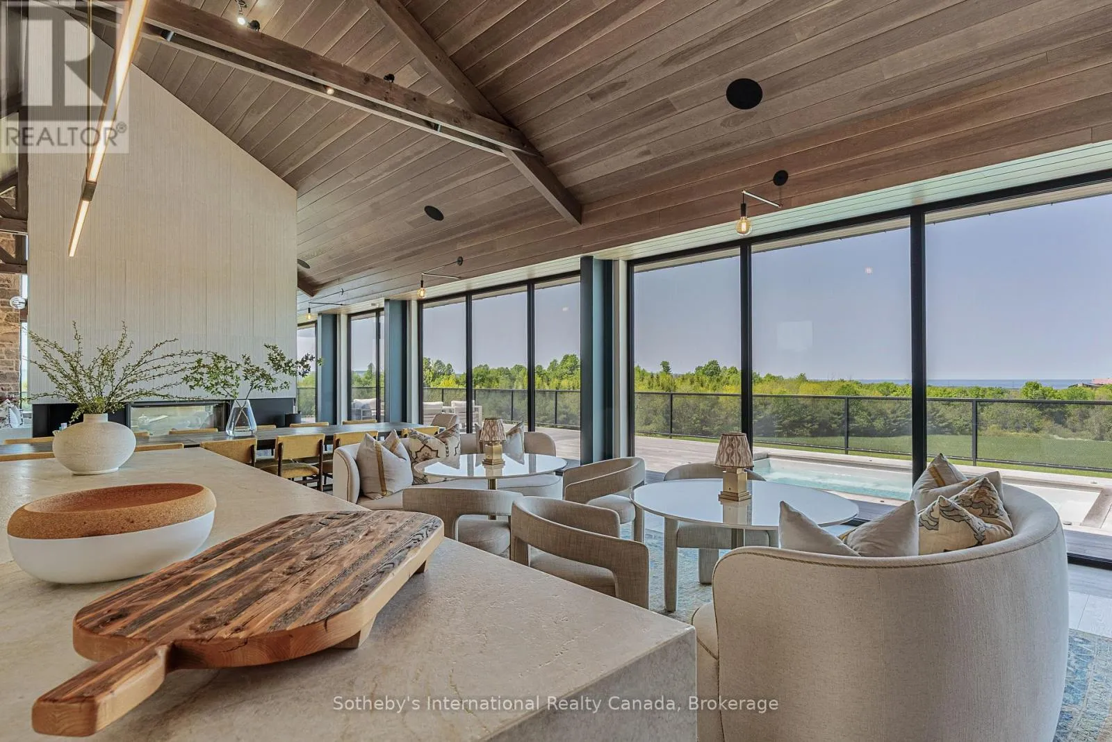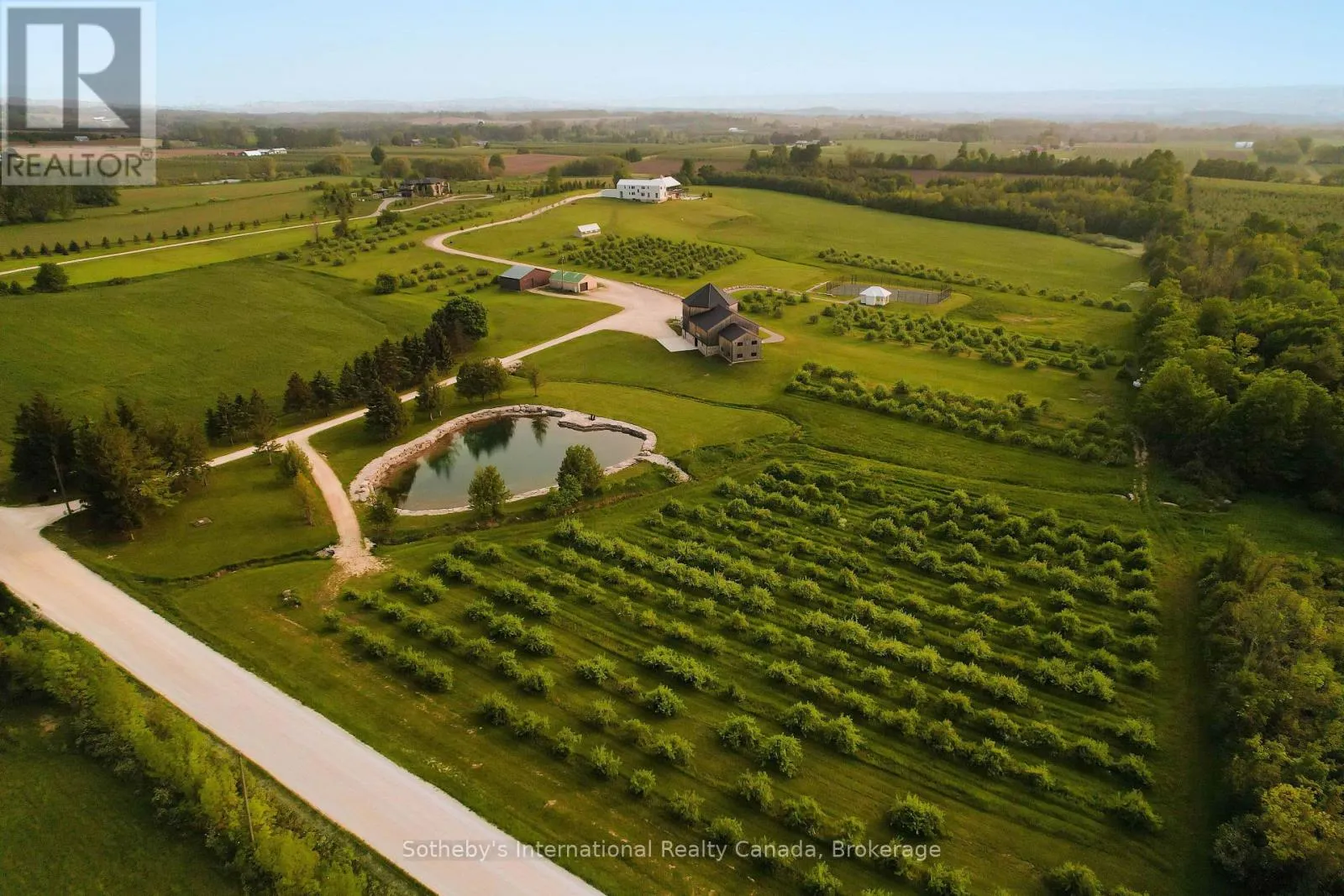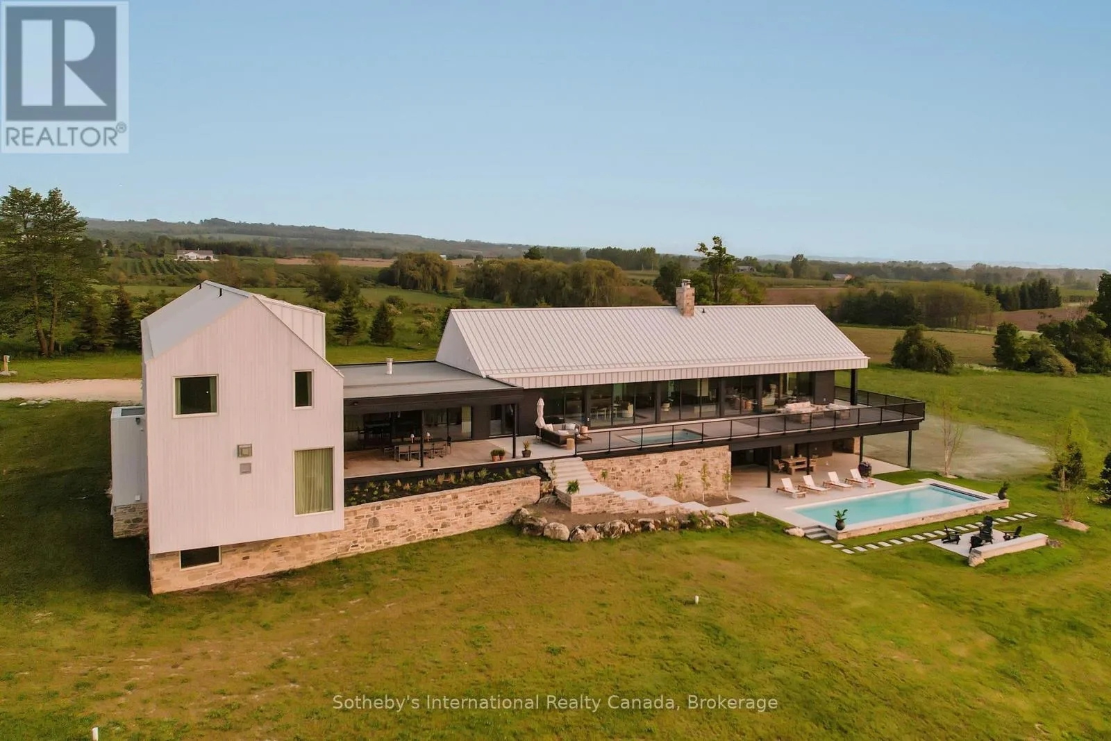 Cross Streets: Grey Road 40 & 7th Line. ** Directions: highway 26 to Grey Road 40, south on 7th Line. Never has there been an offering quite like this in the Blue Mountains. Welcome to Georgian Valley Farm, where world-class design meets the unspoiled beauty of nature and breathtaking sunsets. Set on 37 spectacular acres, this one-of-a-kind estate is anchored by an extraordinary 11,000 sq ft custom residence - a design landmark by Post Architecture Inc. and built by renowned builder David Eaton, Baylyn Construction. This property defines luxury recreational living, w/saltwater pool, Har Tru clay tennis court, orchard, pond, a Hartley Botanic Greenhouse - 'Grand Manor' imported from the UK and an incredible restored barn, ideal for entertaining. Perched high on 7th Line, the home presents commanding, panoramic views of the Niagara Escarpment and Georgian Bay from nearly every room. Scandinavian-inspired minimalism blends with refined country elegance, w/ Moncer European oak floors, soaring wood-clad ceilings, and a wall of floor to ceiling windows by Atek that frame the landscape. Chef's kitchen features a 12-ft marble island, appliances by Miele, Sub-Zero, and Lacanche, custom Barlow millwork, exquisite stonework and full butler's pantry. The dining room for 14 includes a concealed Barlow bar and a striking 2-way woodburning STUV fireplace shared with the living room. Thoughtful details are found throughout w/ designer lighting, imported tiles and hand-painted De Gournay wallpaper in the adult lounge, library, and powder room. A main floor primary sits behind double Egyptian doors and features a gas fireplace, luxurious ensuite, WIC, and sitting area. 4 upper bedrooms, all uniquely designed, feature beautifully curated ensuites with extensive tile/marble finishes, custom millwork and WIC. The lower level offers a golf simulator, gym, sauna, rec room, refreshment area, 200+ bottle Rosehill Wine Cellar, and w/o to the covered terrace and pool. Exceptional outdoor living offers a 2,520 sq ft deck, with a full Crown Verity kitchen, dining & lounge areas, and a hot tub. (id:27476)