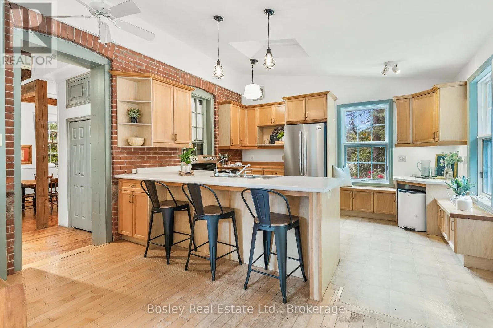 Cross Streets: Grey Rd 2 and Grey County Road 119. ** Directions: Grey Road 2 and Grey County Road 119 head south on the Blue Mountains Euphrasia Townline for 5-10 minutes. The school house is on the West or right side of the road. Charming 1917 Schoolhouse Retreat in the Heart of the Blue Mountains & Beaver Valley Step into history and natural beauty with this converted two + one bedroom 1917 schoolhouse, nestled amidst the serene countryside of the Blue Mountains and Beaver Valley. Original wood flooring, exposed brick from the historic schoolhouse, custom built-in bookshelves, and expansive windows create a charming, inviting interior. The flexible layout makes it ideal for full-time living or weekend escapes. Set on a manageable acreage and surrounded by large, peaceful properties, the home offers the privacy of rural life without the burden of extensive maintenance. Wander through the beautiful gardens, reimagine the charming outbuildings, or relax in the tranquil outdoor spaces. Adventure awaits just minutes away, with access to world-class rock climbing, hiking, and cross-country skiing in Kolapore and along the Bruce Trail-plus easy access to renowned downhill ski hills. Enjoy the best of both worlds with vibrant towns like Thornbury, Collingwood, and Kimberley nearby, offering shopping, art galleries, and a flourishing culinary scene Perfect for those seeking a peaceful yet connected lifestyle, this is a rare opportunity to own a piece of Ontario's rich history in one of its most desirable four-season destinations. Discover the charm. Live the lifestyle. Welcome home. (id:27476)