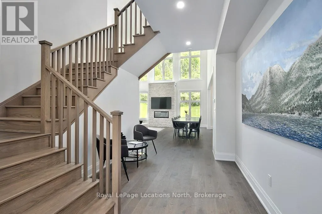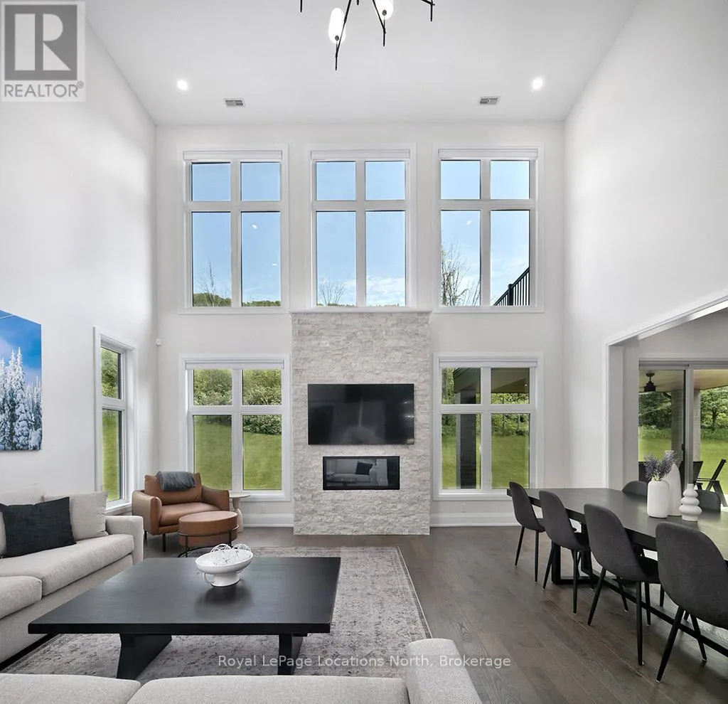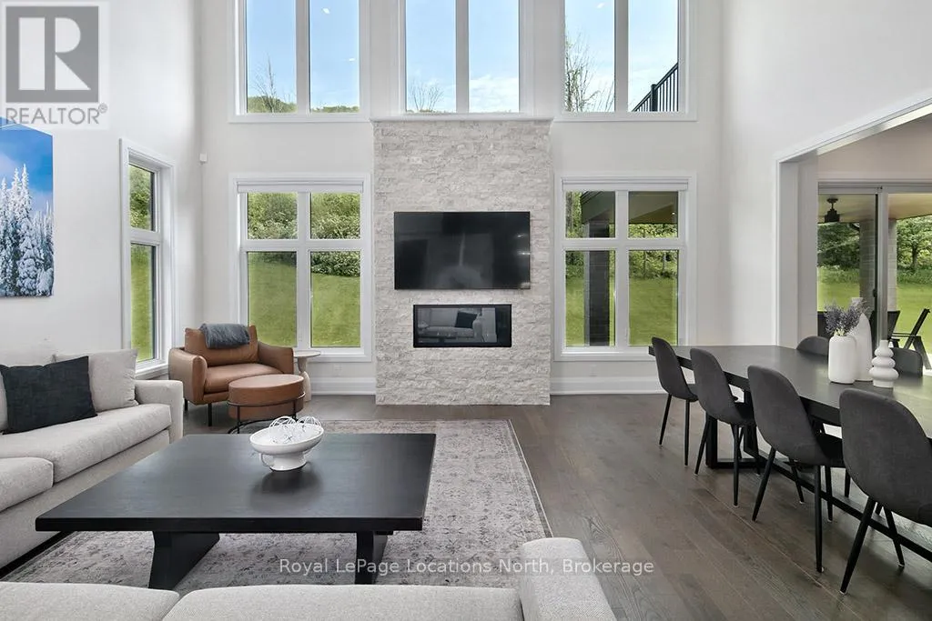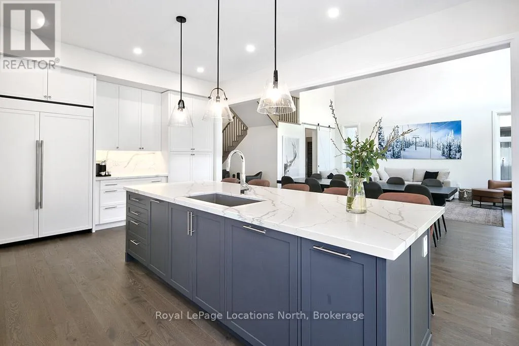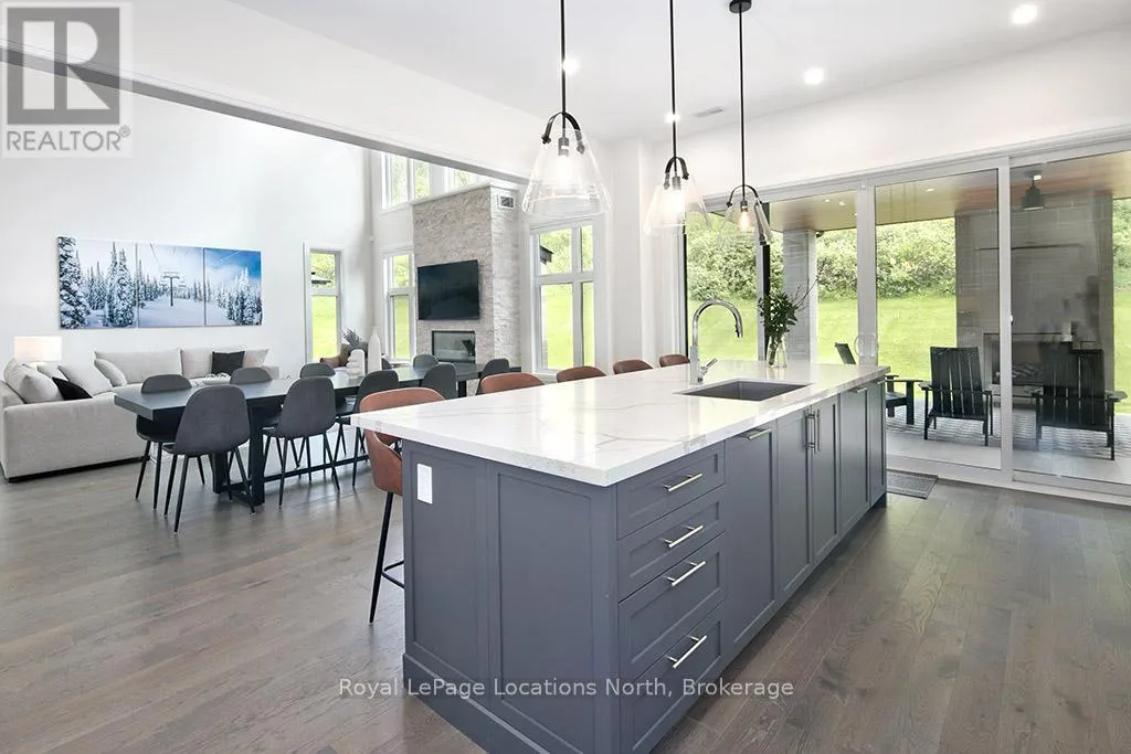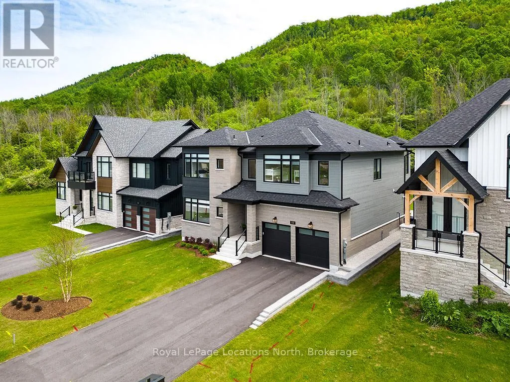 Cross Streets: Dorothy Drive and Camperdown Road. ** Directions: Hwy 26 west of Collingwood or east of Thornbury to Camperdown Road to Dorothy Drive. Executive Summer Rental includes all utilities, TV and internet,available May 1 - October 31. Minimum 2-month stay. Ideal vacation home or temporary residence, this makes for the perfect upscale retreat! Boasting 4 bedrooms and 4 bathrooms with central air across 3,291 sq ft of refined living space, this home blends contemporary comfort with chalet-inspired elegance. Enjoy indoor/outdoor living year-round in the expansive 3-season covered patio, enhanced with pot lights, a gas fireplace, and upgraded to a generous 23' x 17'. Just minutes to golf, nearby Peasemarsh Beach, Thornbury beaches, and Georgian trail access at the bottom of Camperdown Rd. Step into a sun-drenched great room with a soaring vaulted ceiling and a stunning custom gas fireplace.The heart of the home is a true entertainer's kitchen featuring quartz countertops, an extended island, a Wolf induction cooktop, double Wolf wall ovens, a panelled Jenn Air refrigerator/freezer, and built-in panelled Miele dishwasher. The walk-in pantry is equipped with a 150-bottle capacity Sub-Zero wine fridge.Wide-plank wire-brushed white oak engineered hardwood runs throughout, paired with upgraded lighting, pot lights, and in-floor radiant heat on the main floor and primary ensuite. The second level primary retreat offers stunning hillside views with a walk-out to private terrace, a spa-like ensuite with freestanding tub, frameless glass shower, and double under-mount sinks. 3 additional spacious bedrooms and a laundry room complete the second level. The second largest bedroom has a private 3 piece ensuite,and the remaining 2 bedrooms share a 4 piece bath. Other features include custom blinds (motorized in the great room), and a landscaped front yard with an irrigation system in front and back yard. Primary and second primary both have king beds. Third bedroom has two bunk beds, all twin size. Fourth bedroom has two twin beds. July and August only are $5,000/month should this be the rental period requested. (id:27476)