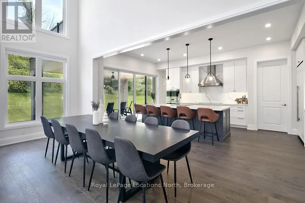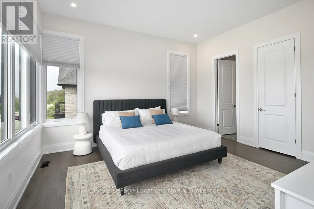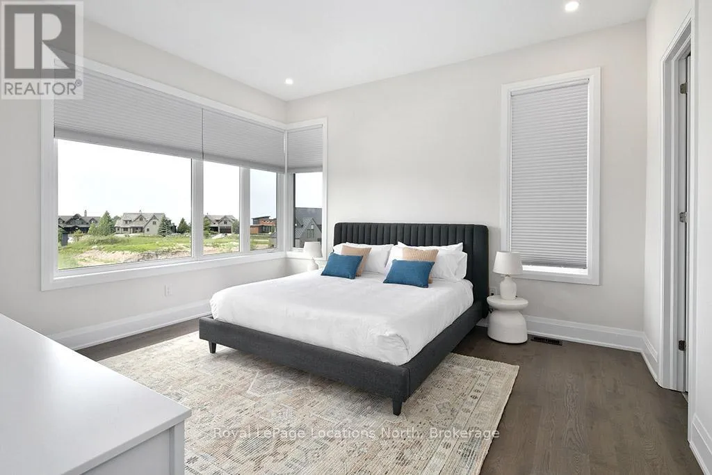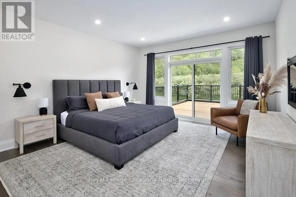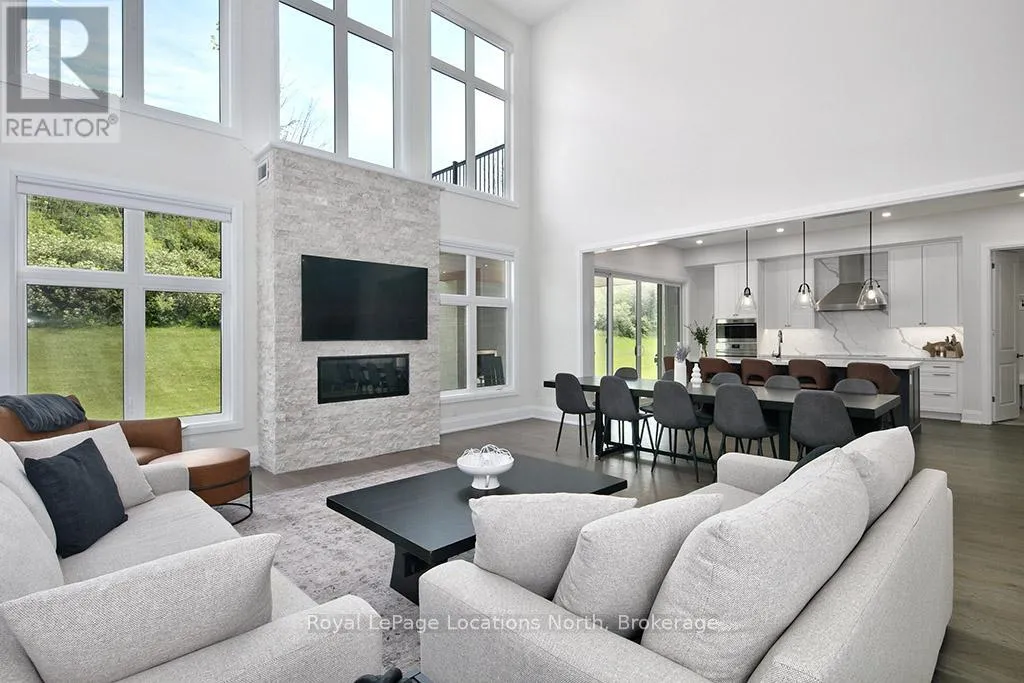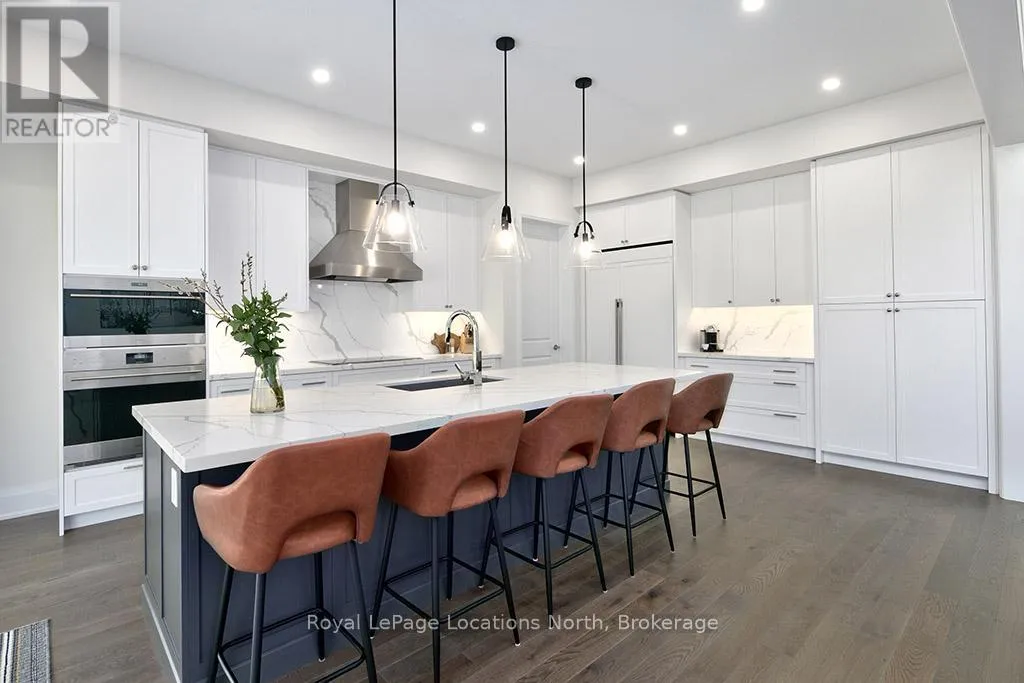 Cross Streets: Dorothy Drive and Camperdown Road. ** Directions: Hwy 26 west of Collingwood or east of Thornbury to Camperdown Road to Dorothy Drive. Executive Summer Rental includes all utilities, TV and internet,available May 1 - October 31. Minimum 2-month stay. Ideal vacation home or temporary residence, this makes for the perfect upscale retreat! Boasting 4 bedrooms and 4 bathrooms with central air across 3,291 sq ft of refined living space, this home blends contemporary comfort with chalet-inspired elegance. Enjoy indoor/outdoor living year-round in the expansive 3-season covered patio, enhanced with pot lights, a gas fireplace, and upgraded to a generous 23' x 17'. Just minutes to golf, nearby Peasemarsh Beach, Thornbury beaches, and Georgian trail access at the bottom of Camperdown Rd. Step into a sun-drenched great room with a soaring vaulted ceiling and a stunning custom gas fireplace.The heart of the home is a true entertainer's kitchen featuring quartz countertops, an extended island, a Wolf induction cooktop, double Wolf wall ovens, a panelled Jenn Air refrigerator/freezer, and built-in panelled Miele dishwasher. The walk-in pantry is equipped with a 150-bottle capacity Sub-Zero wine fridge.Wide-plank wire-brushed white oak engineered hardwood runs throughout, paired with upgraded lighting, pot lights, and in-floor radiant heat on the main floor and primary ensuite. The second level primary retreat offers stunning hillside views with a walk-out to private terrace, a spa-like ensuite with freestanding tub, frameless glass shower, and double under-mount sinks. 3 additional spacious bedrooms and a laundry room complete the second level. The second largest bedroom has a private 3 piece ensuite,and the remaining 2 bedrooms share a 4 piece bath. Other features include custom blinds (motorized in the great room), and a landscaped front yard with an irrigation system in front and back yard. Primary and second primary both have king beds. Third bedroom has two bunk beds, all twin size. Fourth bedroom has two twin beds. July and August only are $5,000/month should this be the rental period requested. (id:27476)