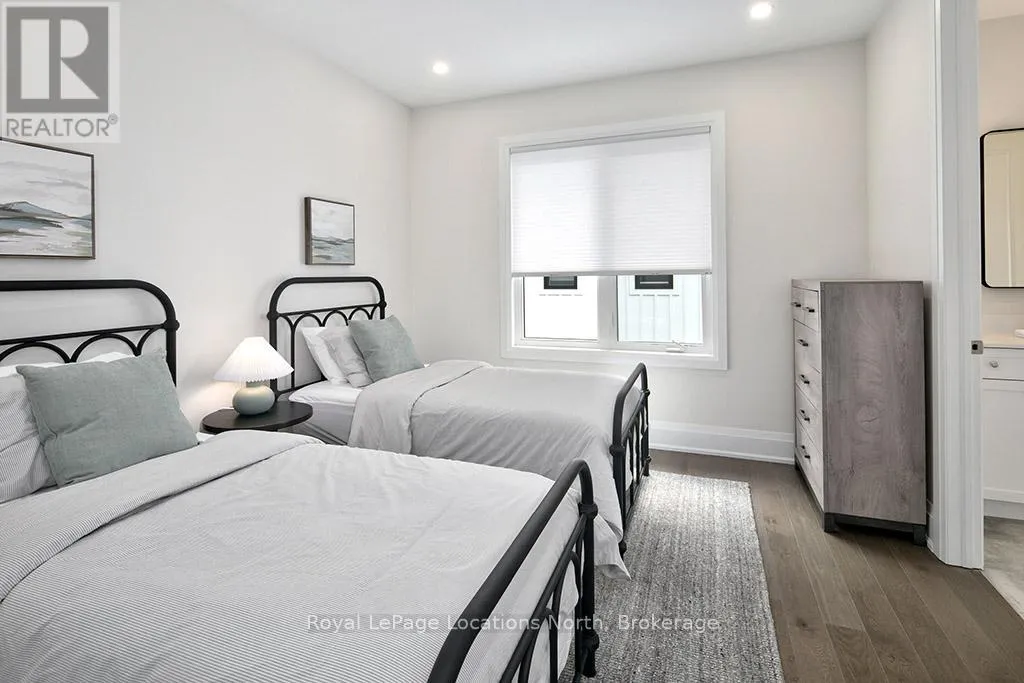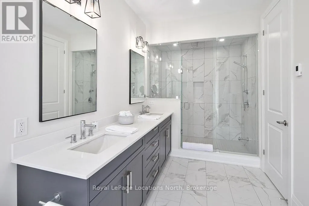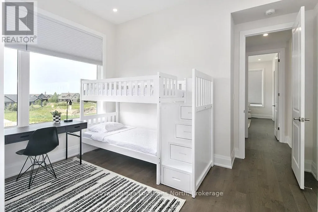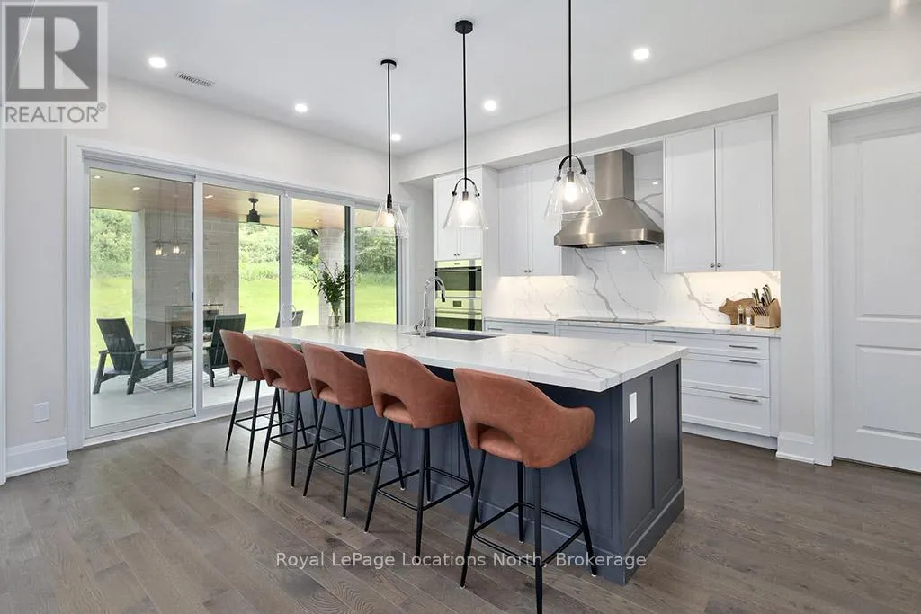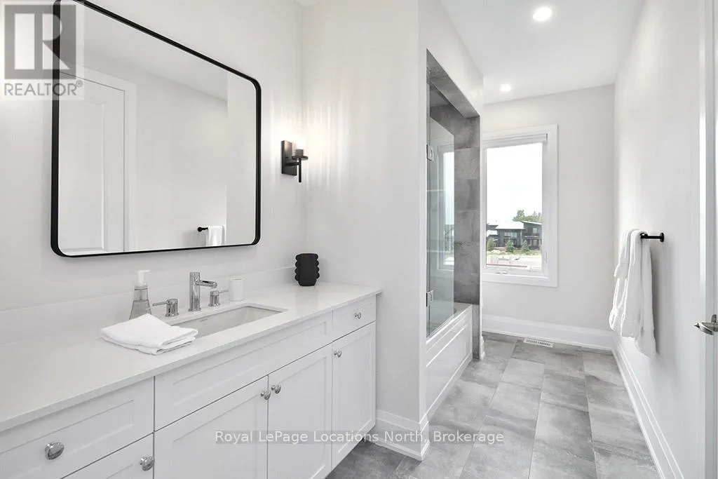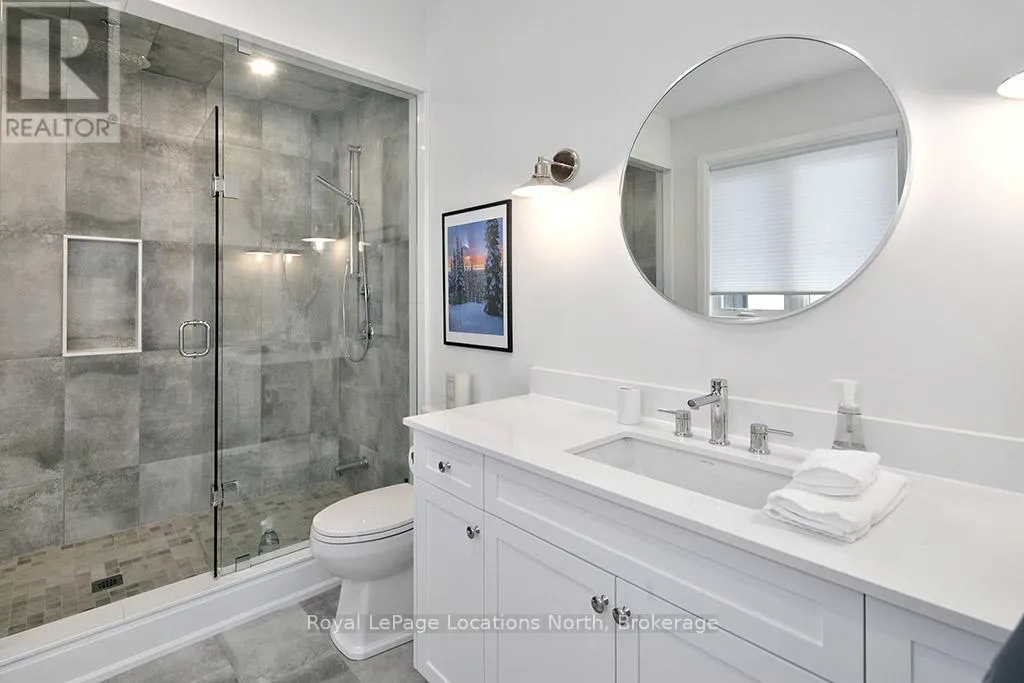 Cross Streets: Dorothy Drive and Camperdown Road. ** Directions: Hwy 26 west of Collingwood or east of Thornbury to Camperdown Road to Dorothy Drive. Executive Summer Rental includes all utilities, TV and internet,available May 1 - October 31. Minimum 2-month stay. Ideal vacation home or temporary residence, this makes for the perfect upscale retreat! Boasting 4 bedrooms and 4 bathrooms with central air across 3,291 sq ft of refined living space, this home blends contemporary comfort with chalet-inspired elegance. Enjoy indoor/outdoor living year-round in the expansive 3-season covered patio, enhanced with pot lights, a gas fireplace, and upgraded to a generous 23' x 17'. Just minutes to golf, nearby Peasemarsh Beach, Thornbury beaches, and Georgian trail access at the bottom of Camperdown Rd. Step into a sun-drenched great room with a soaring vaulted ceiling and a stunning custom gas fireplace.The heart of the home is a true entertainer's kitchen featuring quartz countertops, an extended island, a Wolf induction cooktop, double Wolf wall ovens, a panelled Jenn Air refrigerator/freezer, and built-in panelled Miele dishwasher. The walk-in pantry is equipped with a 150-bottle capacity Sub-Zero wine fridge.Wide-plank wire-brushed white oak engineered hardwood runs throughout, paired with upgraded lighting, pot lights, and in-floor radiant heat on the main floor and primary ensuite. The second level primary retreat offers stunning hillside views with a walk-out to private terrace, a spa-like ensuite with freestanding tub, frameless glass shower, and double under-mount sinks. 3 additional spacious bedrooms and a laundry room complete the second level. The second largest bedroom has a private 3 piece ensuite,and the remaining 2 bedrooms share a 4 piece bath. Other features include custom blinds (motorized in the great room), and a landscaped front yard with an irrigation system in front and back yard. Primary and second primary both have king beds. Third bedroom has two bunk beds, all twin size. Fourth bedroom has two twin beds. July and August only are $5,000/month should this be the rental period requested. (id:27476)