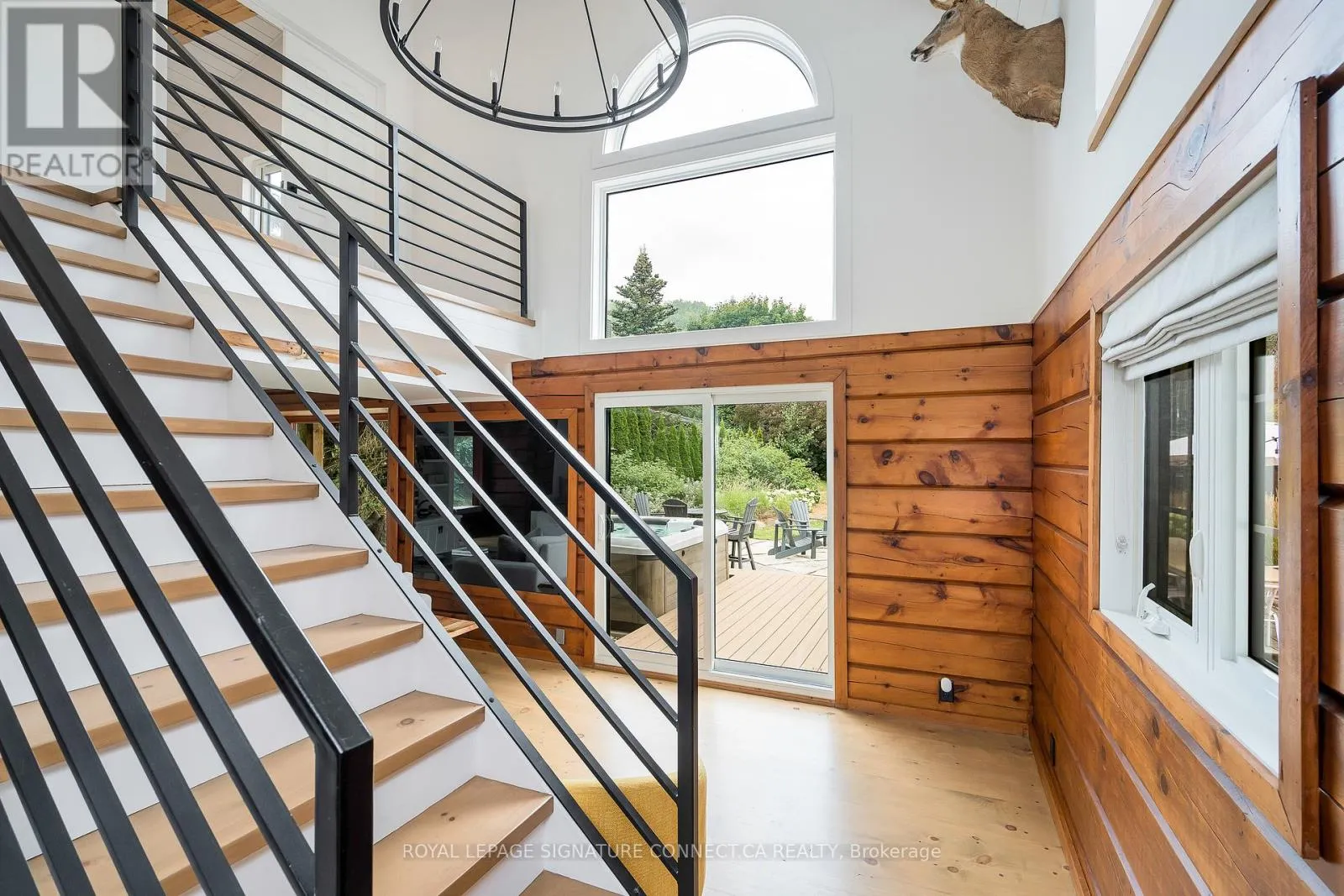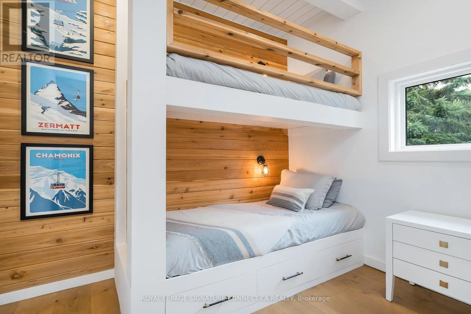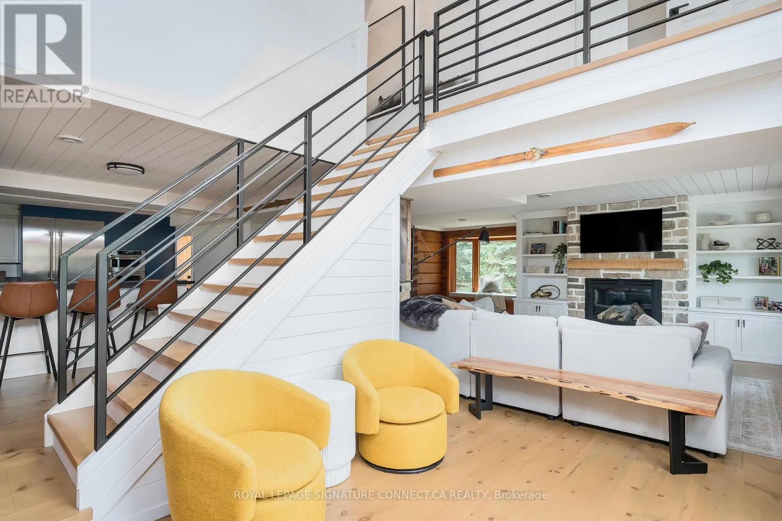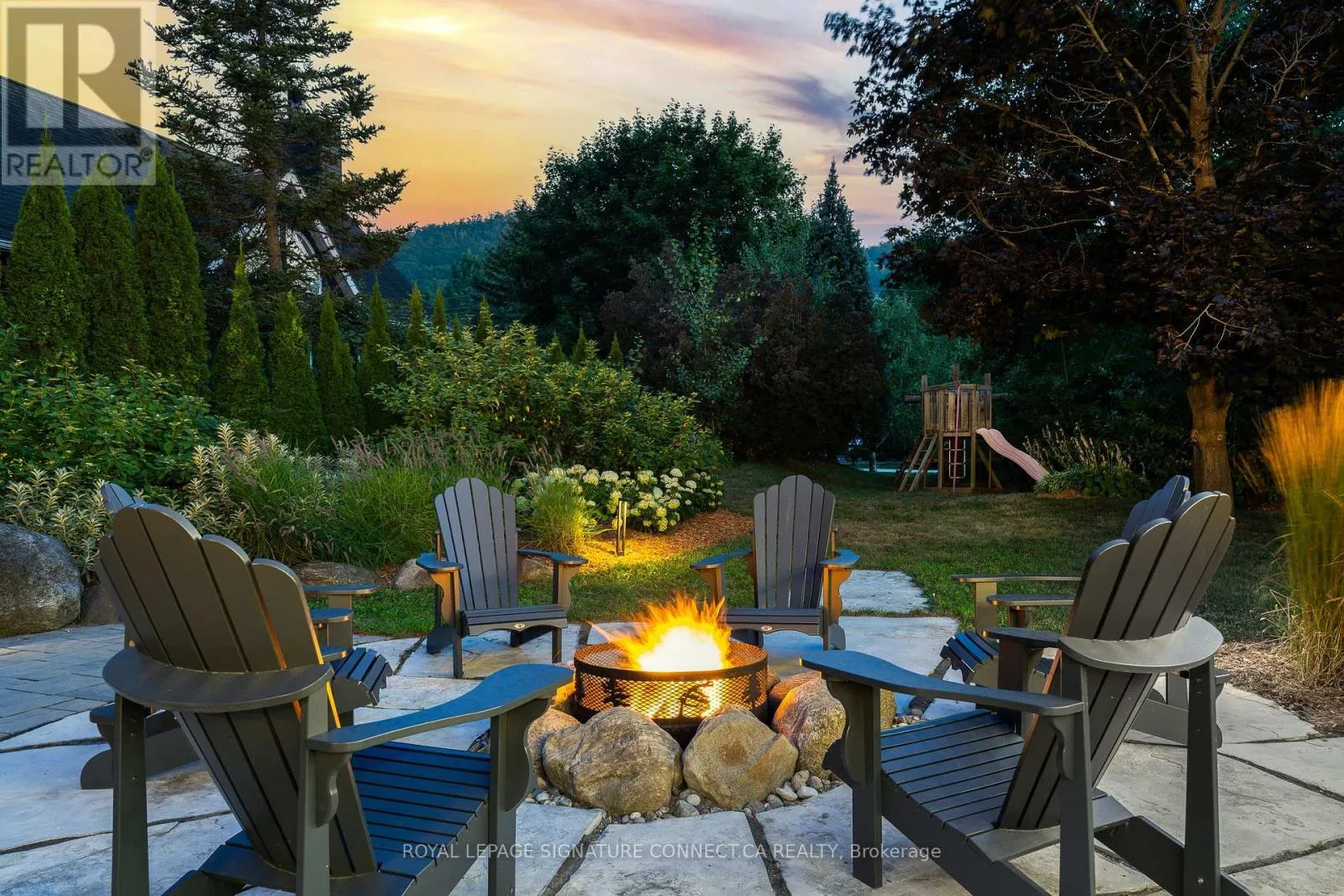Grey Road 19 to Heritage (@Blue Mountain Inn). North to Settlers Way LEFT to the sign on the left. Luxury chalet just steps to Blue Mountains north lifts, Toronto Ski Club, Monterra Golf and Blue Mountain Village. This rustic-modern Scandinavian retreat has been completely renovated from top to bottom with stunning finishes and is offered fully furnished and equipped move-in ready from day one. Ideally located for private ski club members, the chalet is steps to TSC, 3-minute drive to Craigleith, 5 minutes to Alpine, 10 minutes to Osler, and 7 minutes to Georgian Peaks. Natural light fills the open-concept living spaces, with gorgeous views of the Blue Mountain ski hills, where soaring ceilings and curated details create an inviting atmosphere for both entertaining and relaxing. The chefs kitchen showcases a premium Viking refrigerator & freezer and top of the line KitchenAid appliances including wine fridge, while a custom ski room with heated floors, boot and glove warmers, and an infrared sauna ensures year-round comfort. Outdoors, enjoy a true resort lifestyle with a putting and chipping green and outdoor golf simulator, an all-season kitchen with BBQ and wood-fired pizza oven, and a 9-person Bullfrog Hydrotherapy hot tub overlooking Blue Mountain. Mature trees and professional landscaping create the perfect backdrop for summer barbecues, après-ski evenings, and everything in between. With four bedrooms plus a loft including custom bunkbeds there is plenty of space for family and guests, all beautifully furnished and move-in ready down to décor, artwork, and beach cruisers for Georgian Bay adventures just minutes away.118 Settlers Way is more than a home - it's a private resort, a mountain retreat, and a rare turnkey opportunity in the heart of Blue Mountain. (id:27476)