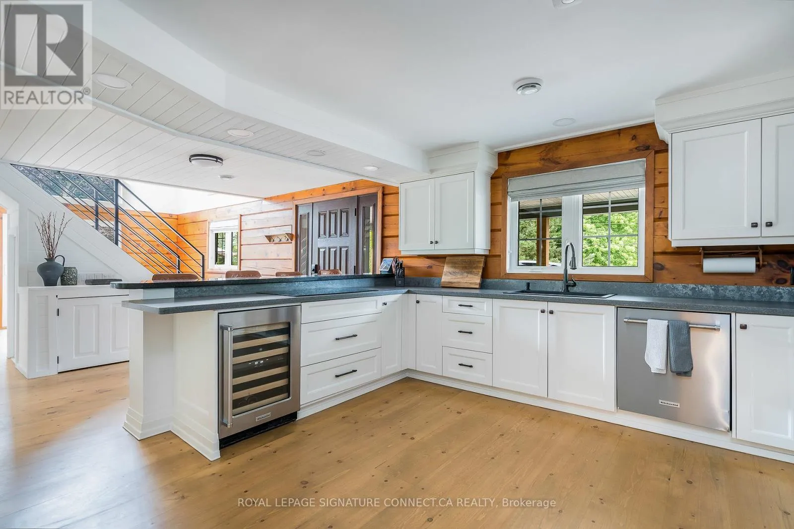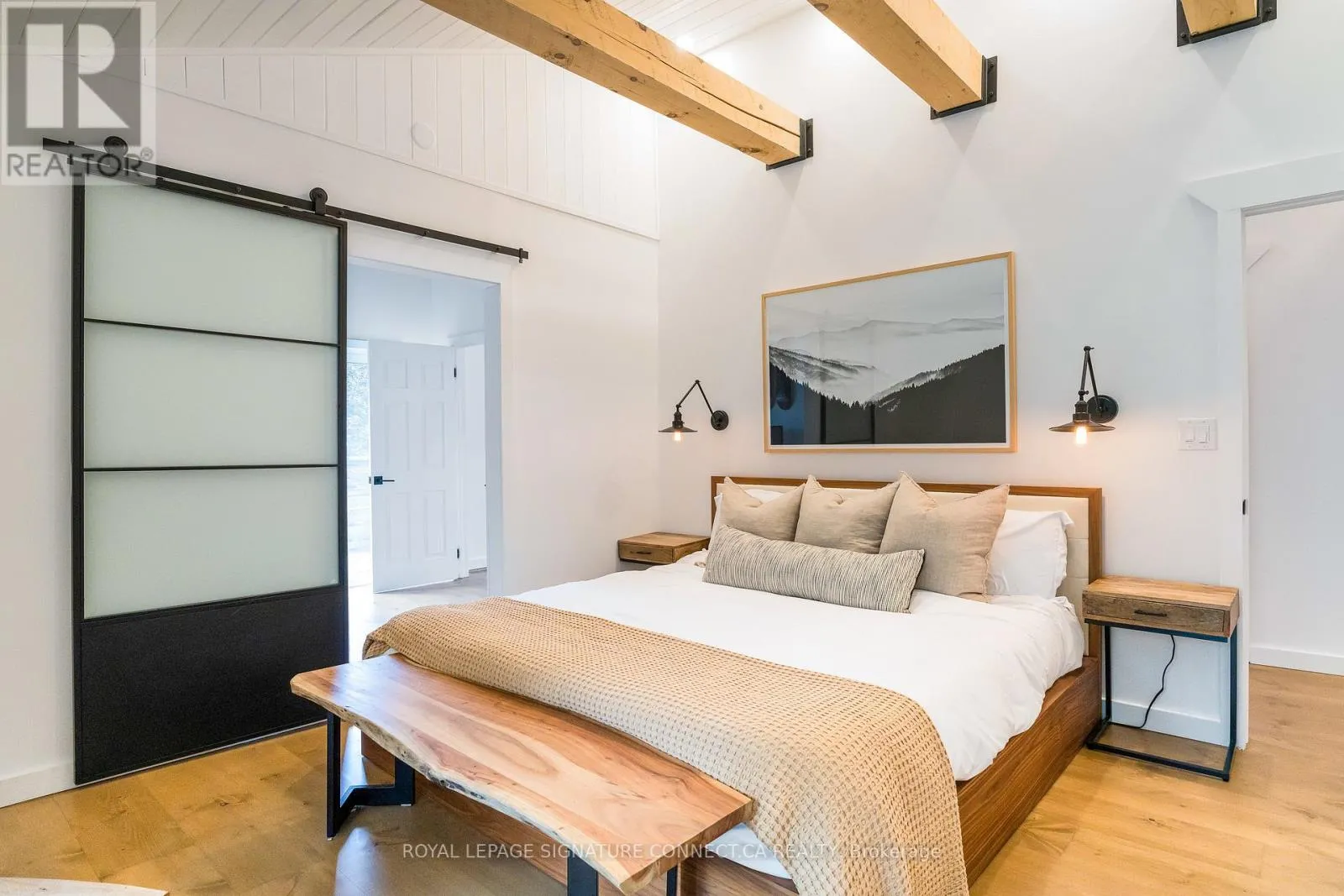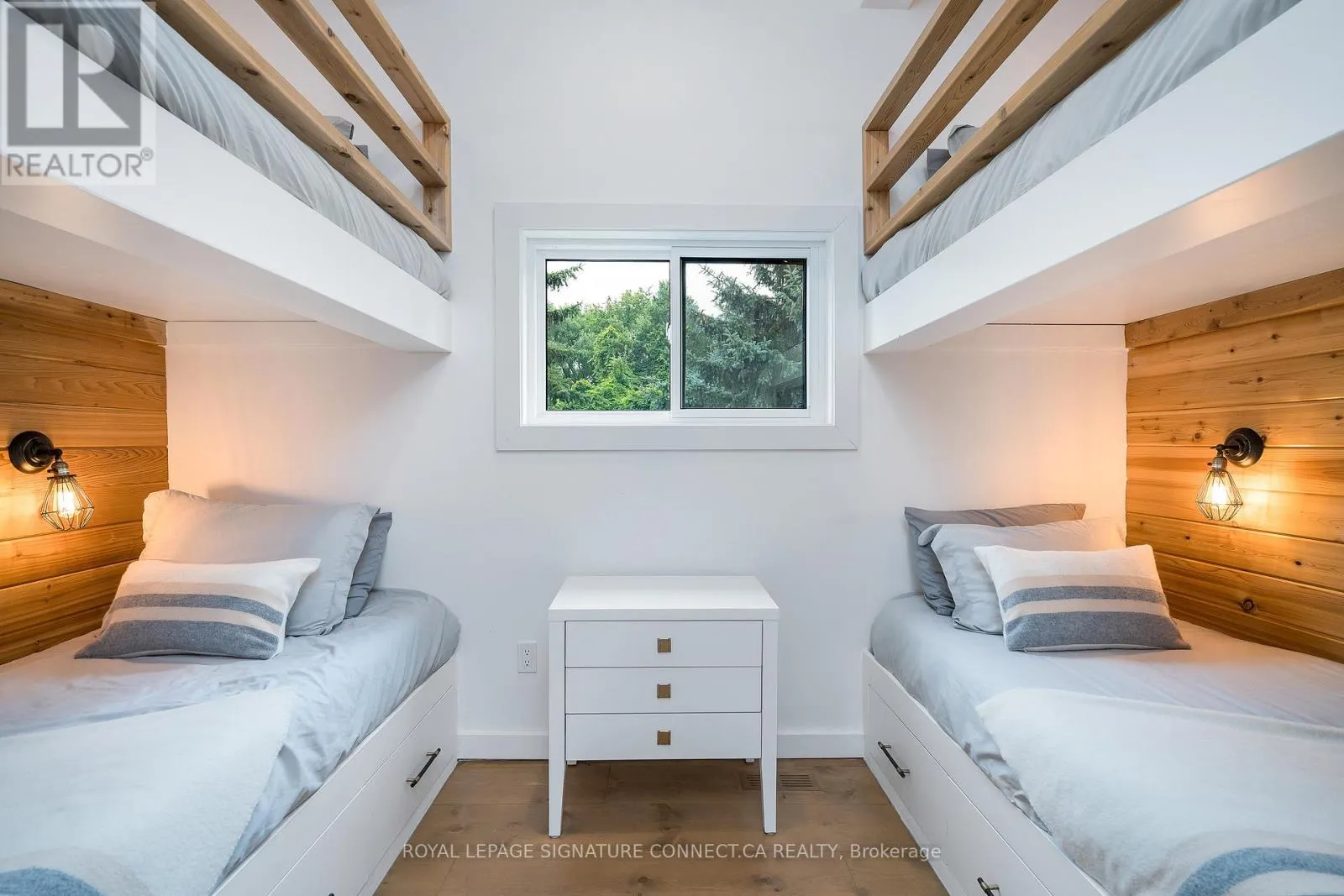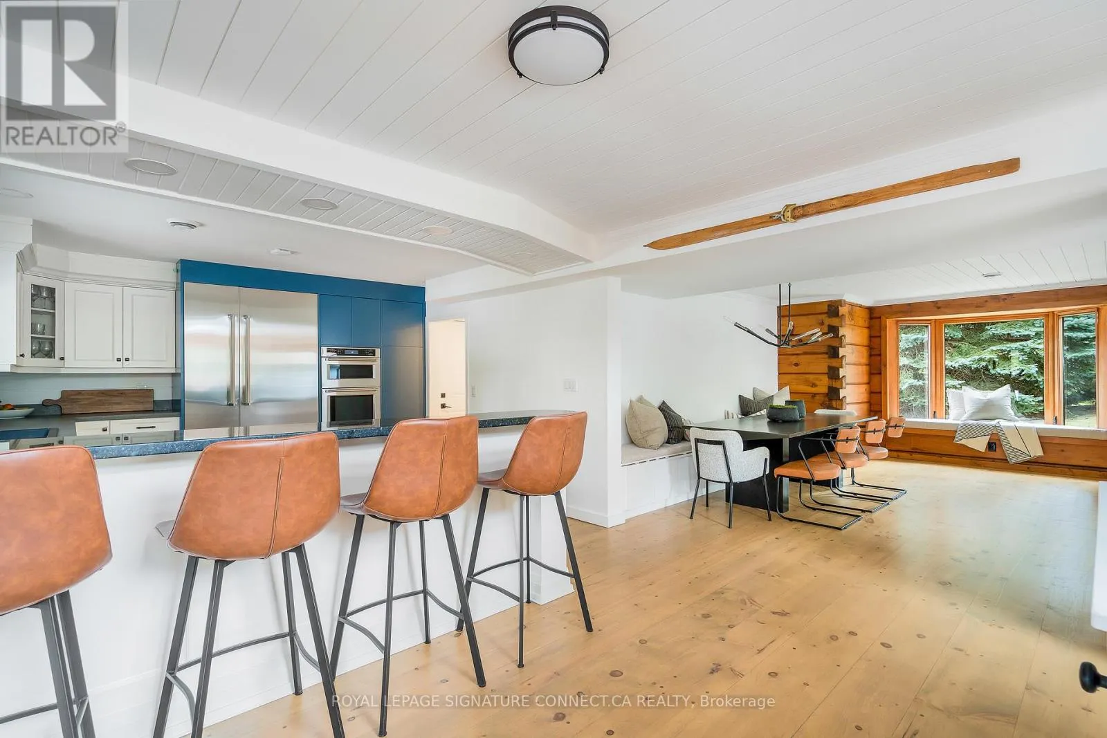Grey Road 19 to Heritage (@Blue Mountain Inn). North to Settlers Way LEFT to the sign on the left. Luxury chalet just steps to Blue Mountains north lifts, Toronto Ski Club, Monterra Golf and Blue Mountain Village. This rustic-modern Scandinavian retreat has been completely renovated from top to bottom with stunning finishes and is offered fully furnished and equipped move-in ready from day one. Ideally located for private ski club members, the chalet is steps to TSC, 3-minute drive to Craigleith, 5 minutes to Alpine, 10 minutes to Osler, and 7 minutes to Georgian Peaks. Natural light fills the open-concept living spaces, with gorgeous views of the Blue Mountain ski hills, where soaring ceilings and curated details create an inviting atmosphere for both entertaining and relaxing. The chefs kitchen showcases a premium Viking refrigerator & freezer and top of the line KitchenAid appliances including wine fridge, while a custom ski room with heated floors, boot and glove warmers, and an infrared sauna ensures year-round comfort. Outdoors, enjoy a true resort lifestyle with a putting and chipping green and outdoor golf simulator, an all-season kitchen with BBQ and wood-fired pizza oven, and a 9-person Bullfrog Hydrotherapy hot tub overlooking Blue Mountain. Mature trees and professional landscaping create the perfect backdrop for summer barbecues, après-ski evenings, and everything in between. With four bedrooms plus a loft including custom bunkbeds there is plenty of space for family and guests, all beautifully furnished and move-in ready down to décor, artwork, and beach cruisers for Georgian Bay adventures just minutes away.118 Settlers Way is more than a home - it's a private resort, a mountain retreat, and a rare turnkey opportunity in the heart of Blue Mountain. (id:27476)