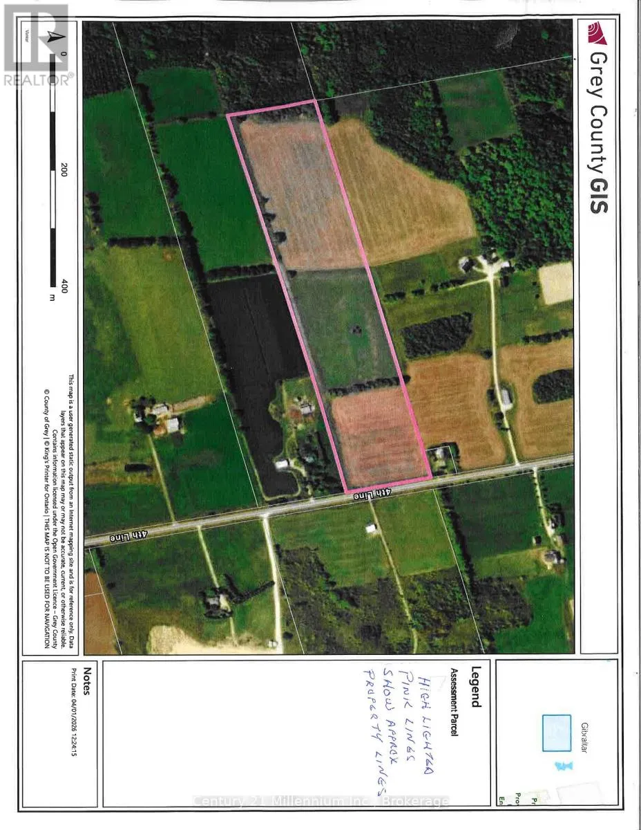 Cross Streets: 4TH LINE AND SIDE RD 6. ** Directions: GREY RD 2 TO SIDE RD 19 TO 4TH LINE SOUTH TO SIGN. 25 plus acres of mostly rolling agricultural land on a paved road on top of the escarpment in the town of Blue Mountains. A very short drive to the top of most of the local ski resorts, snowmobile trail, mountain bike/hiking trails and crownland. The potential of this property is only limited by your imagination and all municipal and provincial approval's ,zoning / building regulations etc!!! (id:27476)