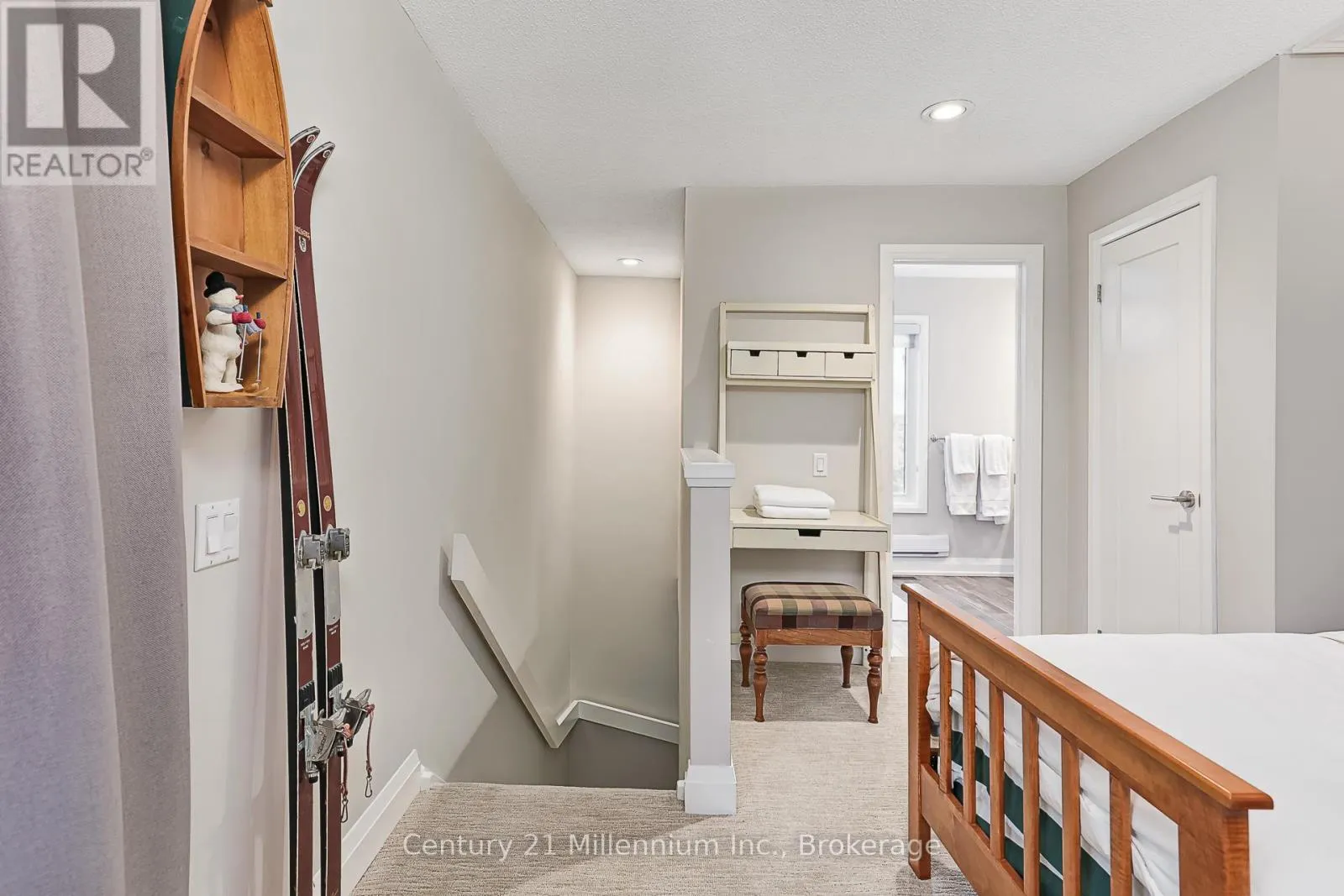 Cross Streets: Jozo Weider/Fairway Court. ** Directions: Jozo Weider Blvd West, Right on Fairway Court. Your perfect Summer getaway awaits in this beautiful 2-bedroom, 3-bathroom condo in the sought-after Sierra Lane community at Blue Mountain. Situated on the first fairway of the award winning Monterra Golf Course and just across the street from Ontario's most popular four season resort, Blue Mountain Village.This fully furnished, turn-key home offers the ideal blend of comfort and convenience for your Spring/Summer/Fall escape. The open-concept living area features cathedral ceilings, large windows with stunning mountain and golf course views, and a cozy gas fireplace-perfect for relaxing after a day on the slopes. The modern, upgraded kitchen with spacious dining table is ready for unforgettable meals with family and friends. The main level offers a welcoming entryway, laundry area, and a generous primary suite with ensuite and closet space. Upper level features two singles and another full bath. The Blue Mountain Shuttle Service can whisk you to and from the Village, or you can simply walk to the shops, restaurants, and village activities across the street. Enjoy the best of both worlds - close to all the action, yet quiet and relaxing when you return home. Exclusive storage locker just outside the door, one owned parking space and ample guest parking. Monthly rate is based on a minimum 3-month term; dates are flexible and may be extended. (id:27476)