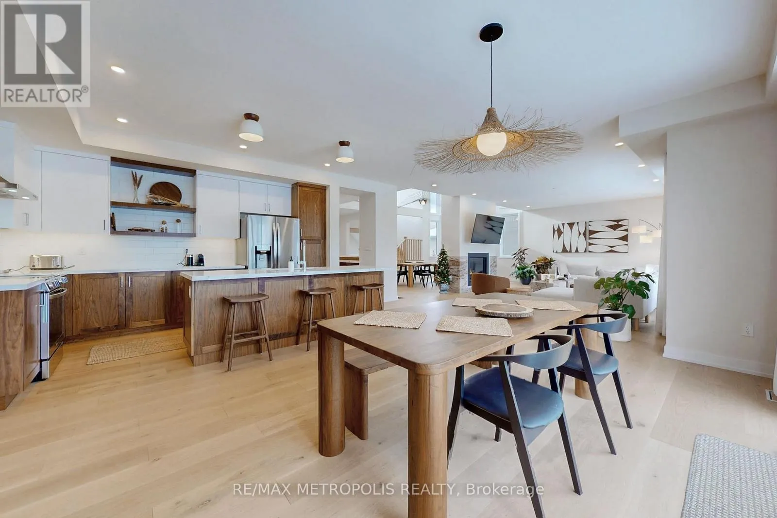 Cross Streets: CROSSWINDS & SPRINGSIDE. ** Directions: GREY ROAD 19 TO CROSSWINDS BLVD. GO EAST ON CROSSWINDS THEN WEST ON SPRINGSIDE. WEST ON STONELEIGH. ATHE PROPERTY IS ON TH NORTH SIDE OF STONELEIGH. Welcome to 104 Stoneleigh Drive-where modern luxury meets the natural beauty of Blue Mountain. Experience a refined getaway in this centrally located home, just a 3-minute drive (or a scenic 15-minute walk) to Blue Mountain Village. Enjoy effortless access to top local attractions, including the Scandinavian Spa (5 minutes), Collingwood's historic downtown (10 minutes), and Sunset Point Beach (12 minutes). Perfectly situated in the heart of the Town of Blue Mountains, this property offers year-round activities at your doorstep.Inside, the home showcases breathtaking contemporary design with Scandinavian-inspired elegance. Soaring 12-foot ceilings and a stunning second-floor mezzanine create an open, airy atmosphere, while high-end finishes elevate every space. The gourmet kitchen features quartz countertops and premium stainless steel appliances, complemented by marble countertops in the bathrooms. A striking double-sided fireplace anchors both the living and dining areas, adding warmth and sophistication. Professionally designed by Studio Kellezi Luxury Designers, every detail has been thoughtfully curated for both style and comfort. This fully furnished property is truly turnkey-down to the linens. Simply pack your bags and start enjoying everything Blue Mountain has to offer. (id:27476)