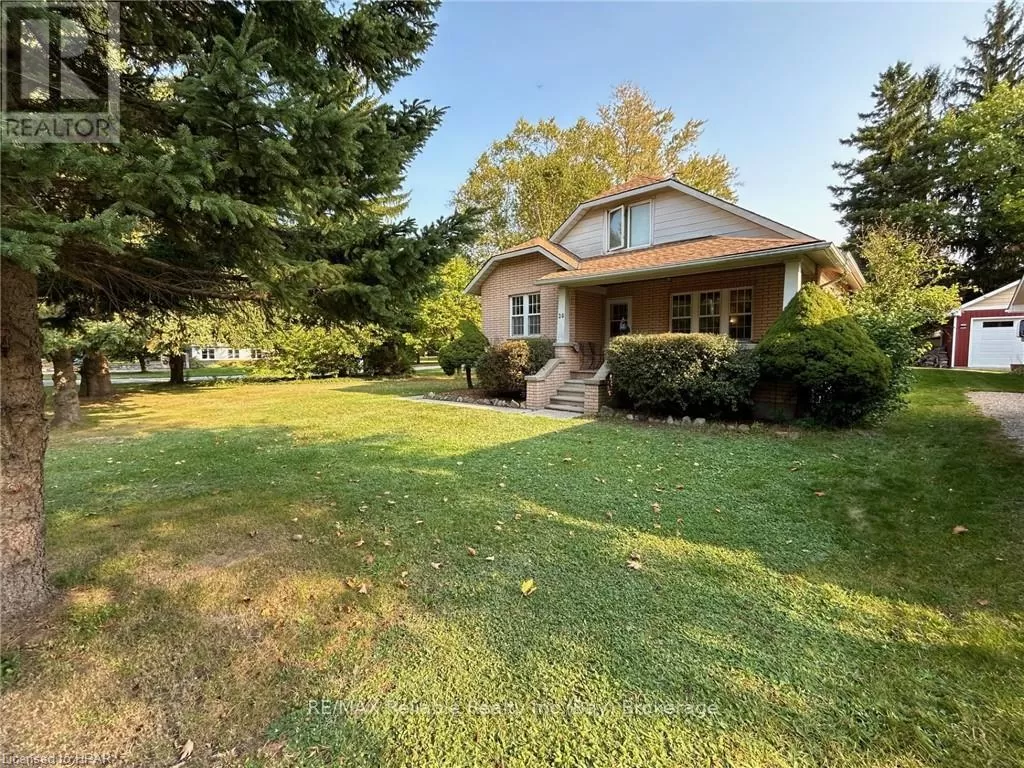 On Hwy 21 near Clan Gregor Square CHARMING BRICK HOME ON ESTATE-SIZED LOT IN BAYFIELD!! Cozy 3 bedroom home boasting lovely woodwork and hardwood flooring thru-out. Formal dining room. Spacious living room. Main-floor primary bedroom. Upper floor has 2 bedrooms. Covered front and rear verandas. Natural gas heating and central air. Oversized garage/barn is located on the EXTRA BUILDING LOT that could be separated at a later date. Lots of mature trees, paved driveway & easy access of Euphemia Street. Municipal water & sewer. Short walk to historic ?Main Street? & downtown restaurants and shops. Lots of "elbow" room. EXCELLENT INVESTMENT OPPORTUNITY!! (id:27476)