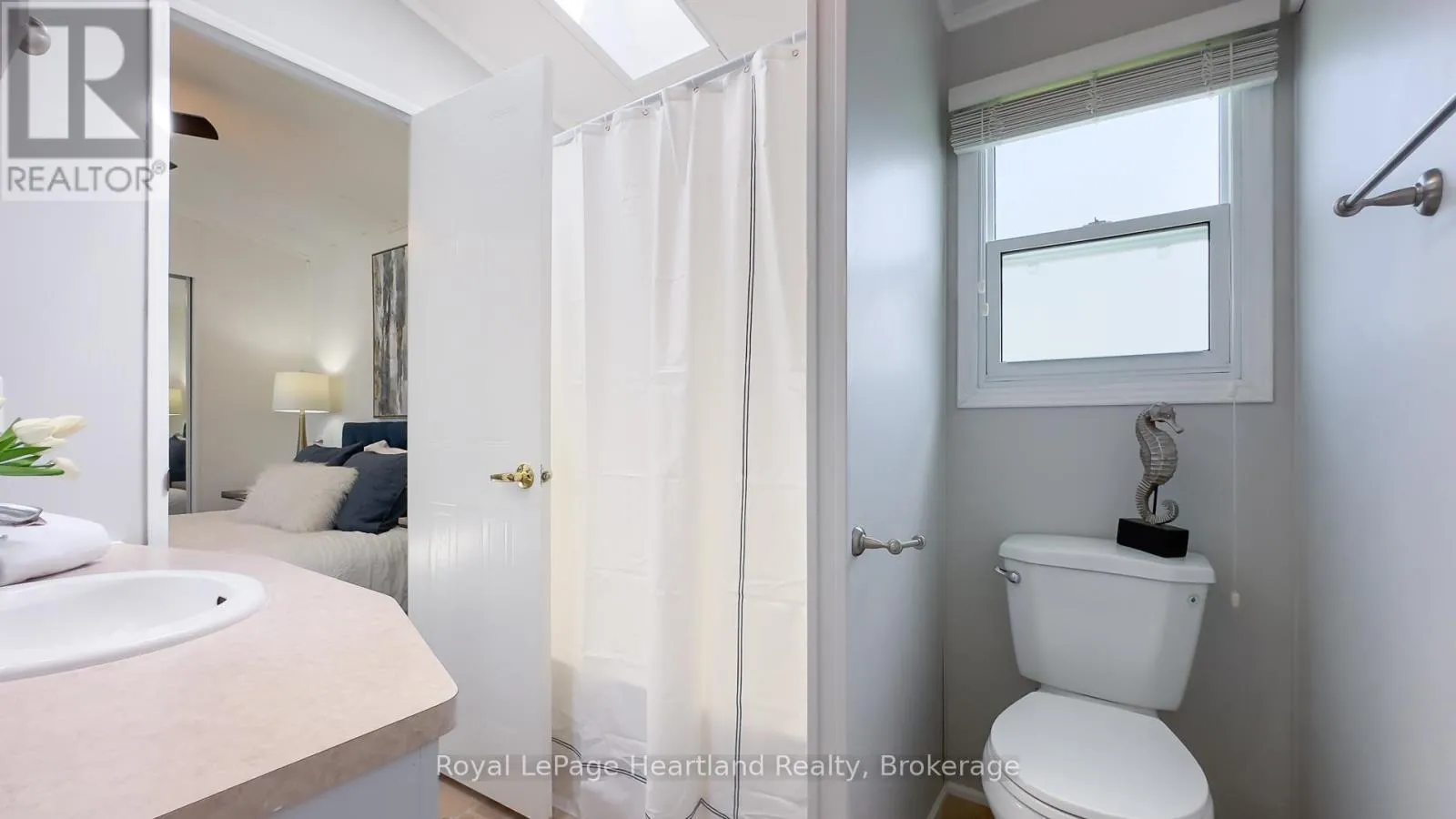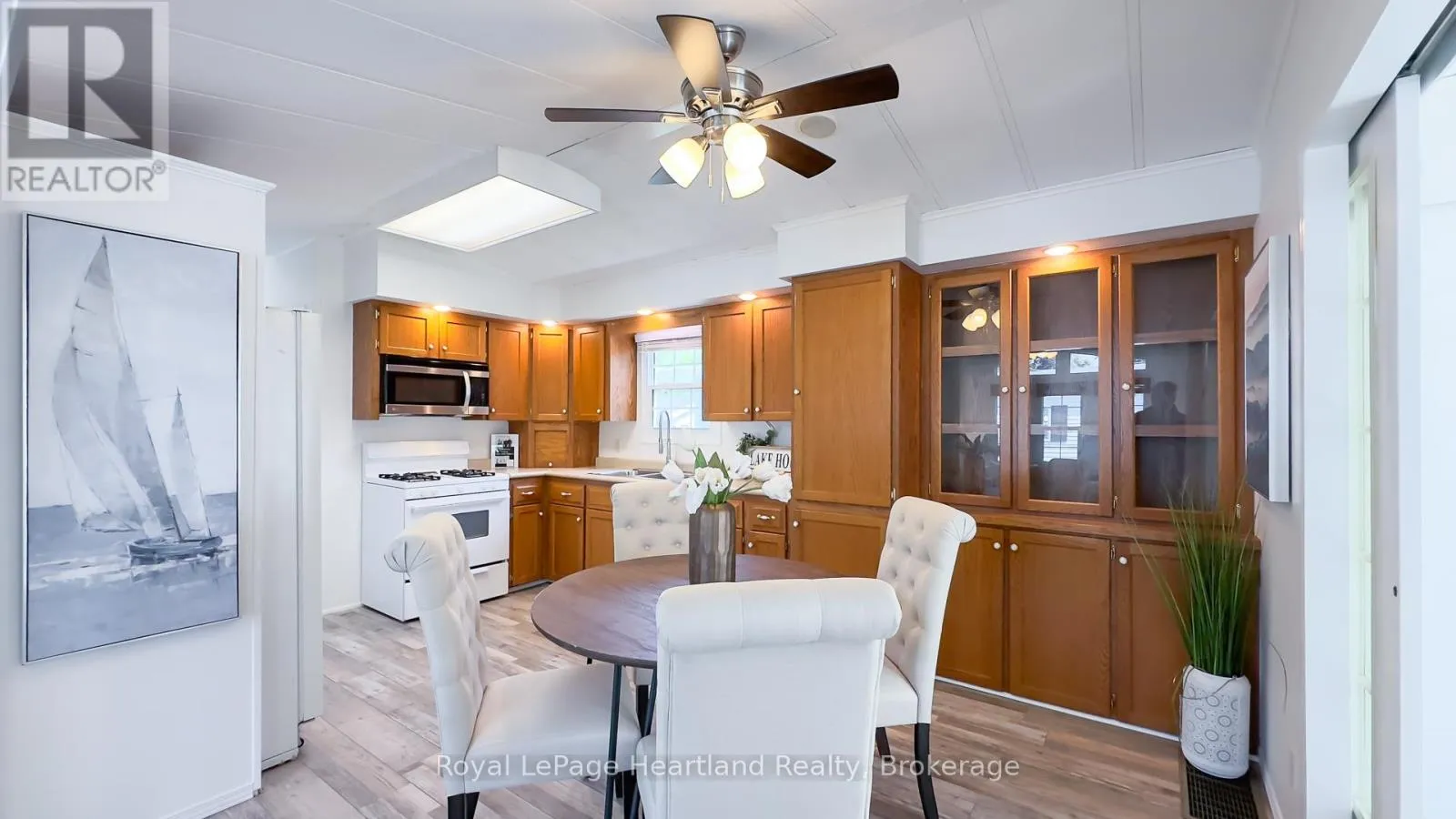 From the Entrance of the Park, follow the one-way street to Waters Edge and turn Left, property is on the left Live Free for a Year at Northwood Beach Resort! That's right - buy 49 Waters Edge and enjoy ONE FULL YEAR of RENT FREE LIVING! That's 12 months of keeping your money for travel, family, or simply enjoying life by the lake. Nestled in the sought-after Northwood Beach Resort on the scenic shores of Lake Huron and just minutes from Bayfield, this charming Northlander model offers comfort and flexibility - featuring a cozy living room with gas fireplace, spacious eat-in kitchen, and a versatile den that can double as a second bedroom or office. The community offers amenities including a newly renovated clubhouse, swimming pool, and breathtaking sunsets over Lake Huron right from your front porch. If you've been dreaming of a carefree lakeside lifestyle - with the bonus of living rent-free for your first year - this is your sign to make the move. 49 Waters Edge, Northwood Beach Resort - where your next chapter begins with freedom, comfort, and a view. (id:27476)