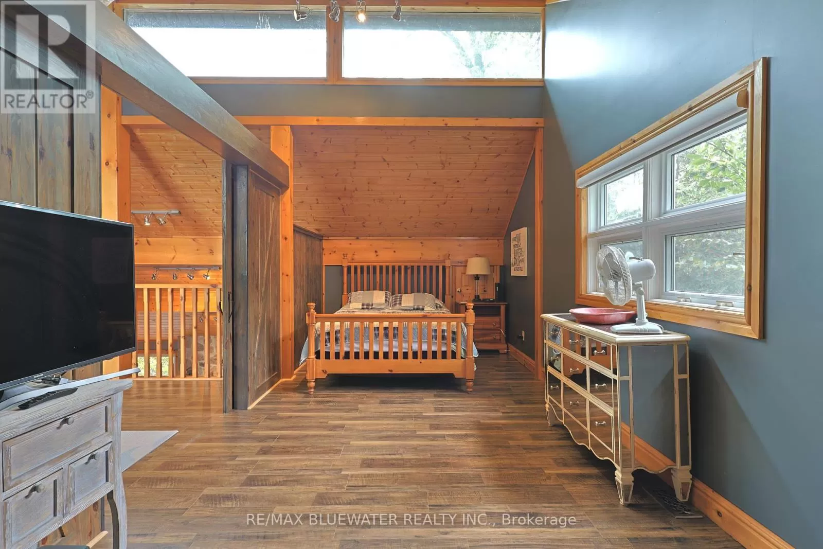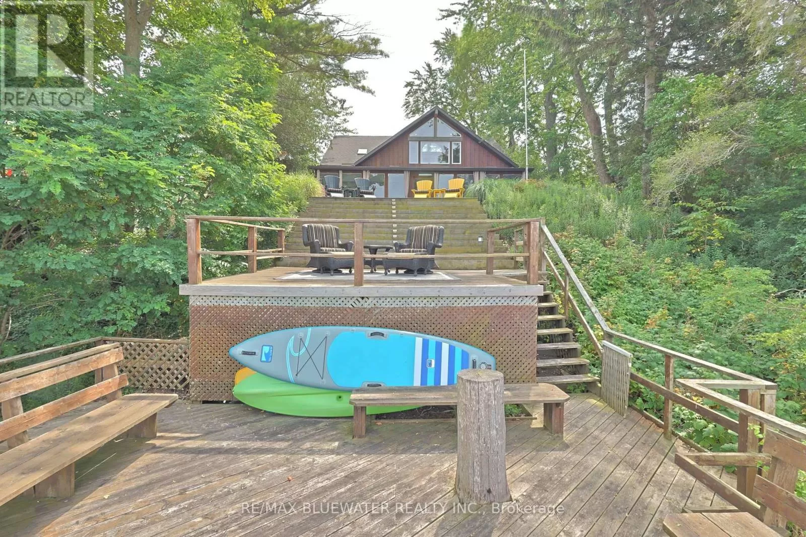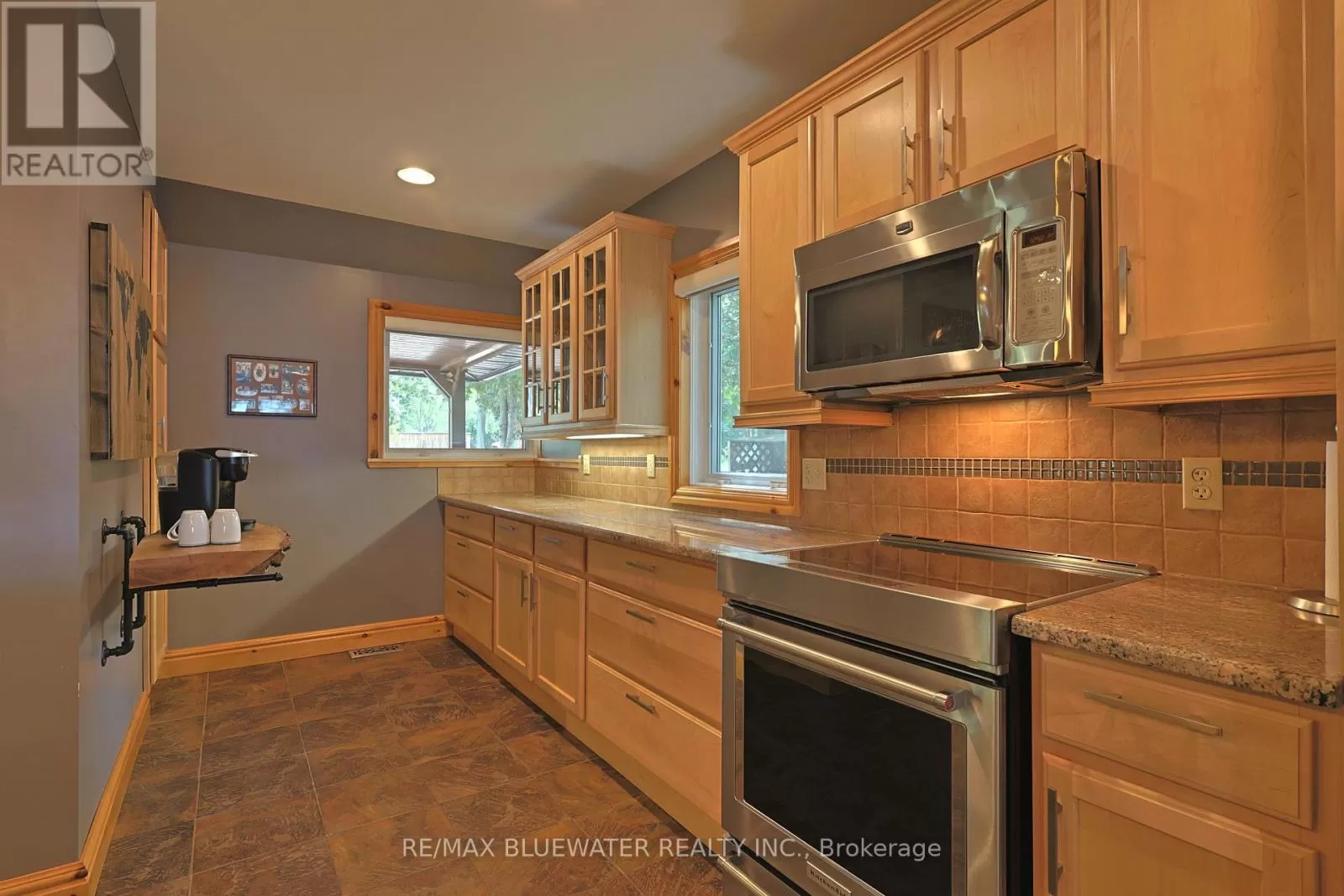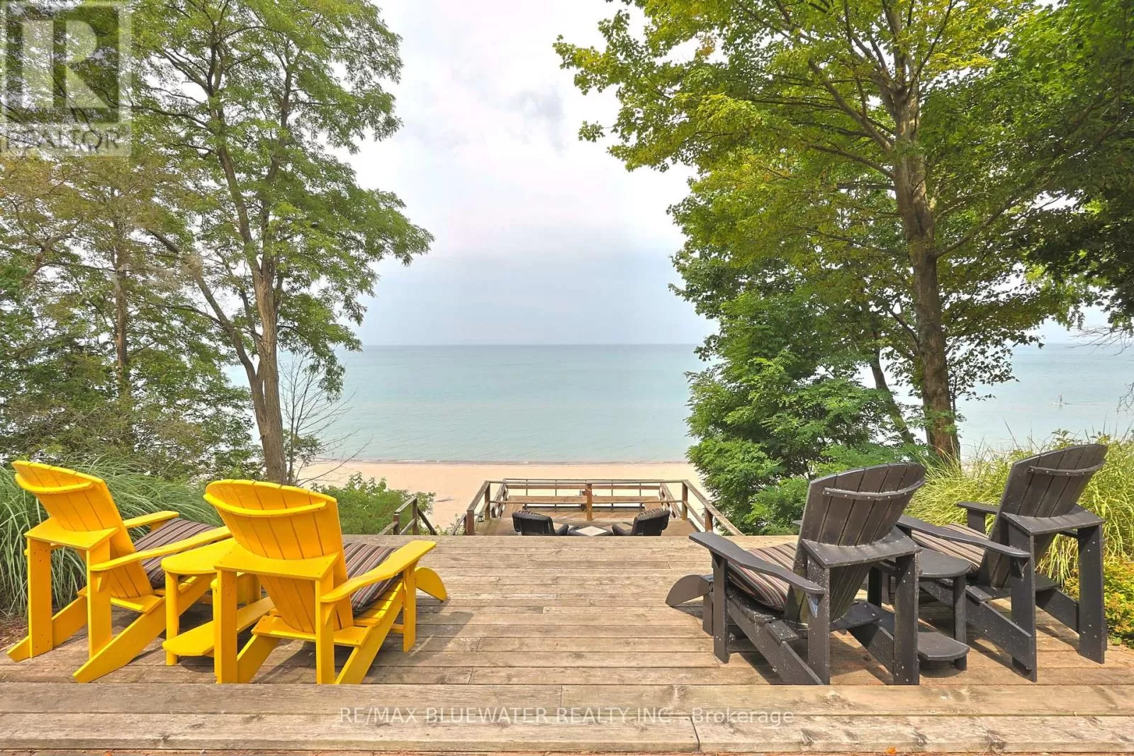 Cross Streets: Elizabeth St. ** Directions: Bluewater Highway to Evelyn St, Follow Evelyn St to Elizabeth St. Property near end of Elizabeth St on Lakeside. The picture-perfect lakefront retreat just north of Grand Bend! Start checking the boxes off for sandy beaches, panoramic lake views, private setting, spacious updated living space and turnkey with furniture included. Situated in the Highlands III neighborhood this year-round home catches your eye. With the charming log home wood siding finish complimented by the covered front entrance, landscaped gardens, second floor transom windows and stone chimney. On the lakeside its your private oasis with a 400 sqft three season sunroom that transitions you from the inside living space to your back yard. The sunroom is a great screened in space during the day with lexan coverings for colder nights. Large patio space leads to a three-tiered deck down to the sandy beaches of Lake Huron. Inside you have an updated open concept design with engineered hardwood flooring, vaulted knotty pine ceilings and a living space flowing with natural light. Enjoy the panoramic lake views found throughout the home. The kitchen includes stainless steel appliances, wood cabinetry, pantry for storage and granite countertops with eat up island. Living room with large lakeview windows and patio doors leading to the lakeside sunroom. A large eating area is great for entertaining family and the reading space at the front of the home is the perfect spot to get cozy by the gas fireplace. Main floor primary bedroom suite with double closets, full ensuite and lake views. The main floor also includes a second bedroom and additional full bathroom with laundry. Upstairs you have an open loft area that leads to the perfect office space with a large panoramic window overlooking the lake no need for a screen saver with this view. The second floor also includes a third bedroom and space for guests in the guest room. Come enjoy the relaxing days on the beach, the long walks along the sandy shores of Lake Huron, the nightly sunsets over the water and the calming lifestyle of living on the Lake. (id:27476)