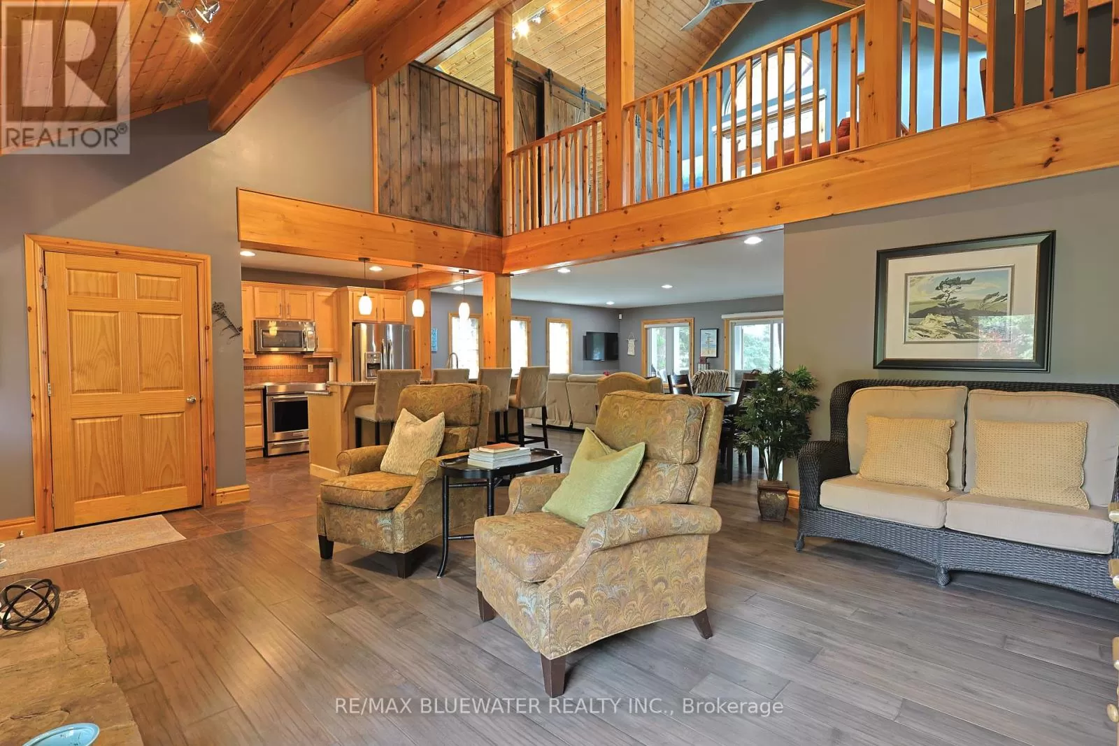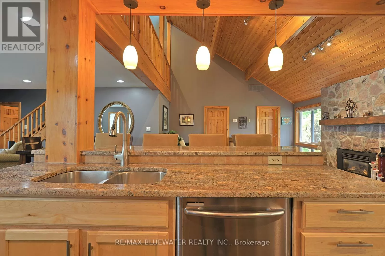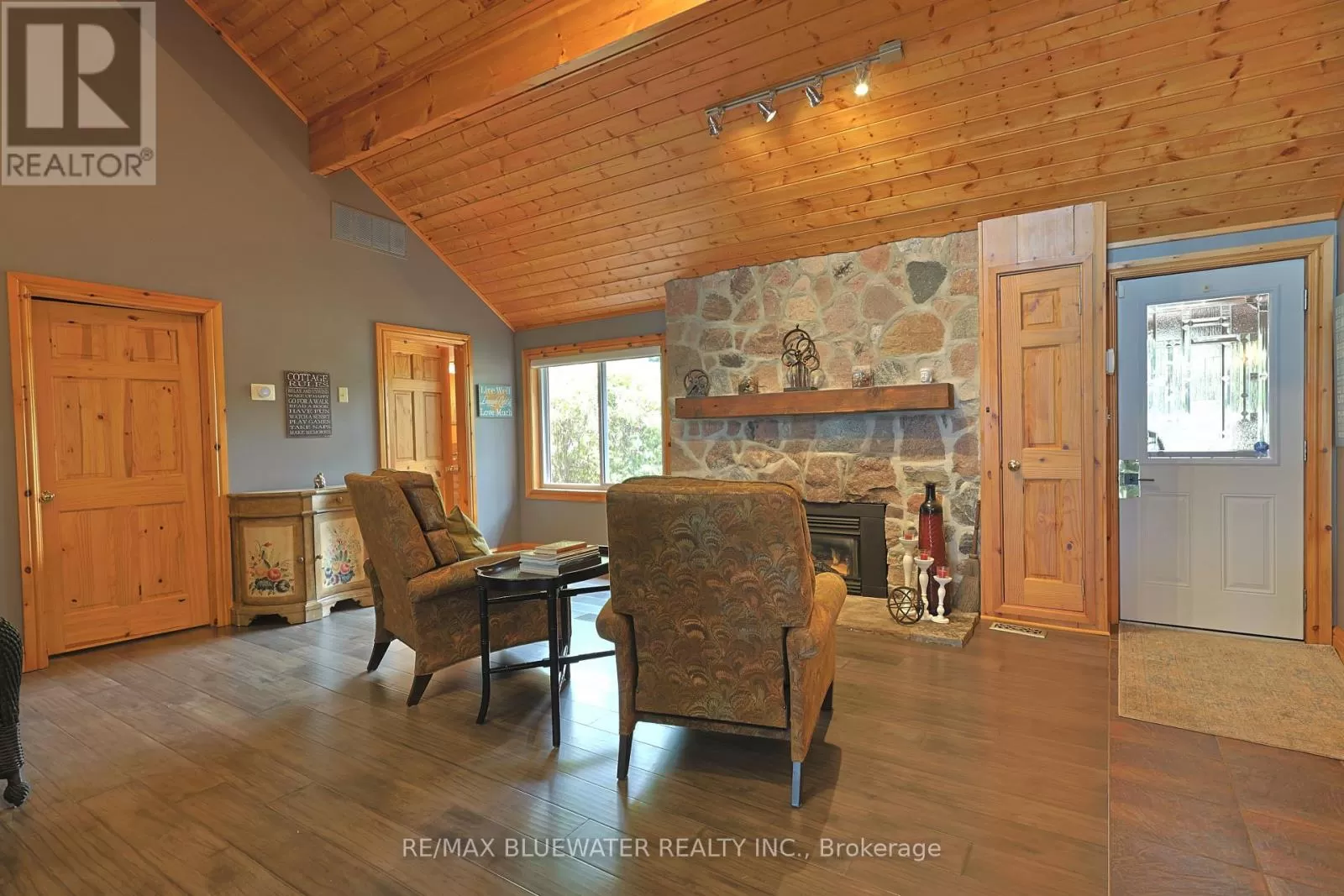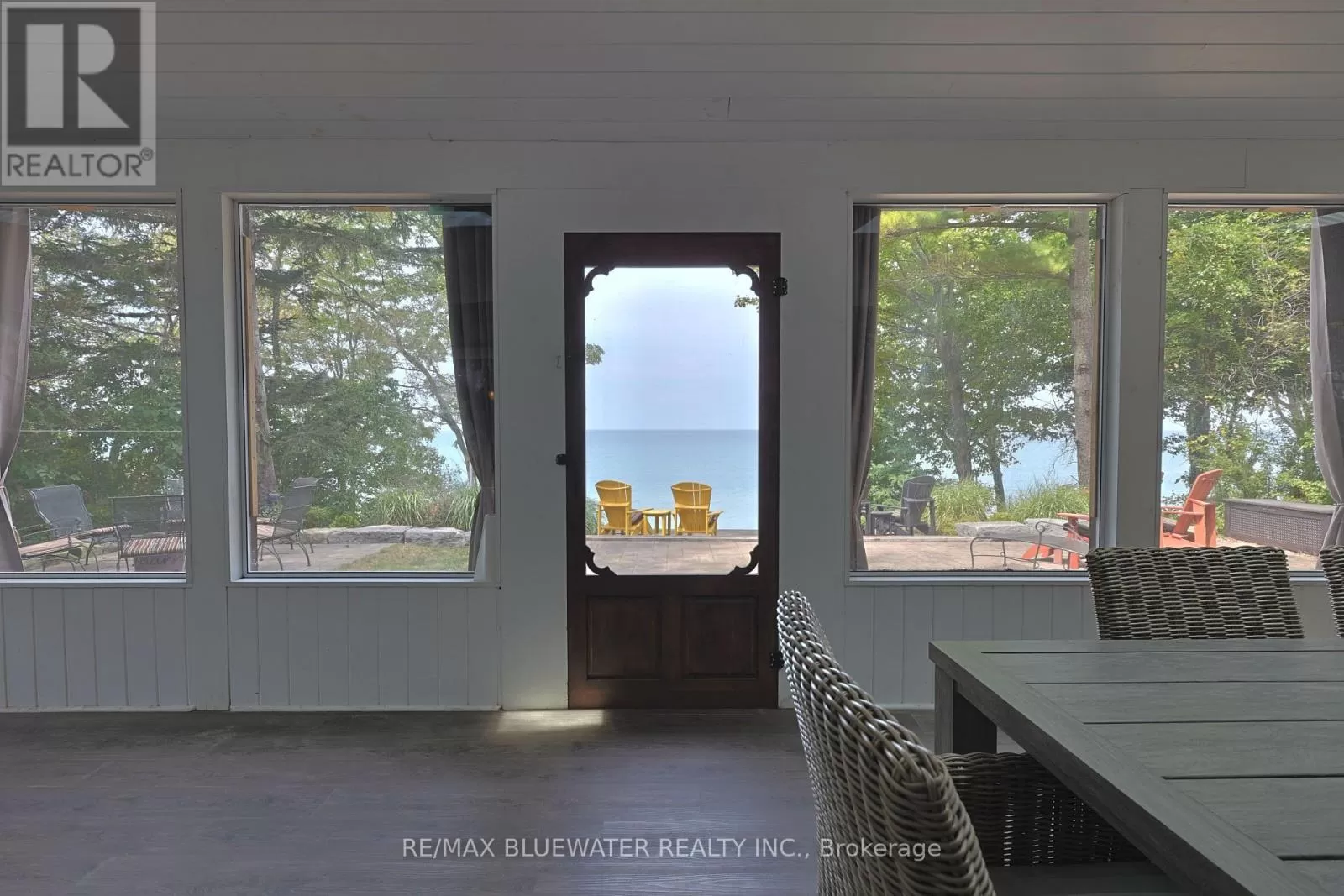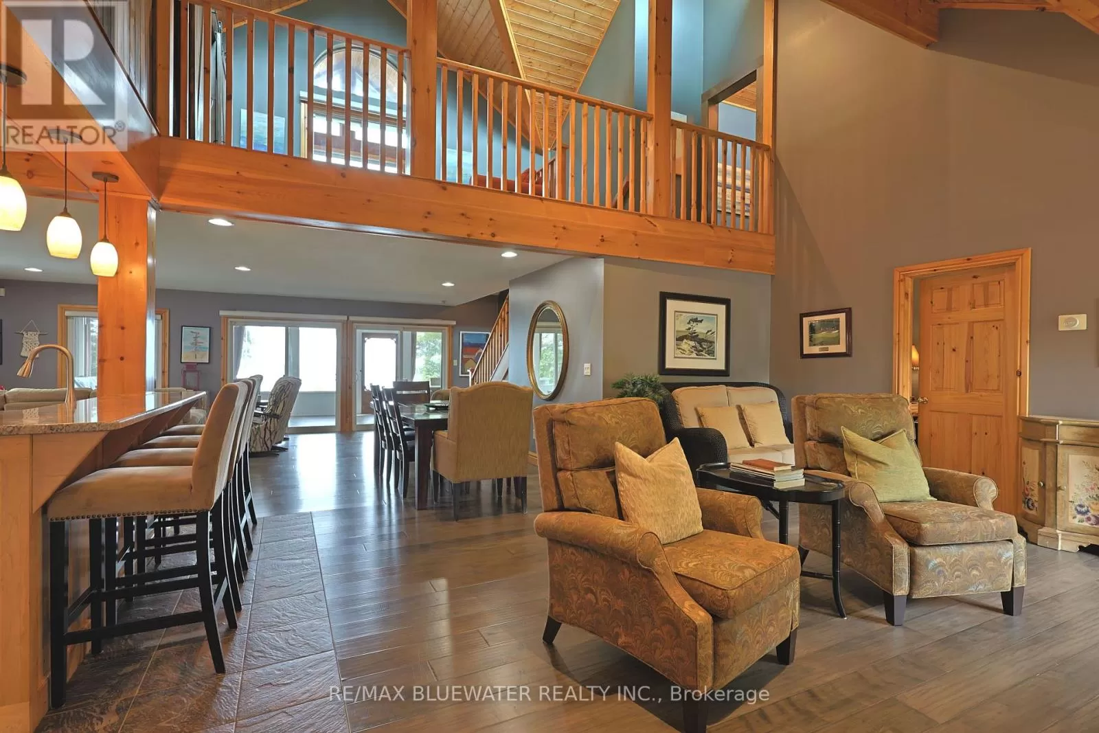 Cross Streets: Elizabeth St. ** Directions: Bluewater Highway to Evelyn St, Follow Evelyn St to Elizabeth St. Property near end of Elizabeth St on Lakeside. The picture-perfect lakefront retreat just north of Grand Bend! Start checking the boxes off for sandy beaches, panoramic lake views, private setting, spacious updated living space and turnkey with furniture included. Situated in the Highlands III neighborhood this year-round home catches your eye. With the charming log home wood siding finish complimented by the covered front entrance, landscaped gardens, second floor transom windows and stone chimney. On the lakeside its your private oasis with a 400 sqft three season sunroom that transitions you from the inside living space to your back yard. The sunroom is a great screened in space during the day with lexan coverings for colder nights. Large patio space leads to a three-tiered deck down to the sandy beaches of Lake Huron. Inside you have an updated open concept design with engineered hardwood flooring, vaulted knotty pine ceilings and a living space flowing with natural light. Enjoy the panoramic lake views found throughout the home. The kitchen includes stainless steel appliances, wood cabinetry, pantry for storage and granite countertops with eat up island. Living room with large lakeview windows and patio doors leading to the lakeside sunroom. A large eating area is great for entertaining family and the reading space at the front of the home is the perfect spot to get cozy by the gas fireplace. Main floor primary bedroom suite with double closets, full ensuite and lake views. The main floor also includes a second bedroom and additional full bathroom with laundry. Upstairs you have an open loft area that leads to the perfect office space with a large panoramic window overlooking the lake no need for a screen saver with this view. The second floor also includes a third bedroom and space for guests in the guest room. Come enjoy the relaxing days on the beach, the long walks along the sandy shores of Lake Huron, the nightly sunsets over the water and the calming lifestyle of living on the Lake. (id:27476)