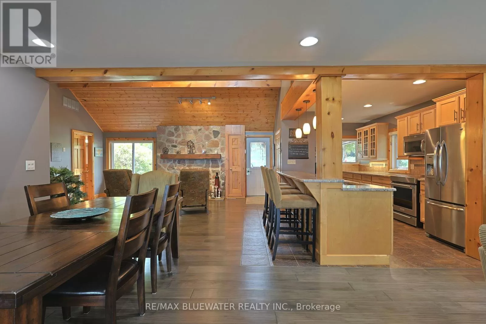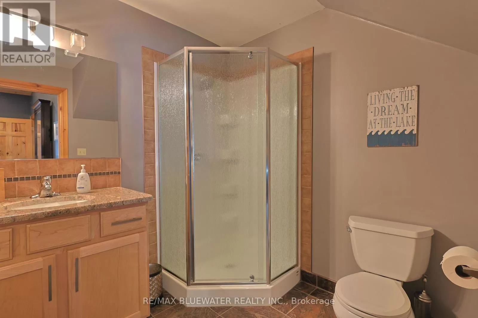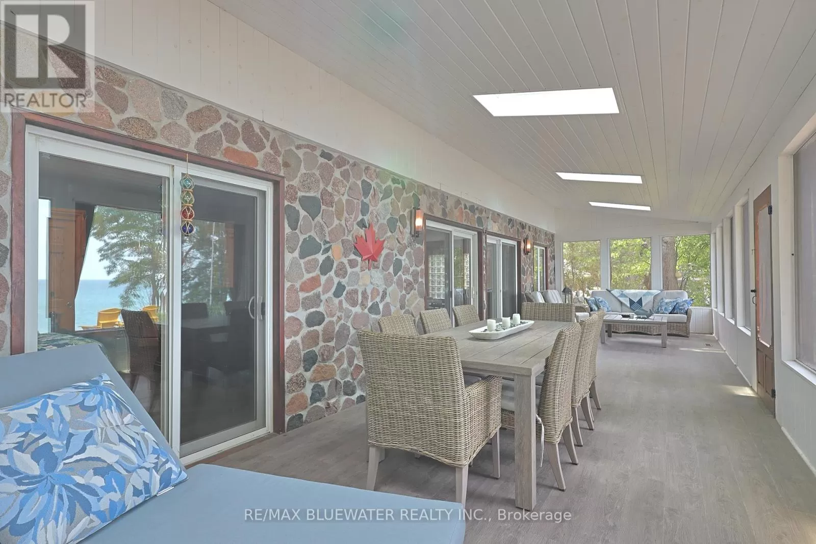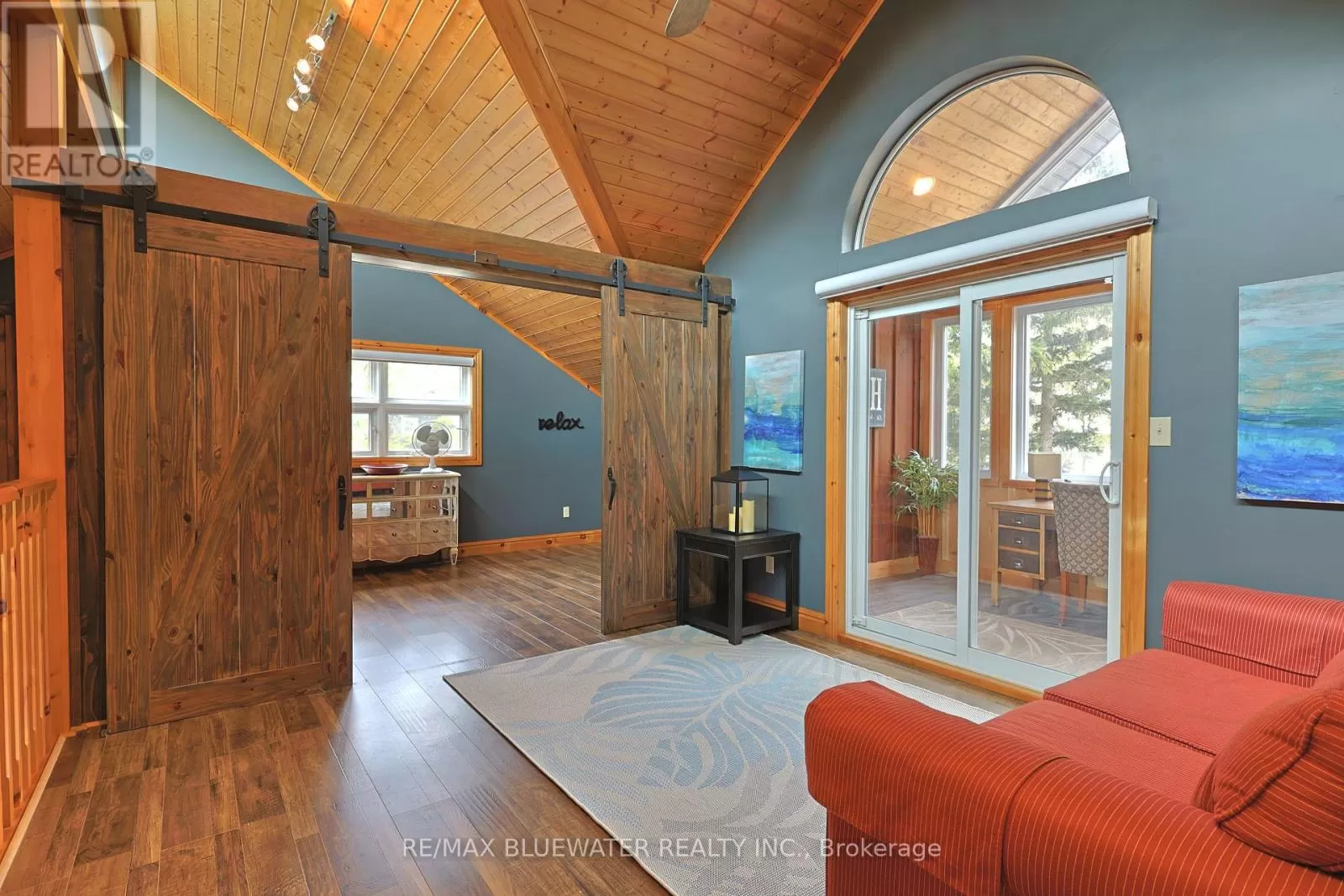 Cross Streets: Elizabeth St. ** Directions: Bluewater Highway to Evelyn St, Follow Evelyn St to Elizabeth St. Property near end of Elizabeth St on Lakeside. The picture-perfect lakefront retreat just north of Grand Bend! Start checking the boxes off for sandy beaches, panoramic lake views, private setting, spacious updated living space and turnkey with furniture included. Situated in the Highlands III neighborhood this year-round home catches your eye. With the charming log home wood siding finish complimented by the covered front entrance, landscaped gardens, second floor transom windows and stone chimney. On the lakeside its your private oasis with a 400 sqft three season sunroom that transitions you from the inside living space to your back yard. The sunroom is a great screened in space during the day with lexan coverings for colder nights. Large patio space leads to a three-tiered deck down to the sandy beaches of Lake Huron. Inside you have an updated open concept design with engineered hardwood flooring, vaulted knotty pine ceilings and a living space flowing with natural light. Enjoy the panoramic lake views found throughout the home. The kitchen includes stainless steel appliances, wood cabinetry, pantry for storage and granite countertops with eat up island. Living room with large lakeview windows and patio doors leading to the lakeside sunroom. A large eating area is great for entertaining family and the reading space at the front of the home is the perfect spot to get cozy by the gas fireplace. Main floor primary bedroom suite with double closets, full ensuite and lake views. The main floor also includes a second bedroom and additional full bathroom with laundry. Upstairs you have an open loft area that leads to the perfect office space with a large panoramic window overlooking the lake no need for a screen saver with this view. The second floor also includes a third bedroom and space for guests in the guest room. Come enjoy the relaxing days on the beach, the long walks along the sandy shores of Lake Huron, the nightly sunsets over the water and the calming lifestyle of living on the Lake. (id:27476)