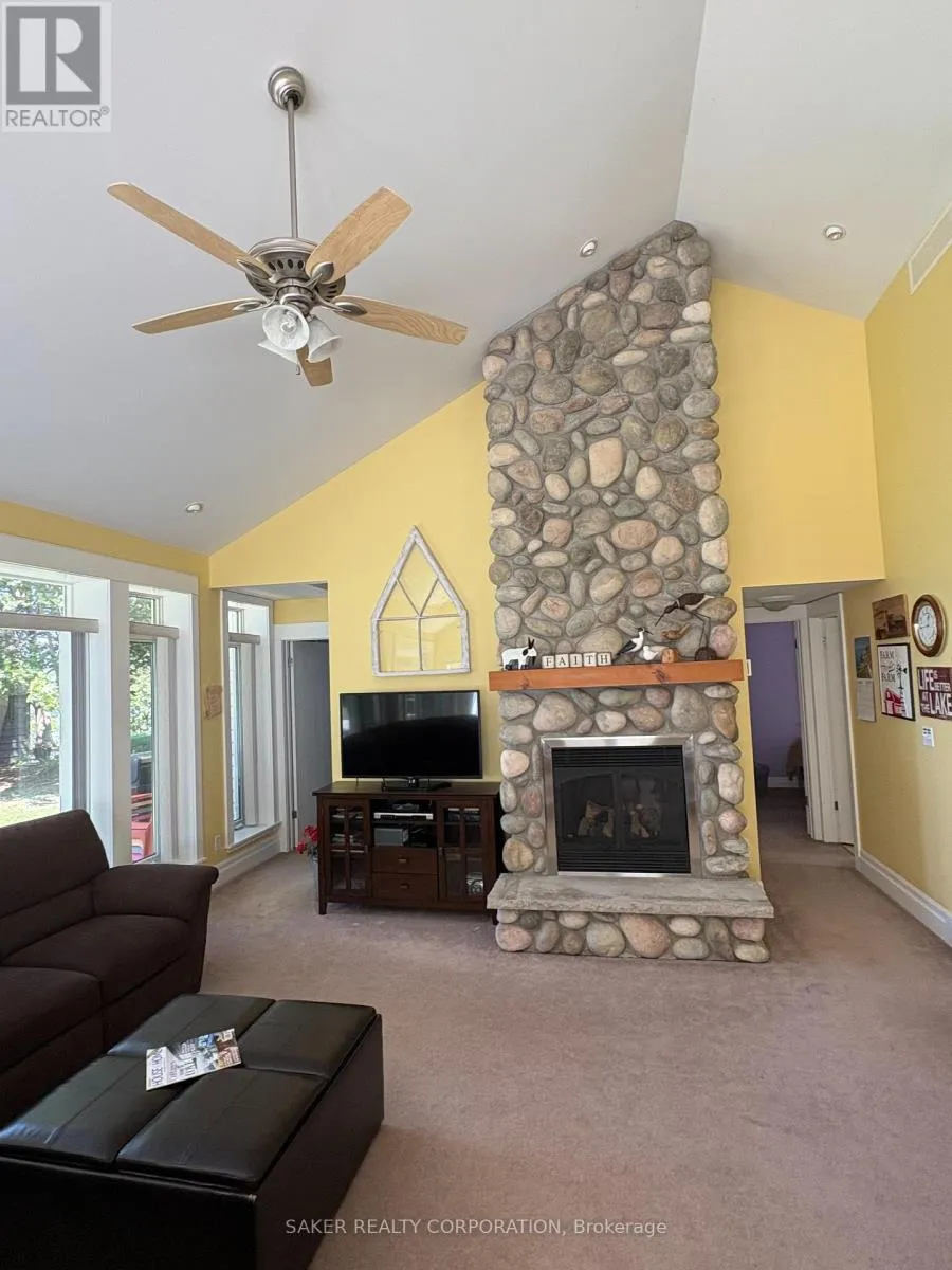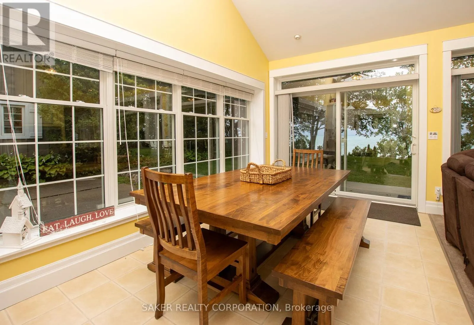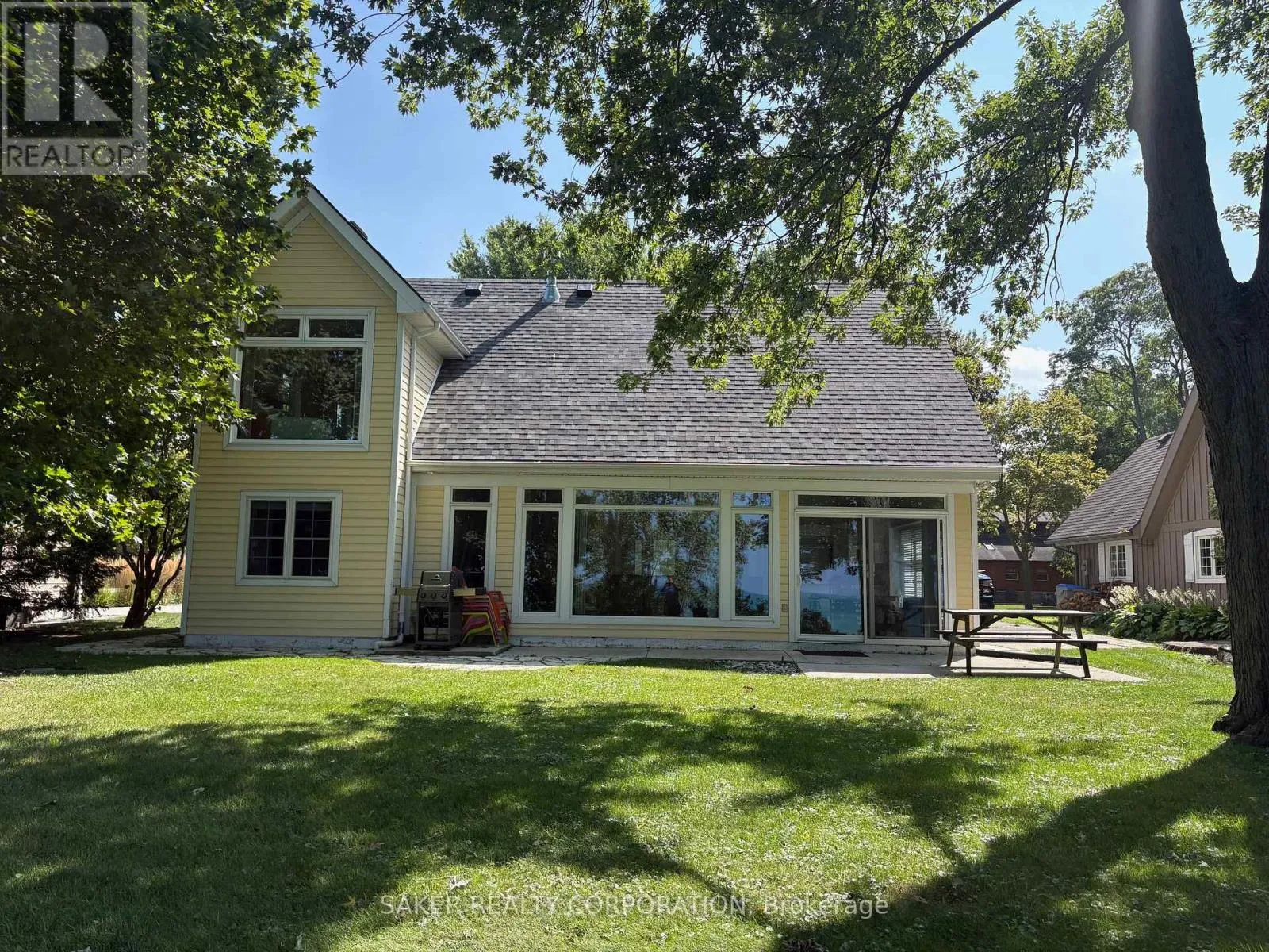 Cross Streets: EVELYN. ** Directions: JUST 5 MIN NORTH OF GRAND BEND. Experience one of the most beautiful beaches on Lake Huron, where silky smooth sand meets shallow, Caribbean-blue waters just a 5 minute drive to Grand Bend and is located in the Highland 3 subdivision. This property is protected by a seawall and offers unparalleled views both from the hilltop and the home itself, designed to capture ever-changing scenery and breathtaking sunsets. The private yard is shaded by mature trees, while a pressure-treated staircase leads down to a wide, sandy beach with ample space for kayaks, Seadoos, and more. Inside, the 3-bedroom home features an open-concept layout with floor-to-ceiling windows, a striking gas fieldstone fireplace, and unobstructed lake vistas. The master suite occupies its own private second-floor retreat with a luxurious ensuite and sweeping views. Additional highlights include a new roof (2024), generous parking for up to eight vehicles on a concrete laneway, and potential for a double-car garage. perfect for lakeside living at its finest. (id:27476)