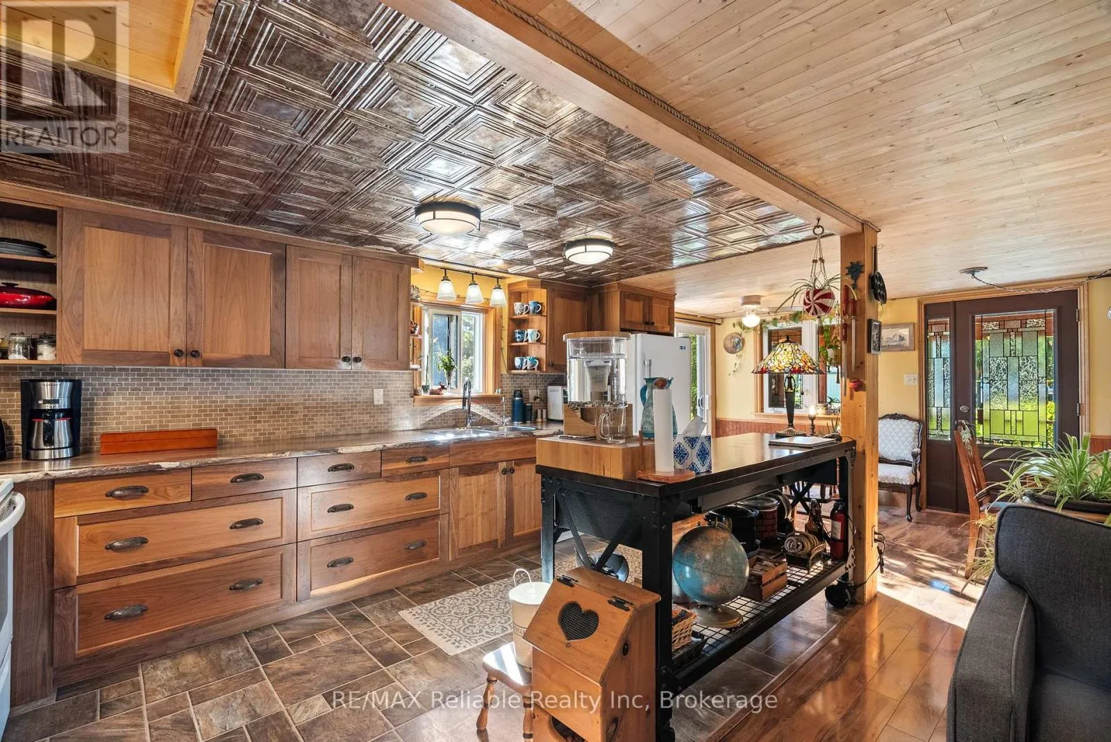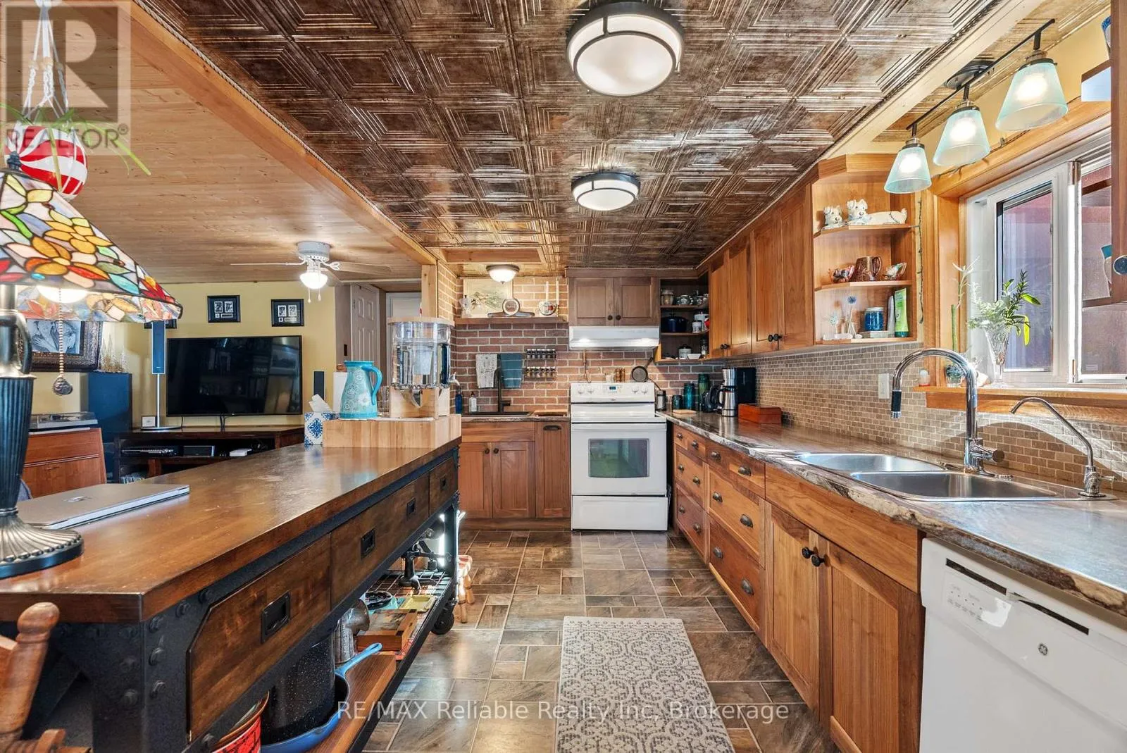 Cross Streets: Mill Road and Sarnia. ** Directions: Bluewater highway to Mill Road. Turn left on Sarnia Street to property on your right. Charming Bungalow with Cottage Feel. This 2-bedroom, 1-bathroom bungalow combines cozy cottage character with modern efficiency. A welcoming, expansive covered front porch sets the tone, adding rustic charm and providing the perfect spot to relax and enjoy the outdoors. Inside, the home offers a modest yet inviting layout, complemented by electric in-floor heating and on-demand hot water.Set on a large, lush yard with mature shade trees and established gardens, the property feels private and serene. An attached single-car garage adds convenience, while solar panels on the roof provide income that covers the entire cost of electricity for the yearmaking this home as practical as it is charming. A short walk to Bayfield Main Street shops and restaurants. Adjacent vacant lot at 12 Sarnia Street is also for sale. The vacant lot next door is ALSO for sale (MLS X12437626) (id:27476)