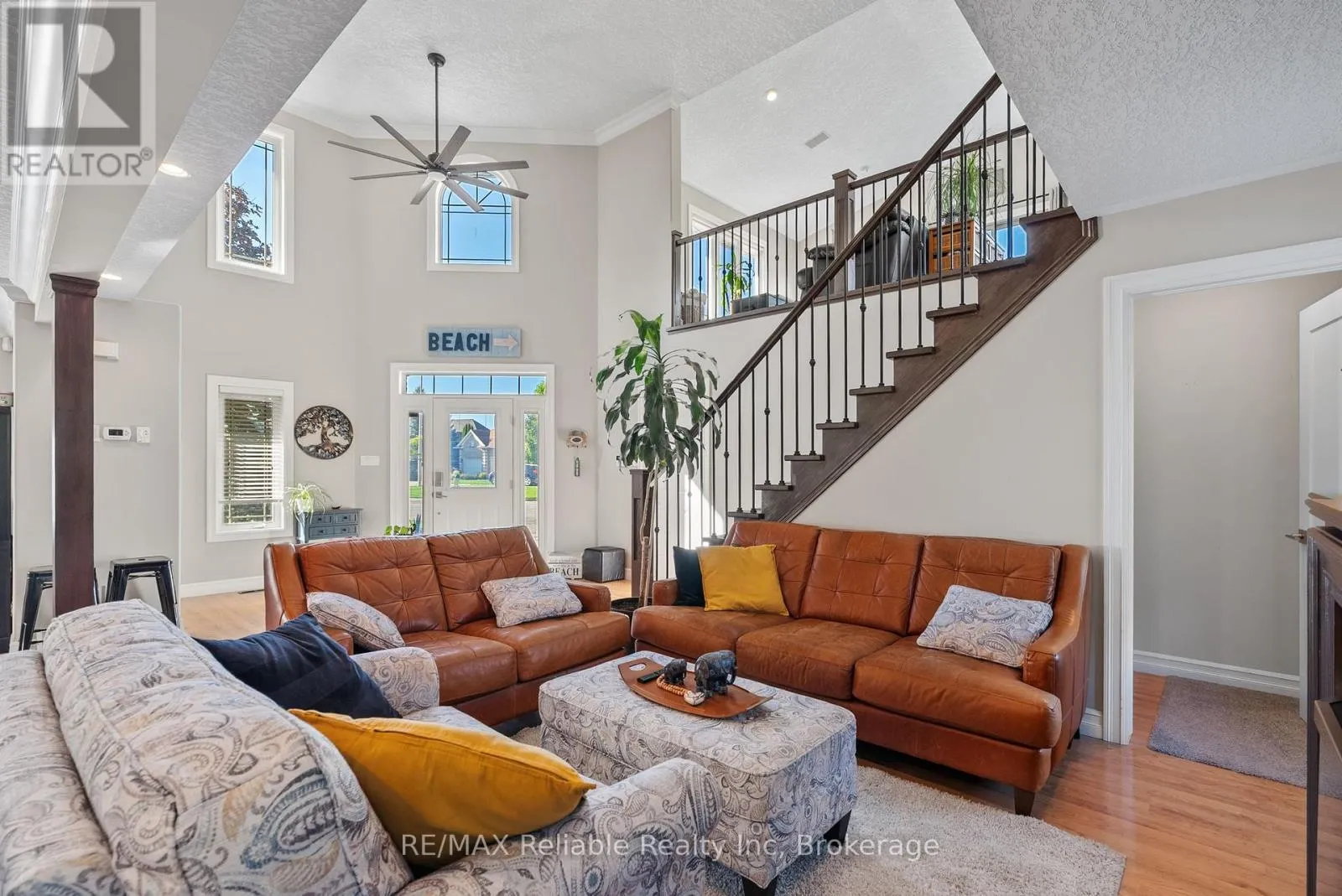 Cross Streets: Jowetts Grove Road. ** Directions: From Bluewater Hwy, take Jowetts Grove road to the west and at the top of the hill, turn left onto Harbour Court and follow it to the end. Spectacular Lakeside Living in Bayfield! Nestled at the end of a quiet cul-de-sac in one of Bayfield's most desirable neighborhoods, this stunning home offers the perfect blend of space, comfort, and lakeside charm. Perched above the Marina and North Side Beach, with deeded access, the huge sandy beach is just a 3-minute stroll away to the clear waters of Lake Huron, get your paddle boards and kayaks ready, and your beach blanket too, this property is all about lifestyle. Inside, you'll find open-concept living with soaring ceilings, a main floor primary bedroom with ensuite, and a bright, airy loft that leads to a private upper deck perfect for soaking in Lake Hurons legendary sunsets. The second floor offers two additional bedrooms and bathroom, while the beautifully finished lower level adds a spacious rec room plus two more bedrooms ideal for hosting family and friends. Step outside to an ample landscaped backyard complete with a newer shed, a relaxing hot tub, and a large back deck with outdoor fireplace/pizza oven designed for entertaining. Love to boat or sail? The Marina is just steps away, offering easy access to the sparkling blue waters of Lake Huron. Prefer to stay on shore? Main Street Bayfield's boutique shops, galleries, restaurants and parks are a short walk from your door. With fibre optic internet, working from home has never been easier so you can balance business with the pleasures of living in one of Ontario's most enchanting lakeside villages. If you're ready for a relaxed lifestyle, a welcoming community, and a home designed for both gathering and unwinding, this is the one you've been waiting for. Recent updates include kitchen countertops, newer bathroom vanities, lower bathroom shower, newer Moen water fixtures throughout, new black metal fencing, extended back deck, outdoor fireplace/pizza oven. Please check it out soon and start living the dream! Be sure to watch the VIDEO link below to see beautiful home & beach! (id:27476)