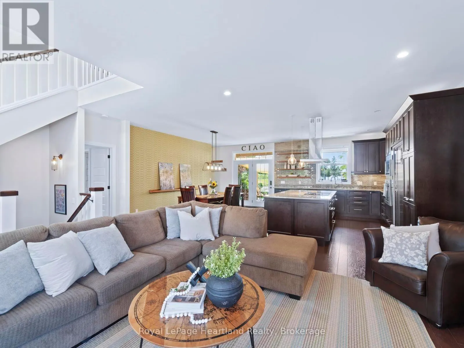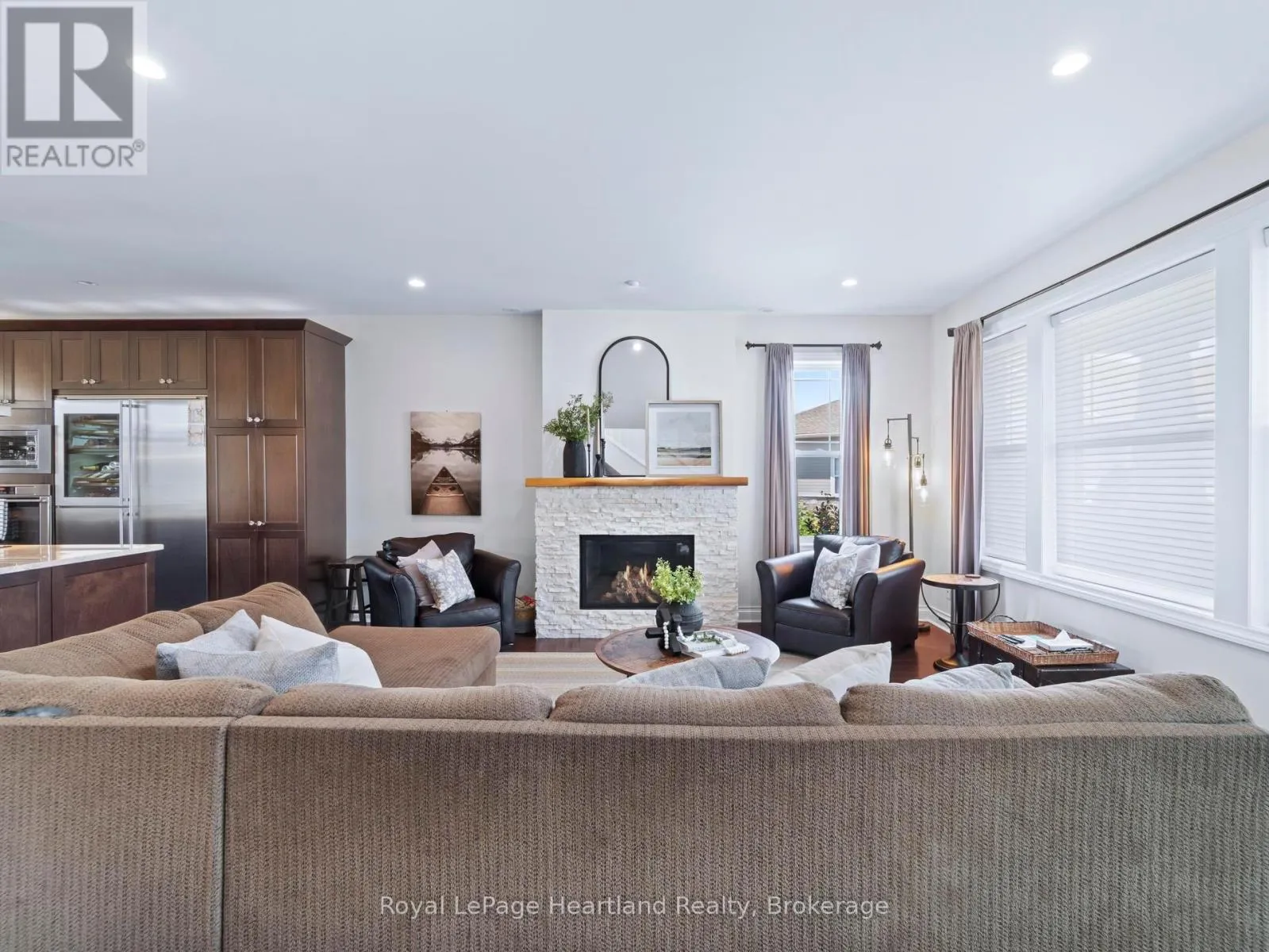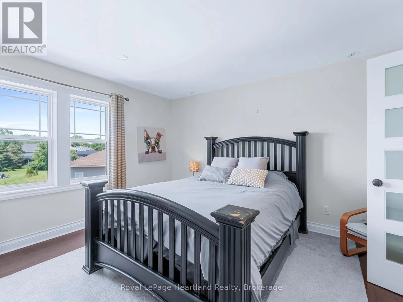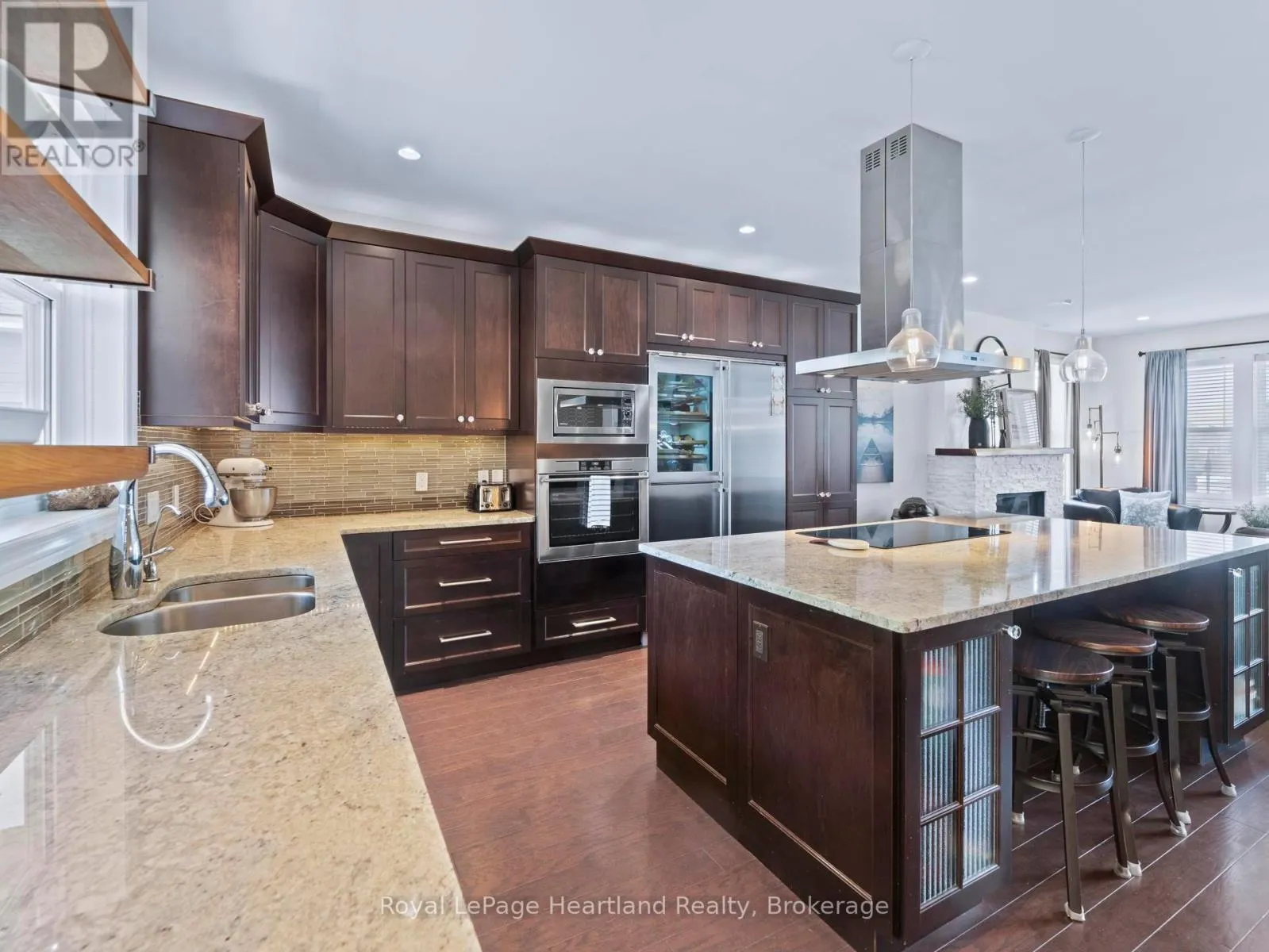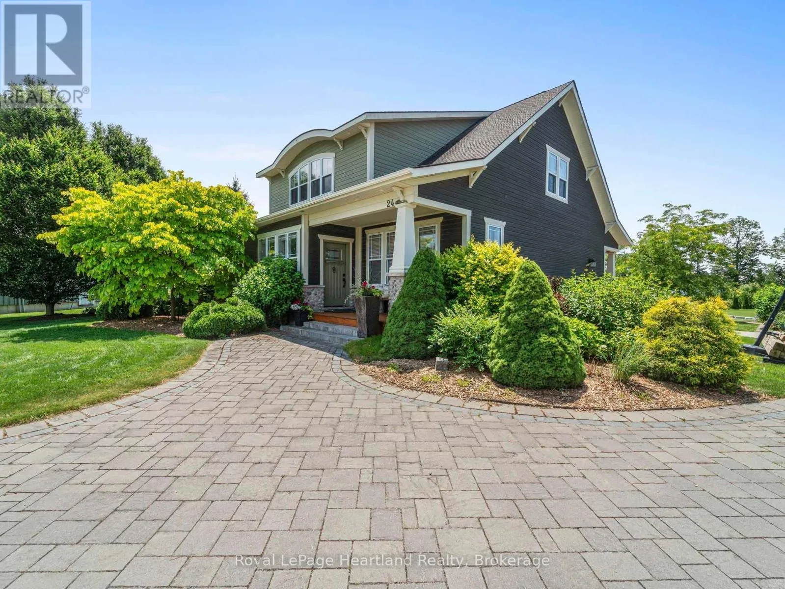 Cross Streets: Bluewater Highway to Cameron. Turn left onto Lidderdale. Turn right onto Thimbleweed. ** Directions: Bluewater Highway to Cameron. Turn left onto Lidderdale. Turn right onto Thimbleweed. Watch for sign. 24 Thimbleweed Drive- a stunning custom-built 4 bed, 4 bath home in one of Bayfield's most prestigious lakeside neighbourhoods. Just steps from Lake Hurons sandy beaches and a short stroll to the village core, this exceptional residence offers over 3,000 sq ft of finished living space, a rare heated 4-car garage with 12' ceilings and car hoist, and premium finishes throughout. Inside, enjoy a sunlit open-concept layout with a chefs kitchen featuring granite countertops, stainless appliances, and custom cabinetry. The elegant great room flows to the expansive deck, while the luxurious main floor primary suite offers a spa-inspired ensuite and walk-in closet with built-ins. The beautiful staircase leads to the second level with two spacious bedrooms and a 4 piece spa like bathroom. The fully finished lower level is a showstopper featuring radiant in-floor heating, a second full kitchen, large rec room, an additional bedroom, a stylish bath, and spacious laundry room with granite counters and storage galore. Outdoors, entertain or unwind in your private hot tub, around the built-in fireplace, or on the oversized deck with sweeping views of open countryside and lake horizon. Professionally landscaped with full irrigation, this home delivers tranquility and wow factor in equal measure.A rare opportunity to own one of Bayfield's finest homes offering luxury, functionality, and an unbeatable location. This is lakeside living at its best! (id:27476)