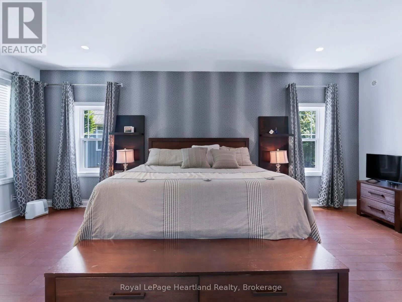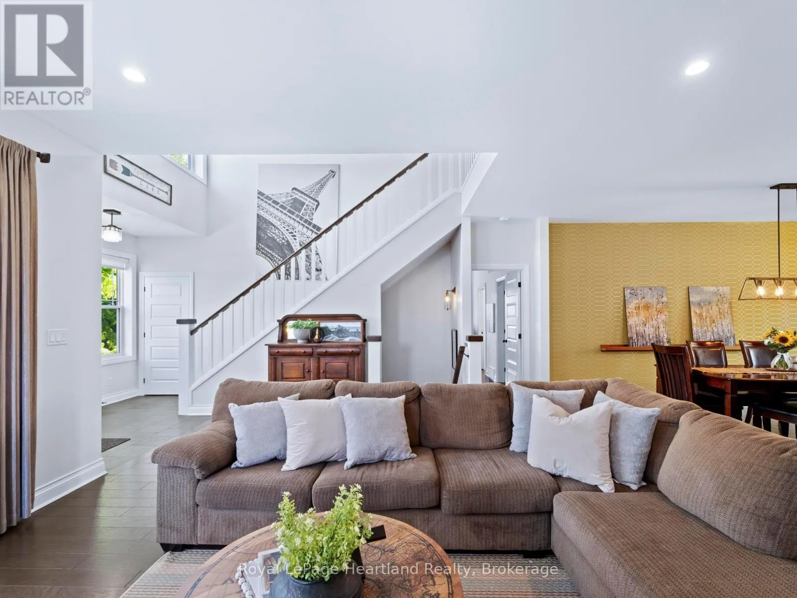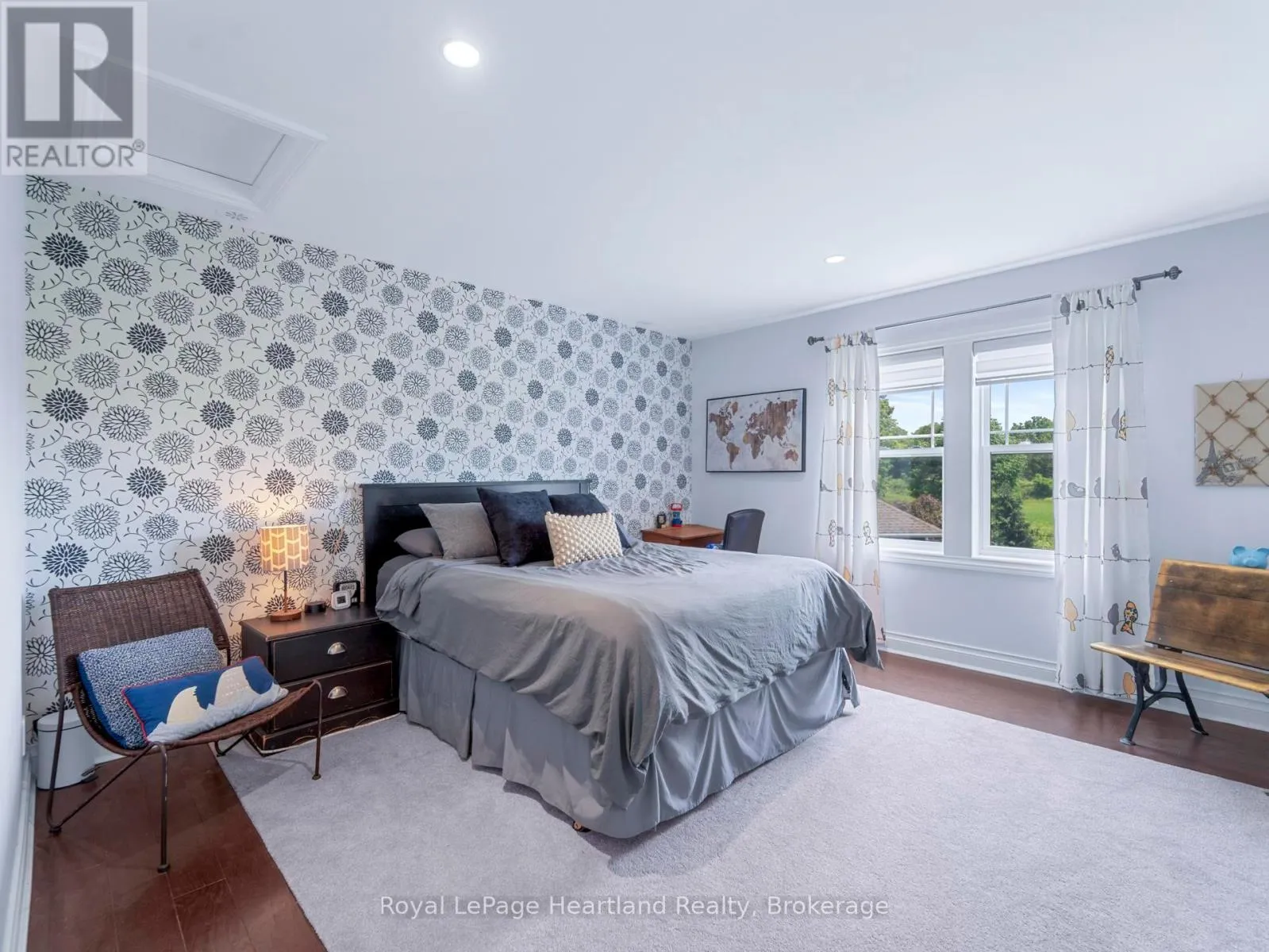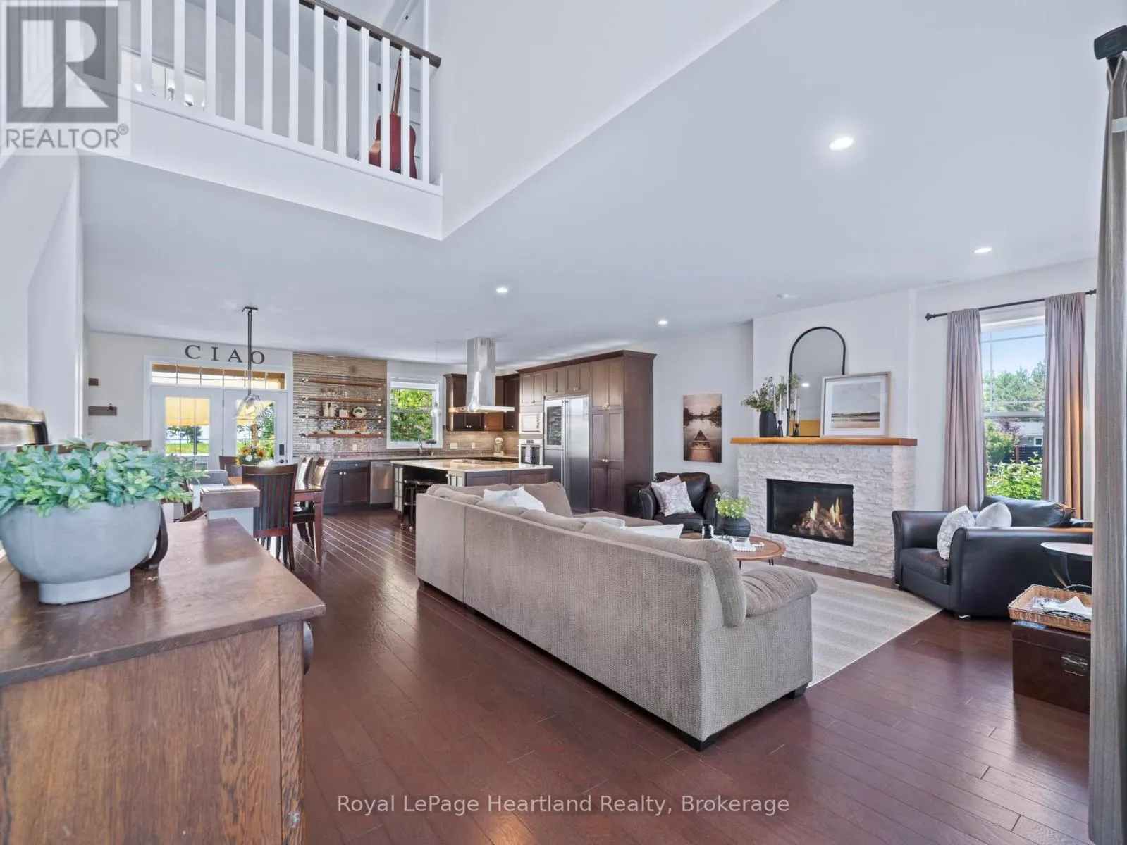 Cross Streets: Bluewater Highway to Cameron. Turn left onto Lidderdale. Turn right onto Thimbleweed. ** Directions: Bluewater Highway to Cameron. Turn left onto Lidderdale. Turn right onto Thimbleweed. Watch for sign. 24 Thimbleweed Drive- a stunning custom-built 4 bed, 4 bath home in one of Bayfield's most prestigious lakeside neighbourhoods. Just steps from Lake Hurons sandy beaches and a short stroll to the village core, this exceptional residence offers over 3,000 sq ft of finished living space, a rare heated 4-car garage with 12' ceilings and car hoist, and premium finishes throughout. Inside, enjoy a sunlit open-concept layout with a chefs kitchen featuring granite countertops, stainless appliances, and custom cabinetry. The elegant great room flows to the expansive deck, while the luxurious main floor primary suite offers a spa-inspired ensuite and walk-in closet with built-ins. The beautiful staircase leads to the second level with two spacious bedrooms and a 4 piece spa like bathroom. The fully finished lower level is a showstopper featuring radiant in-floor heating, a second full kitchen, large rec room, an additional bedroom, a stylish bath, and spacious laundry room with granite counters and storage galore. Outdoors, entertain or unwind in your private hot tub, around the built-in fireplace, or on the oversized deck with sweeping views of open countryside and lake horizon. Professionally landscaped with full irrigation, this home delivers tranquility and wow factor in equal measure.A rare opportunity to own one of Bayfield's finest homes offering luxury, functionality, and an unbeatable location. This is lakeside living at its best! (id:27476)