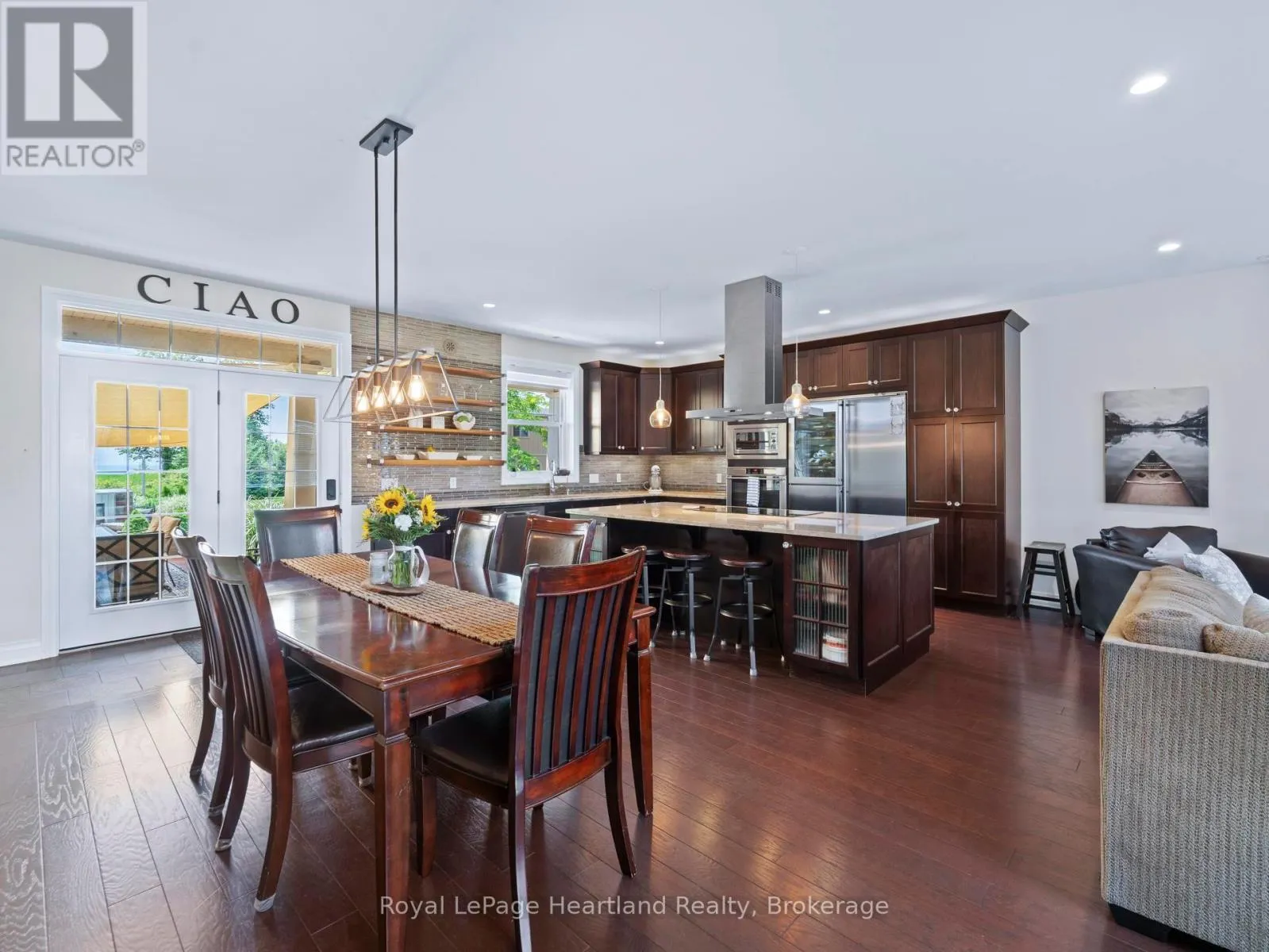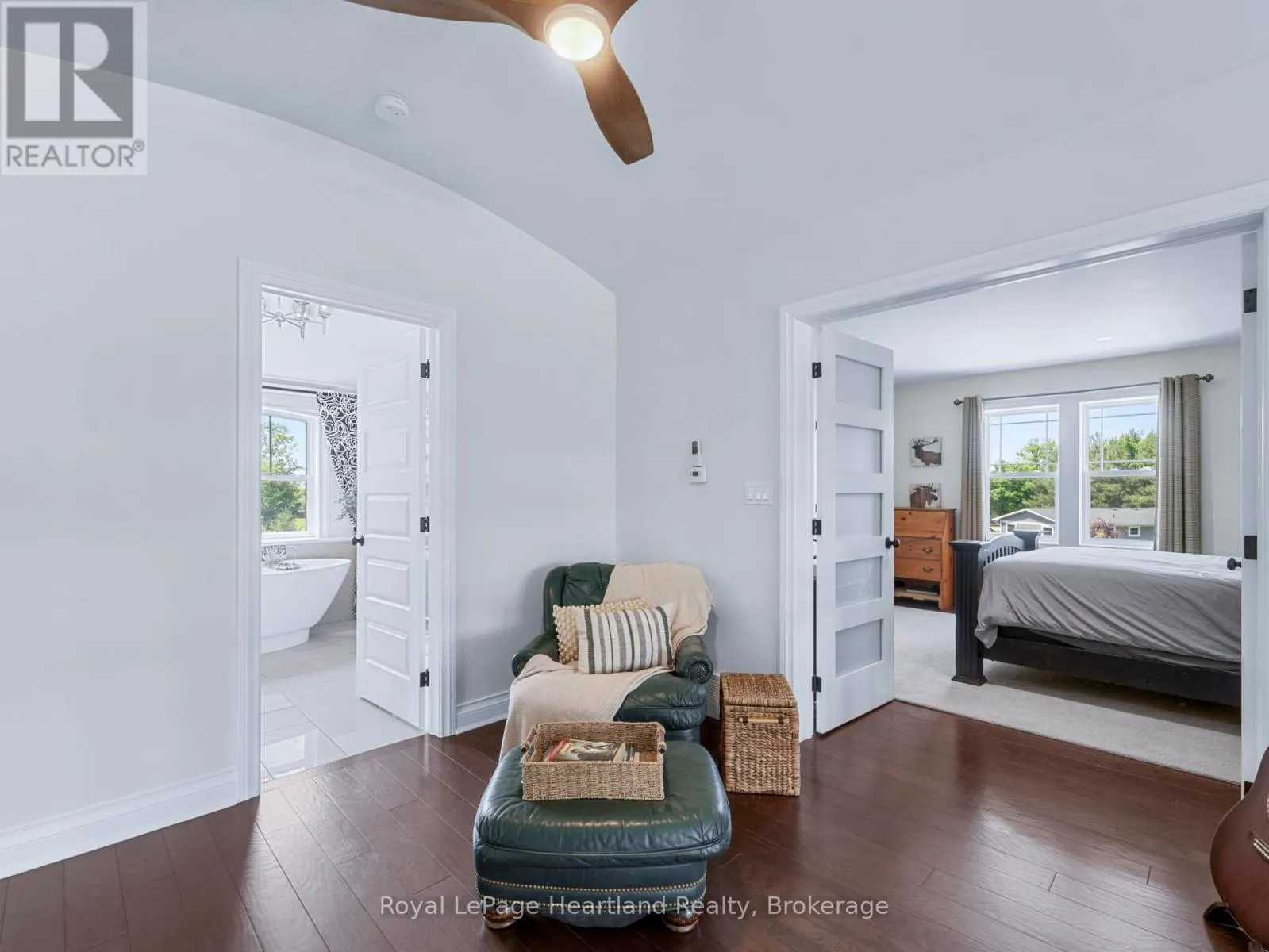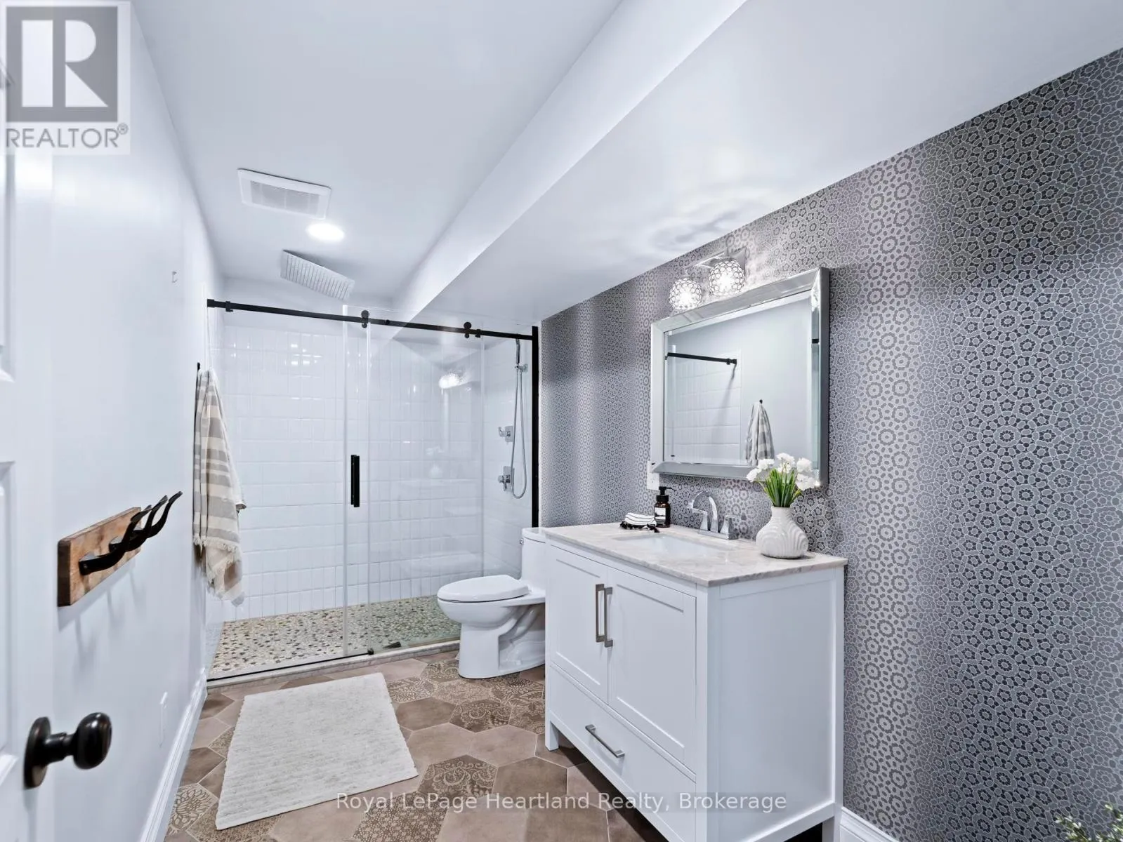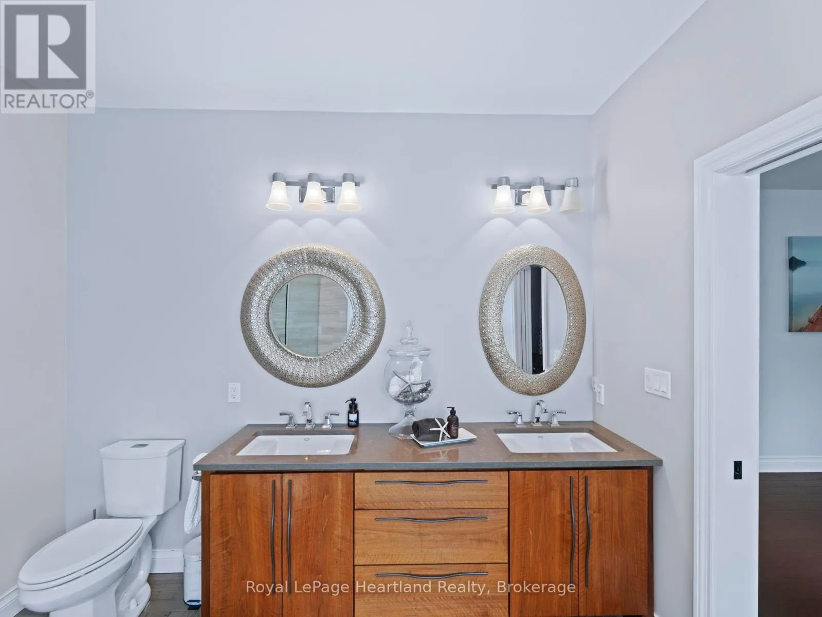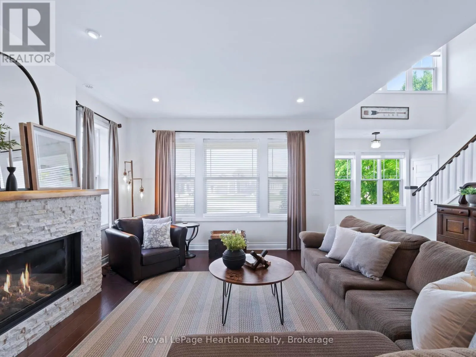Cross Streets: Bluewater Highway to Cameron. Turn left onto Lidderdale. Turn right onto Thimbleweed. ** Directions: Bluewater Highway to Cameron. Turn left onto Lidderdale. Turn right onto Thimbleweed. Watch for sign. 24 Thimbleweed Drive- a stunning custom-built 4 bed, 4 bath home in one of Bayfield's most prestigious lakeside neighbourhoods. Just steps from Lake Hurons sandy beaches and a short stroll to the village core, this exceptional residence offers over 3,000 sq ft of finished living space, a rare heated 4-car garage with 12' ceilings and car hoist, and premium finishes throughout. Inside, enjoy a sunlit open-concept layout with a chefs kitchen featuring granite countertops, stainless appliances, and custom cabinetry. The elegant great room flows to the expansive deck, while the luxurious main floor primary suite offers a spa-inspired ensuite and walk-in closet with built-ins. The beautiful staircase leads to the second level with two spacious bedrooms and a 4 piece spa like bathroom. The fully finished lower level is a showstopper featuring radiant in-floor heating, a second full kitchen, large rec room, an additional bedroom, a stylish bath, and spacious laundry room with granite counters and storage galore. Outdoors, entertain or unwind in your private hot tub, around the built-in fireplace, or on the oversized deck with sweeping views of open countryside and lake horizon. Professionally landscaped with full irrigation, this home delivers tranquility and wow factor in equal measure.A rare opportunity to own one of Bayfield's finest homes offering luxury, functionality, and an unbeatable location. This is lakeside living at its best! (id:27476)