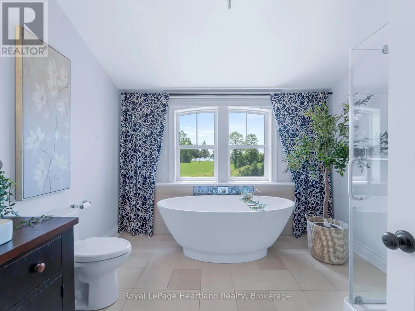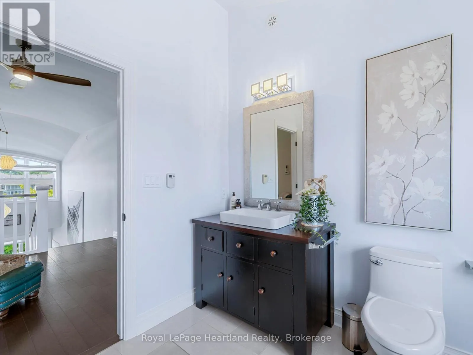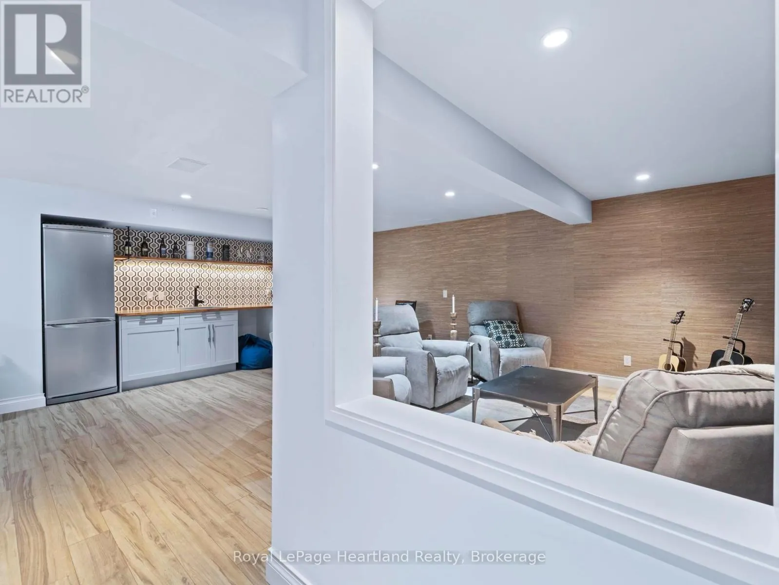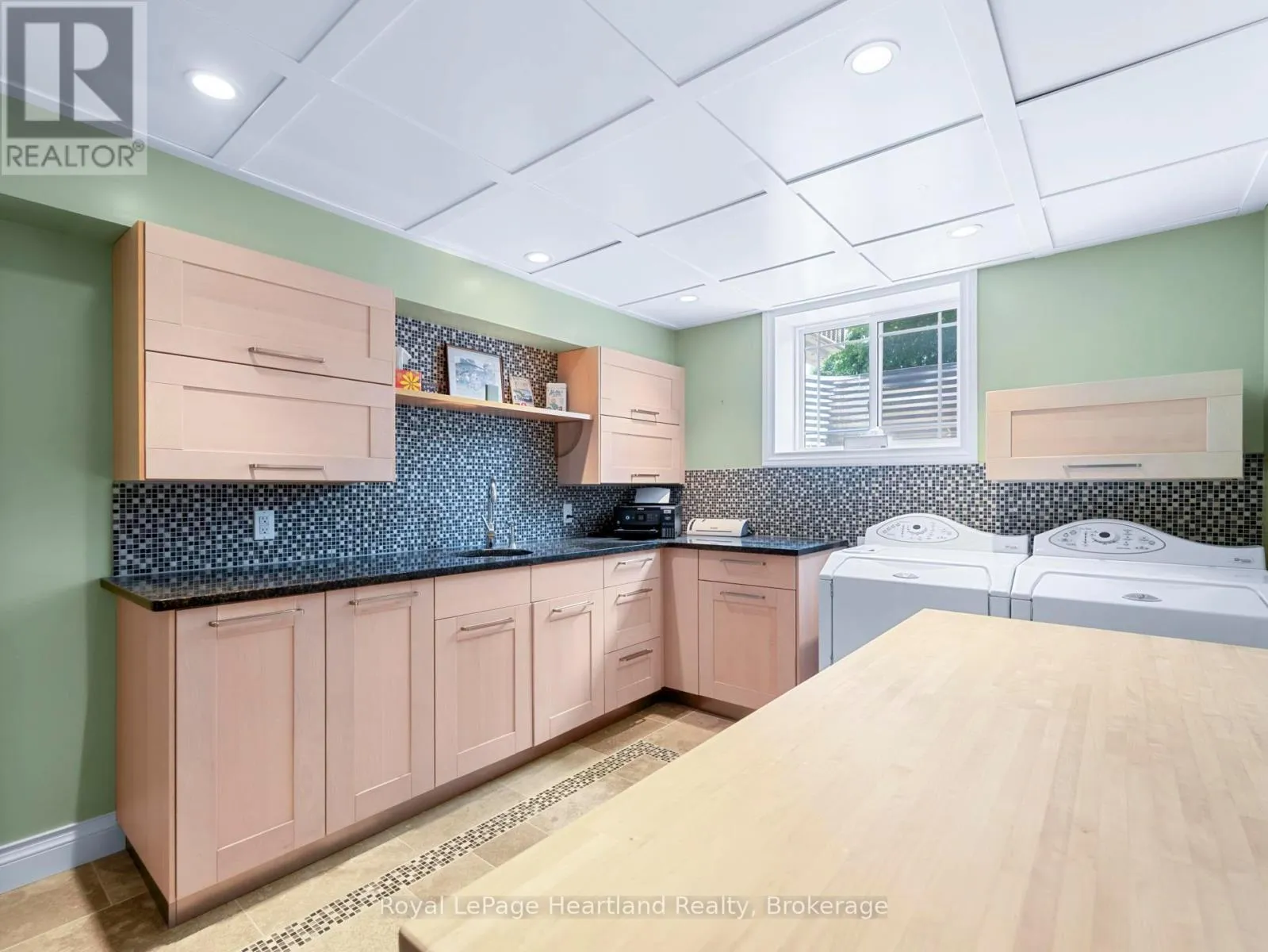 Cross Streets: Bluewater Highway to Cameron. Turn left onto Lidderdale. Turn right onto Thimbleweed. ** Directions: Bluewater Highway to Cameron. Turn left onto Lidderdale. Turn right onto Thimbleweed. Watch for sign. 24 Thimbleweed Drive- a stunning custom-built 4 bed, 4 bath home in one of Bayfield's most prestigious lakeside neighbourhoods. Just steps from Lake Hurons sandy beaches and a short stroll to the village core, this exceptional residence offers over 3,000 sq ft of finished living space, a rare heated 4-car garage with 12' ceilings and car hoist, and premium finishes throughout. Inside, enjoy a sunlit open-concept layout with a chefs kitchen featuring granite countertops, stainless appliances, and custom cabinetry. The elegant great room flows to the expansive deck, while the luxurious main floor primary suite offers a spa-inspired ensuite and walk-in closet with built-ins. The beautiful staircase leads to the second level with two spacious bedrooms and a 4 piece spa like bathroom. The fully finished lower level is a showstopper featuring radiant in-floor heating, a second full kitchen, large rec room, an additional bedroom, a stylish bath, and spacious laundry room with granite counters and storage galore. Outdoors, entertain or unwind in your private hot tub, around the built-in fireplace, or on the oversized deck with sweeping views of open countryside and lake horizon. Professionally landscaped with full irrigation, this home delivers tranquility and wow factor in equal measure.A rare opportunity to own one of Bayfield's finest homes offering luxury, functionality, and an unbeatable location. This is lakeside living at its best! (id:27476)