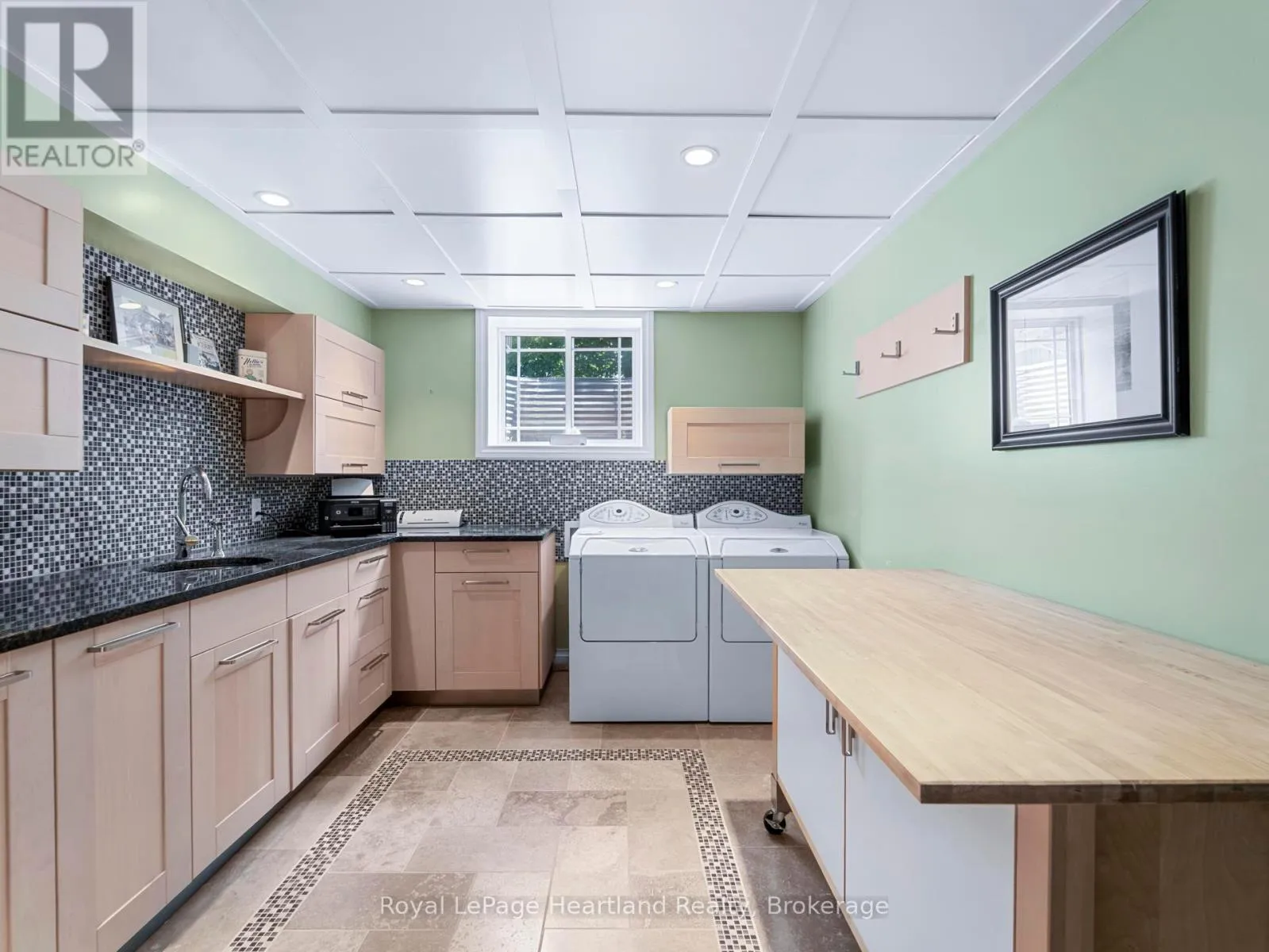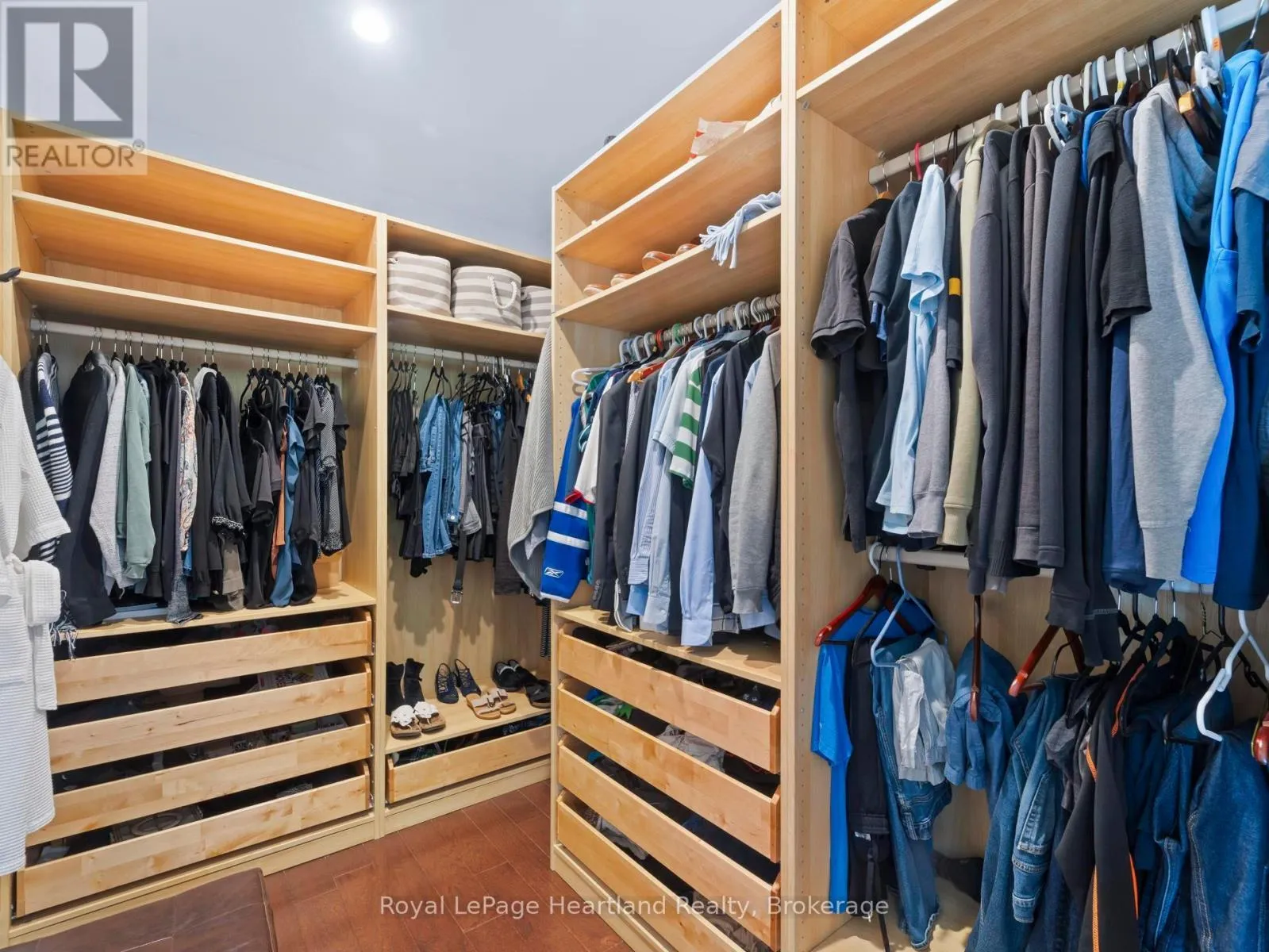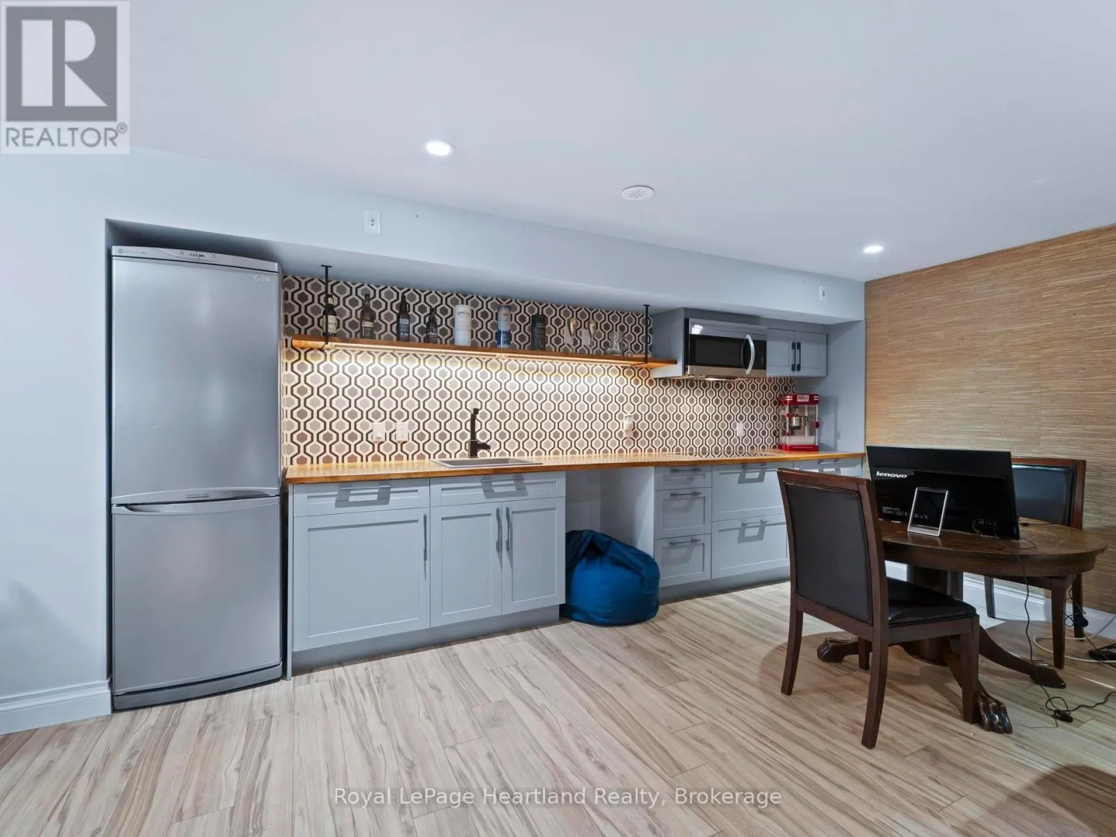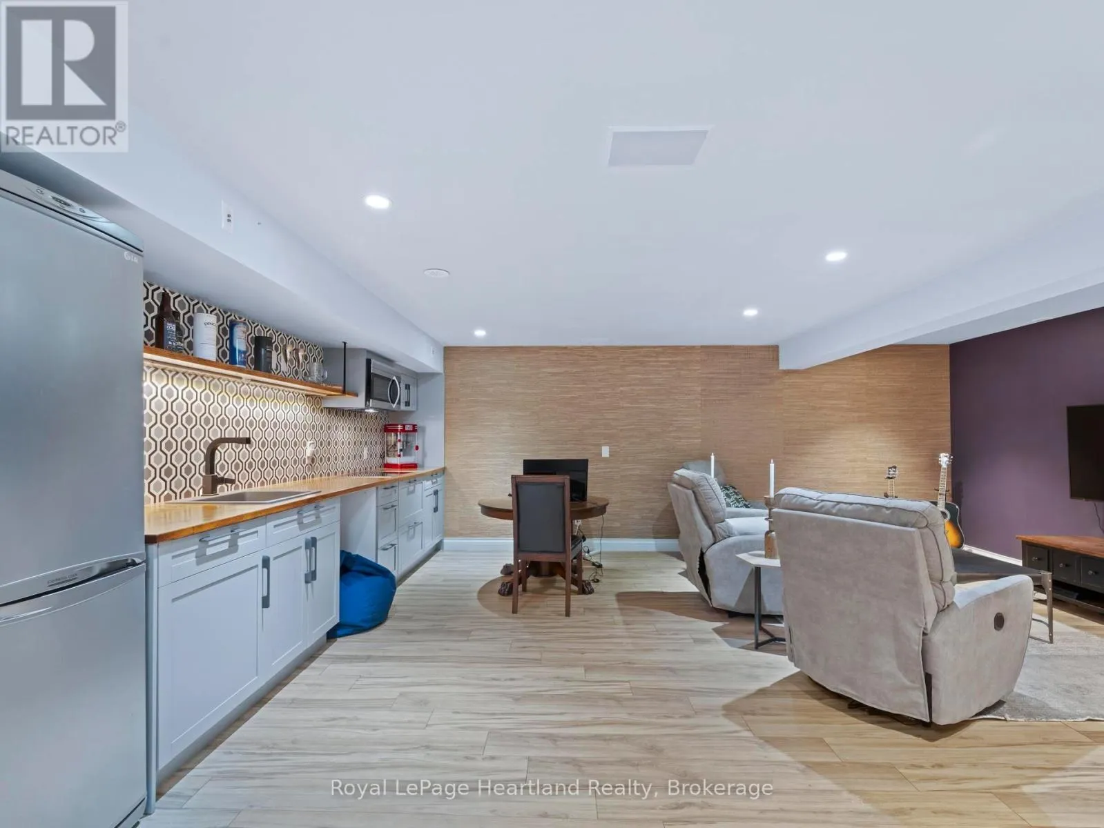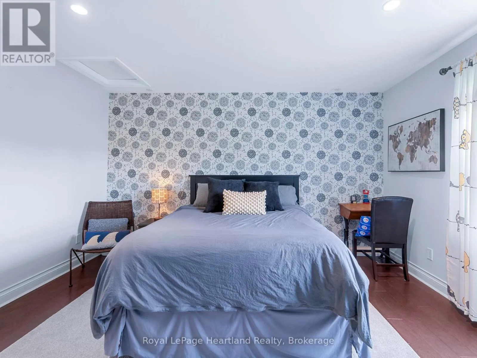 Cross Streets: Bluewater Highway to Cameron. Turn left onto Lidderdale. Turn right onto Thimbleweed. ** Directions: Bluewater Highway to Cameron. Turn left onto Lidderdale. Turn right onto Thimbleweed. Watch for sign. 24 Thimbleweed Drive- a stunning custom-built 4 bed, 4 bath home in one of Bayfield's most prestigious lakeside neighbourhoods. Just steps from Lake Hurons sandy beaches and a short stroll to the village core, this exceptional residence offers over 3,000 sq ft of finished living space, a rare heated 4-car garage with 12' ceilings and car hoist, and premium finishes throughout. Inside, enjoy a sunlit open-concept layout with a chefs kitchen featuring granite countertops, stainless appliances, and custom cabinetry. The elegant great room flows to the expansive deck, while the luxurious main floor primary suite offers a spa-inspired ensuite and walk-in closet with built-ins. The beautiful staircase leads to the second level with two spacious bedrooms and a 4 piece spa like bathroom. The fully finished lower level is a showstopper featuring radiant in-floor heating, a second full kitchen, large rec room, an additional bedroom, a stylish bath, and spacious laundry room with granite counters and storage galore. Outdoors, entertain or unwind in your private hot tub, around the built-in fireplace, or on the oversized deck with sweeping views of open countryside and lake horizon. Professionally landscaped with full irrigation, this home delivers tranquility and wow factor in equal measure.A rare opportunity to own one of Bayfield's finest homes offering luxury, functionality, and an unbeatable location. This is lakeside living at its best! (id:27476)