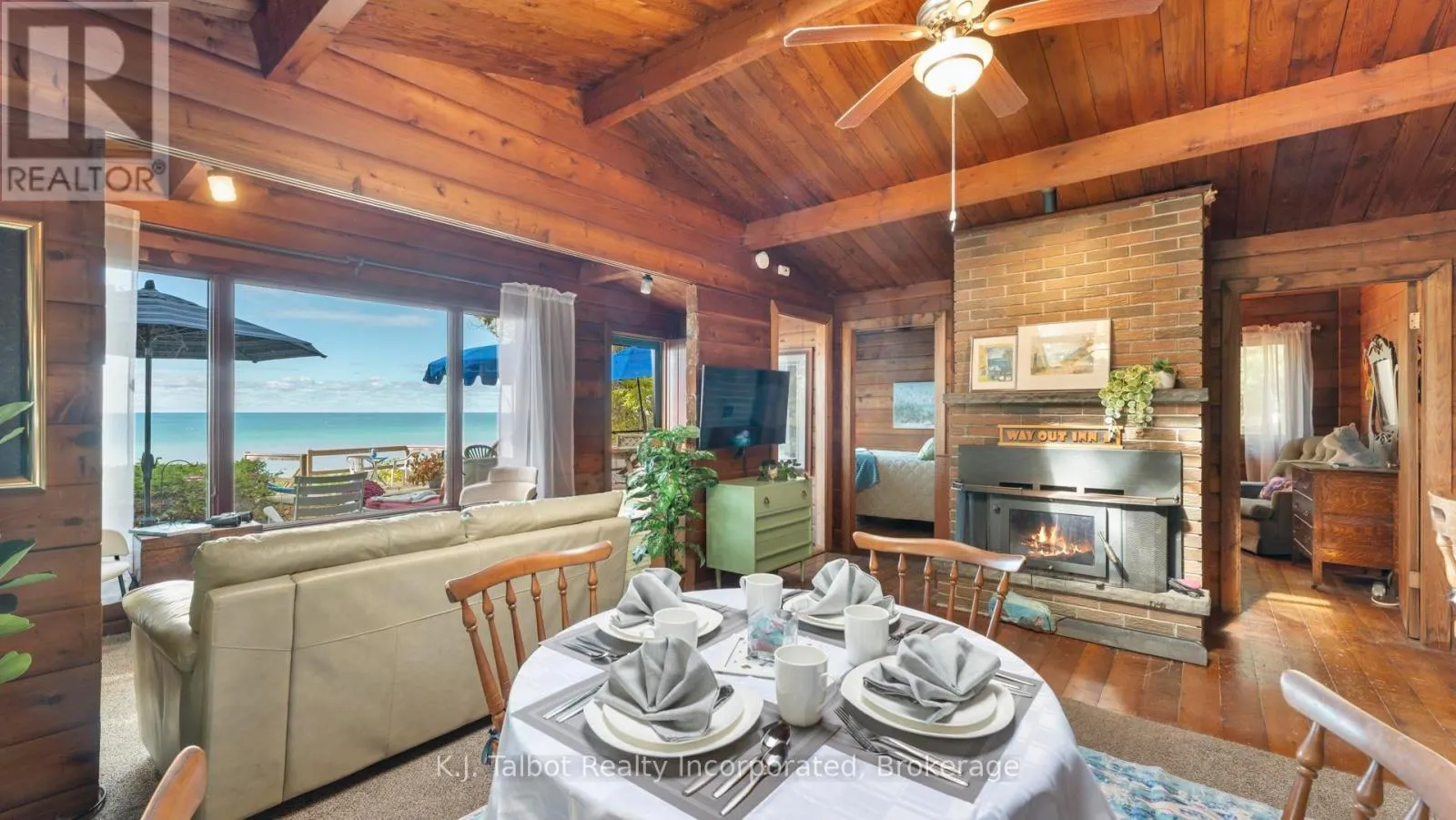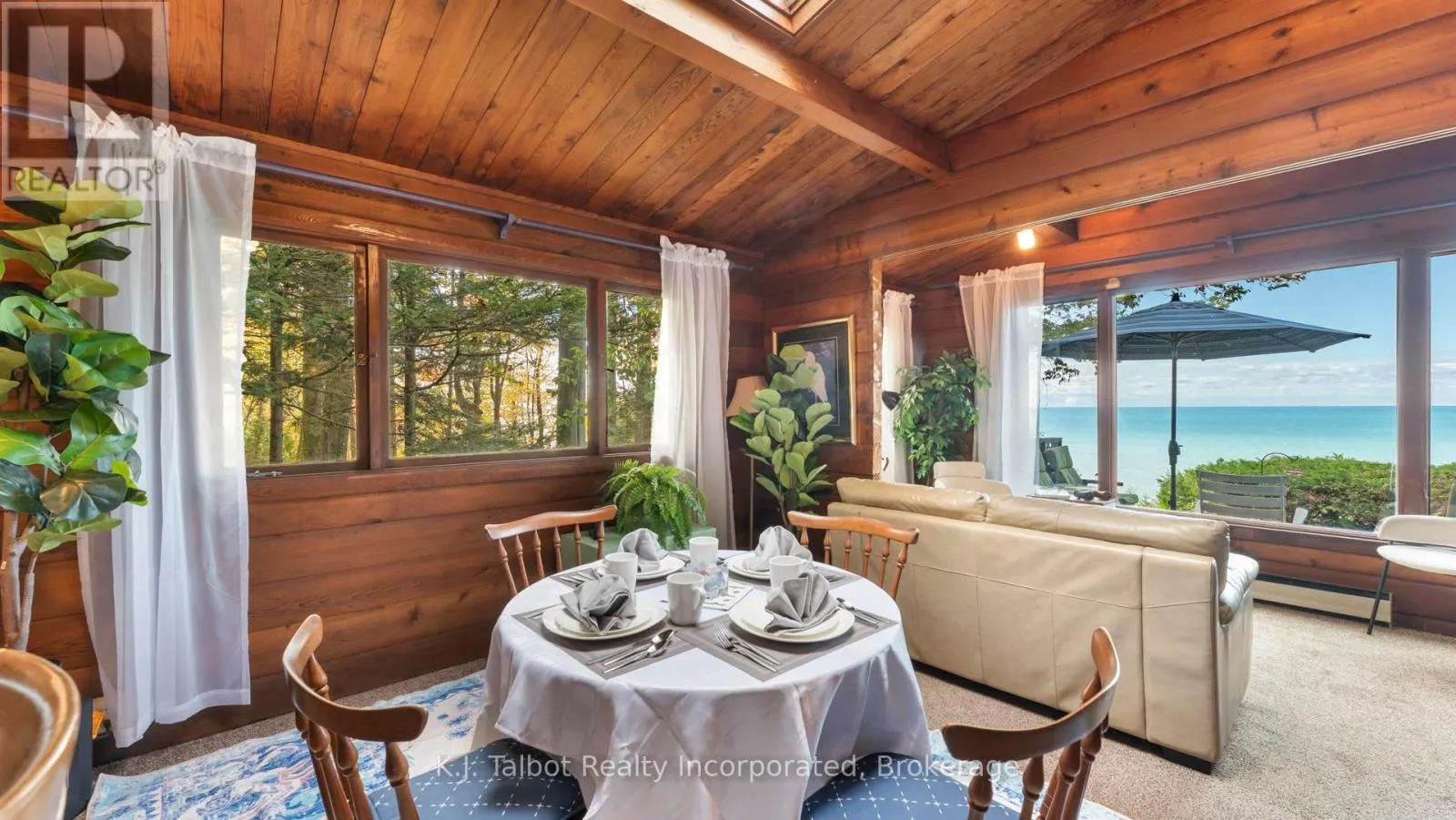 Cross Streets: Highway 21 & Centennial Rd. ** Directions: From Hwy #21 turn west on Centennial Rd. right onto Woodland Drive - look for sign on the left (west side). Welcome to paradise!! This cozy cottage has a magnificent view of Lake Huron and it's world renowned sunsets. This 3 bedroom charmer has entertained and embraced the current owners for over 45 years, but it's time for a new family & new memories to to be realized by it's warm and heartfelt hug. 3 fresh & airy bedrooms with the warmth of cedar & pine . An open concept kitchen/living room and a 3 pc bath. A fireplace will cast a toasty glow on a cool evening. From walking up the tree lined drive to the inviting front door it just feels good. Open the door and saunter in and the first thing you see is a brilliant wave of deep blue water meeting the horizon of light blue skies and puffy white clouds, it's the stuff dreams are made of. You don't need to be big to be fabulous and this cottage only emphasizes that. The large lakeside deck extends the living space in the warm months and give you that breath taking view - private steps lead to a wonderfully deep sandy beach. White drapes frame the windows and enhance the rich jewel colors mother nature proudly displays. Close your eyes and listen to the whisper of the lake and and breeze through the trees and the promise of tantalizing events to be shared. This little jewel is incredibly private with a forest like feel your own Oasis that most can only dream about awaits your arrival. (id:27476)