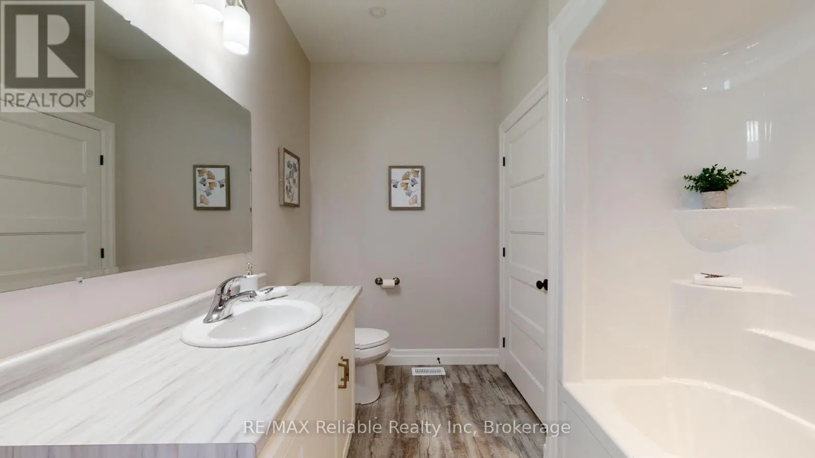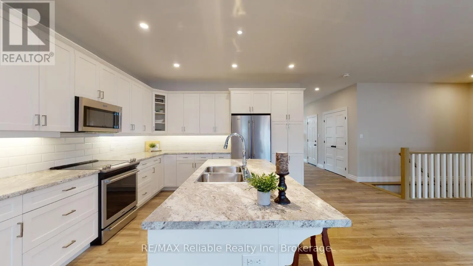 Cross Streets: Lidderdale and Cameron. ** Directions: Bluewater Hwy to Cameron Street. Turn left onto Lidderdale. Turn right onto Thimbleweed. Built in 2020, this spacious and bright end-unit townhome in Bayfield Meadows offers comfort, convenience, and modern style. The main floor (1,458 sq. ft.) features an open-concept kitchen, dining, and living area with a cozy gas fireplace, a large primary suite with ensuite and walk-in closet, a second bedroom, 4-piece bathroom, and laundry. Finishes include easy-care vinyl plank flooring throughout, bright white kitchen cabinetry with a large island, craftsman-style doors and trim, and fresh neutral paint colours.The lower level includes a fully finished bedroom and 4-piece bathroom, along with a huge unfinished rec room ready for your personal touch. Added features include hook-up for an electric car making this home future-ready .Enjoy the convenience of a 2-car garage, concrete driveway, and a fantastic in-town location just a block from Lake Huron and a short walk to Bayfield Main Street. Monthly Neighbourhood Association fees of $125 cover lawn cutting, driveway snow removal, and future roof replacement, giving you easy-care living all year round. (id:27476)