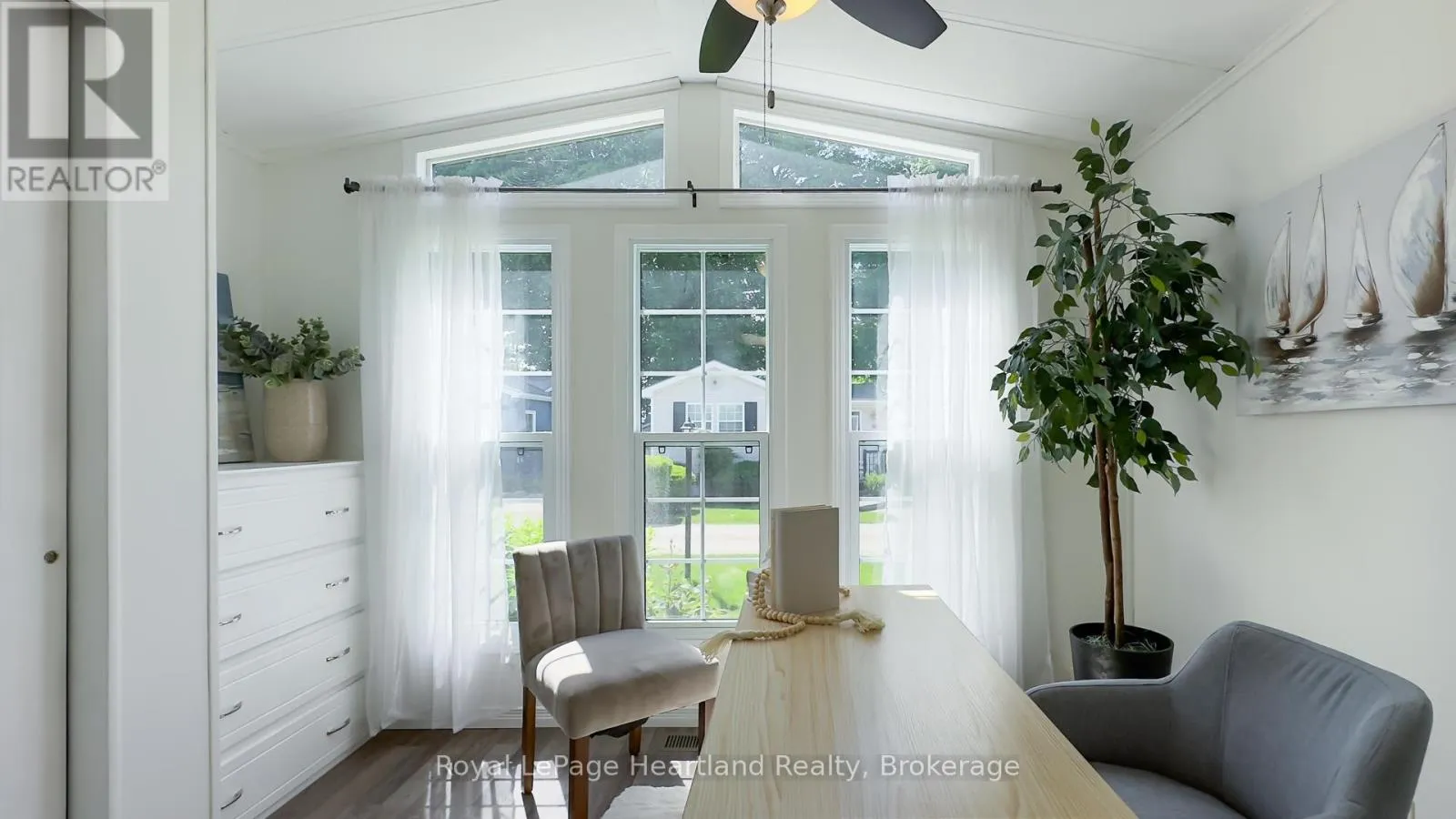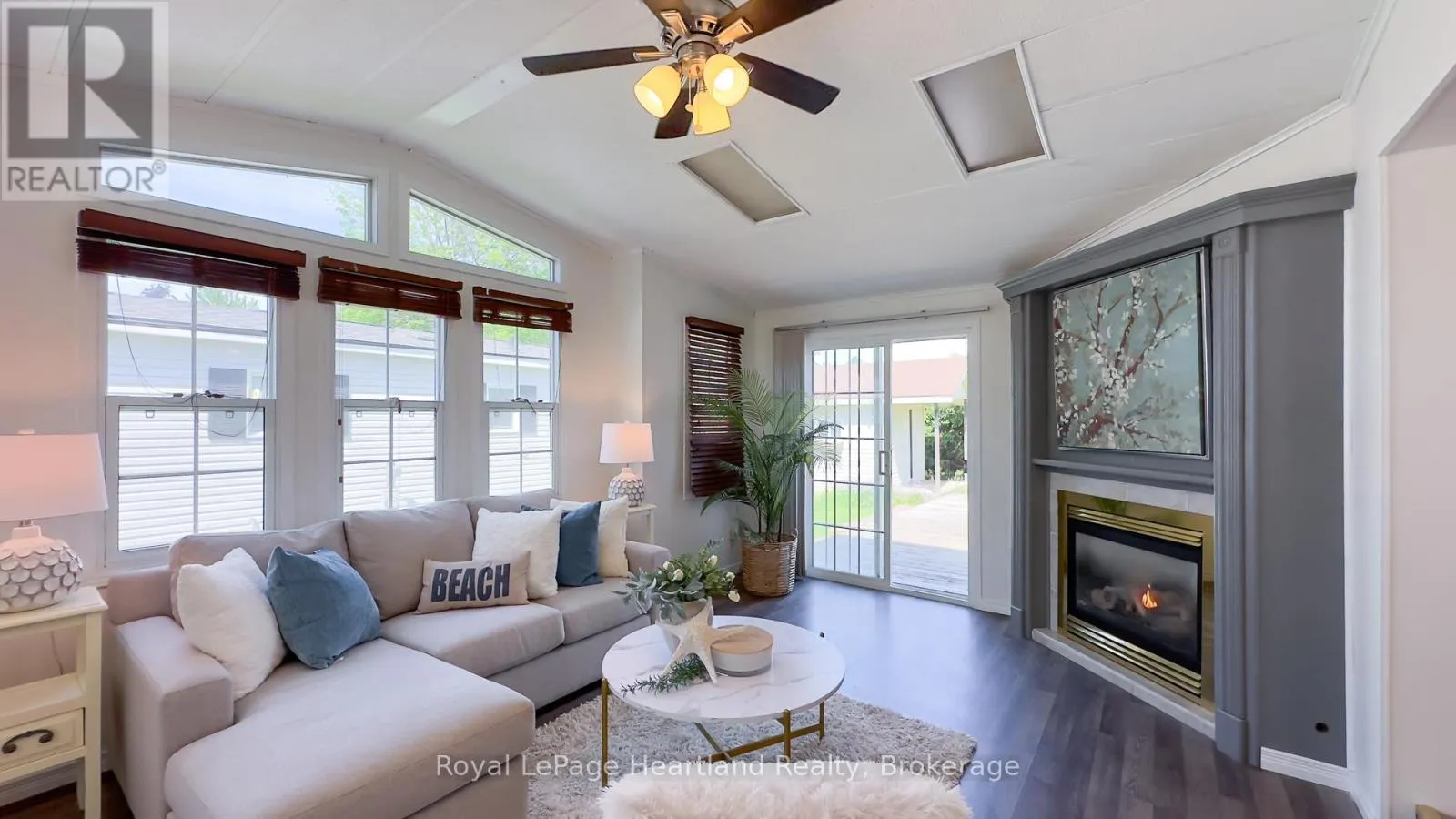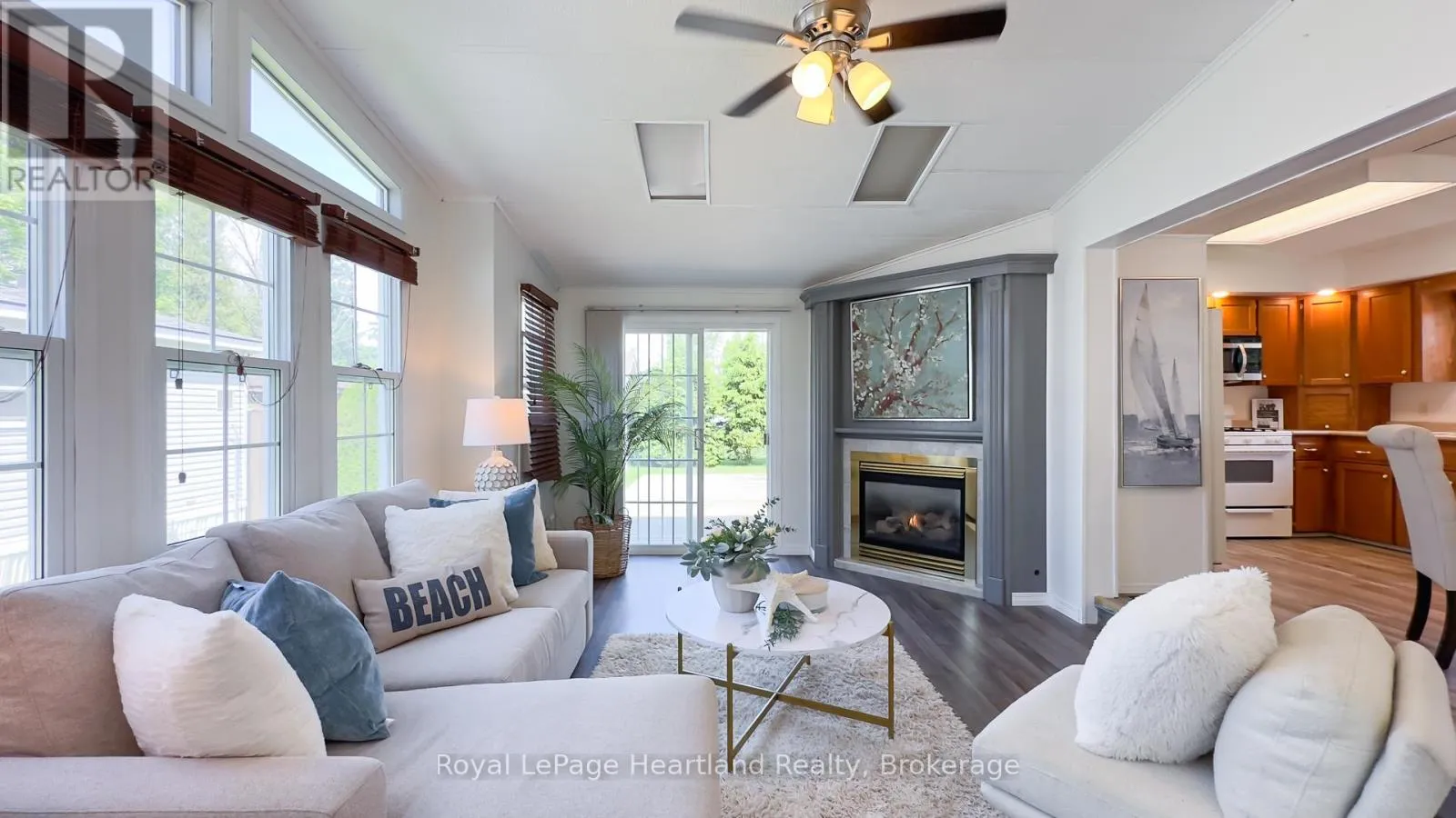 From the Entrance of the Park, follow the one-way street to Waters Edge and turn Left, property is on the left Live Free for a Year at Northwood Beach Resort! That's right - buy 49 Waters Edge and enjoy ONE FULL YEAR of RENT FREE LIVING! That's 12 months of keeping your money for travel, family, or simply enjoying life by the lake. Nestled in the sought-after Northwood Beach Resort on the scenic shores of Lake Huron and just minutes from Bayfield, this charming Northlander model offers comfort and flexibility - featuring a cozy living room with gas fireplace, spacious eat-in kitchen, and a versatile den that can double as a second bedroom or office. The community offers amenities including a newly renovated clubhouse, swimming pool, and breathtaking sunsets over Lake Huron right from your front porch. If you've been dreaming of a carefree lakeside lifestyle - with the bonus of living rent-free for your first year - this is your sign to make the move. 49 Waters Edge, Northwood Beach Resort - where your next chapter begins with freedom, comfort, and a view. (id:27476)