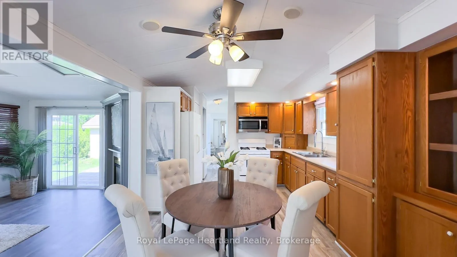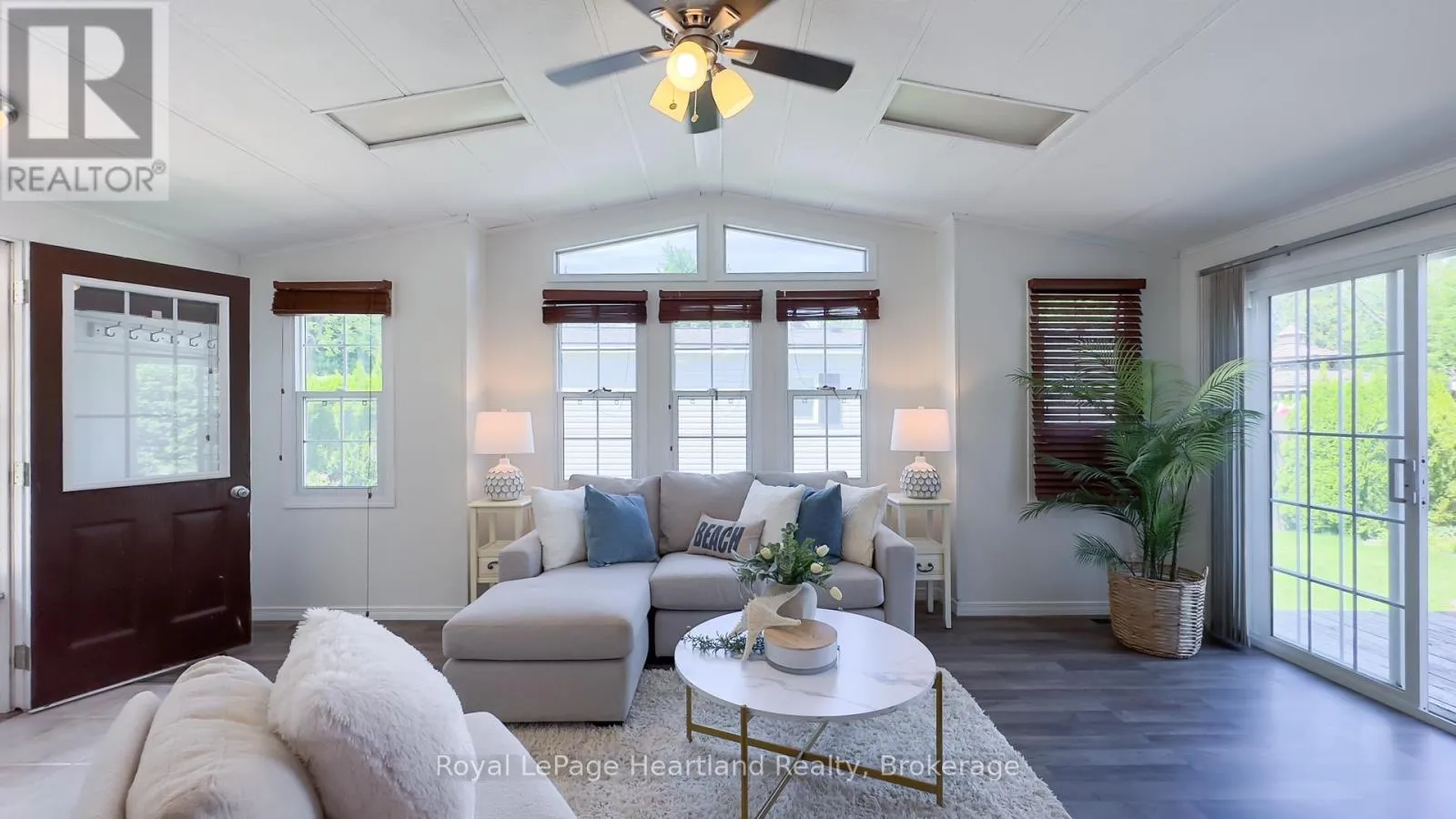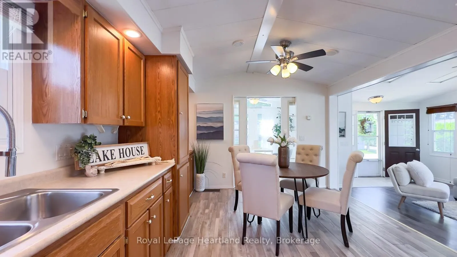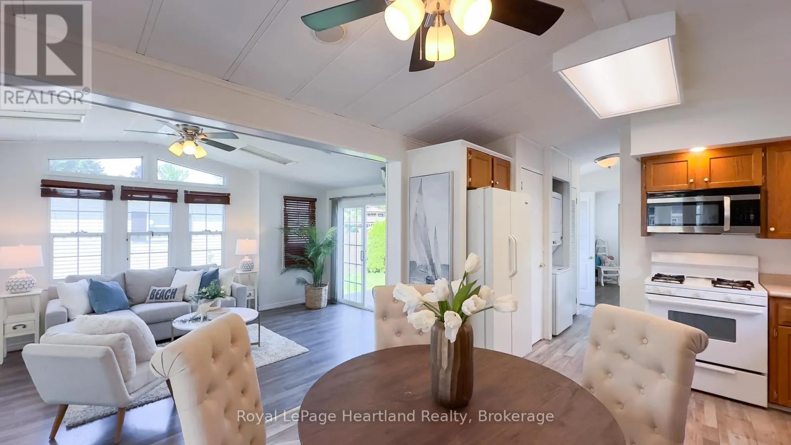 From the Entrance of the Park, follow the one-way street to Waters Edge and turn Left, property is on the left Live Free for a Year at Northwood Beach Resort! That's right - buy 49 Waters Edge and enjoy ONE FULL YEAR of RENT FREE LIVING! That's 12 months of keeping your money for travel, family, or simply enjoying life by the lake. Nestled in the sought-after Northwood Beach Resort on the scenic shores of Lake Huron and just minutes from Bayfield, this charming Northlander model offers comfort and flexibility - featuring a cozy living room with gas fireplace, spacious eat-in kitchen, and a versatile den that can double as a second bedroom or office. The community offers amenities including a newly renovated clubhouse, swimming pool, and breathtaking sunsets over Lake Huron right from your front porch. If you've been dreaming of a carefree lakeside lifestyle - with the bonus of living rent-free for your first year - this is your sign to make the move. 49 Waters Edge, Northwood Beach Resort - where your next chapter begins with freedom, comfort, and a view. (id:27476)