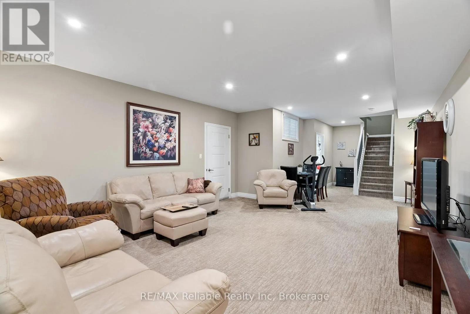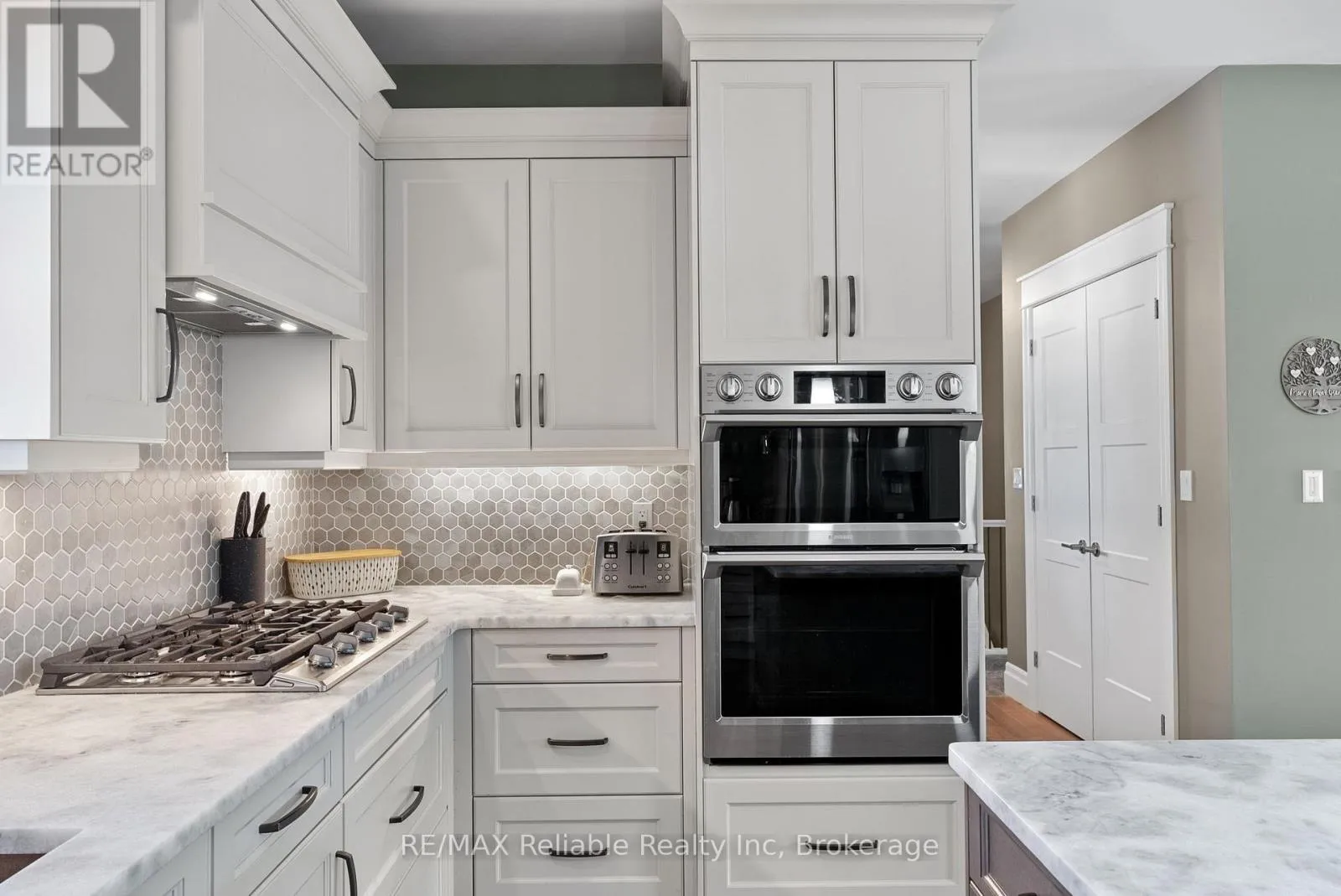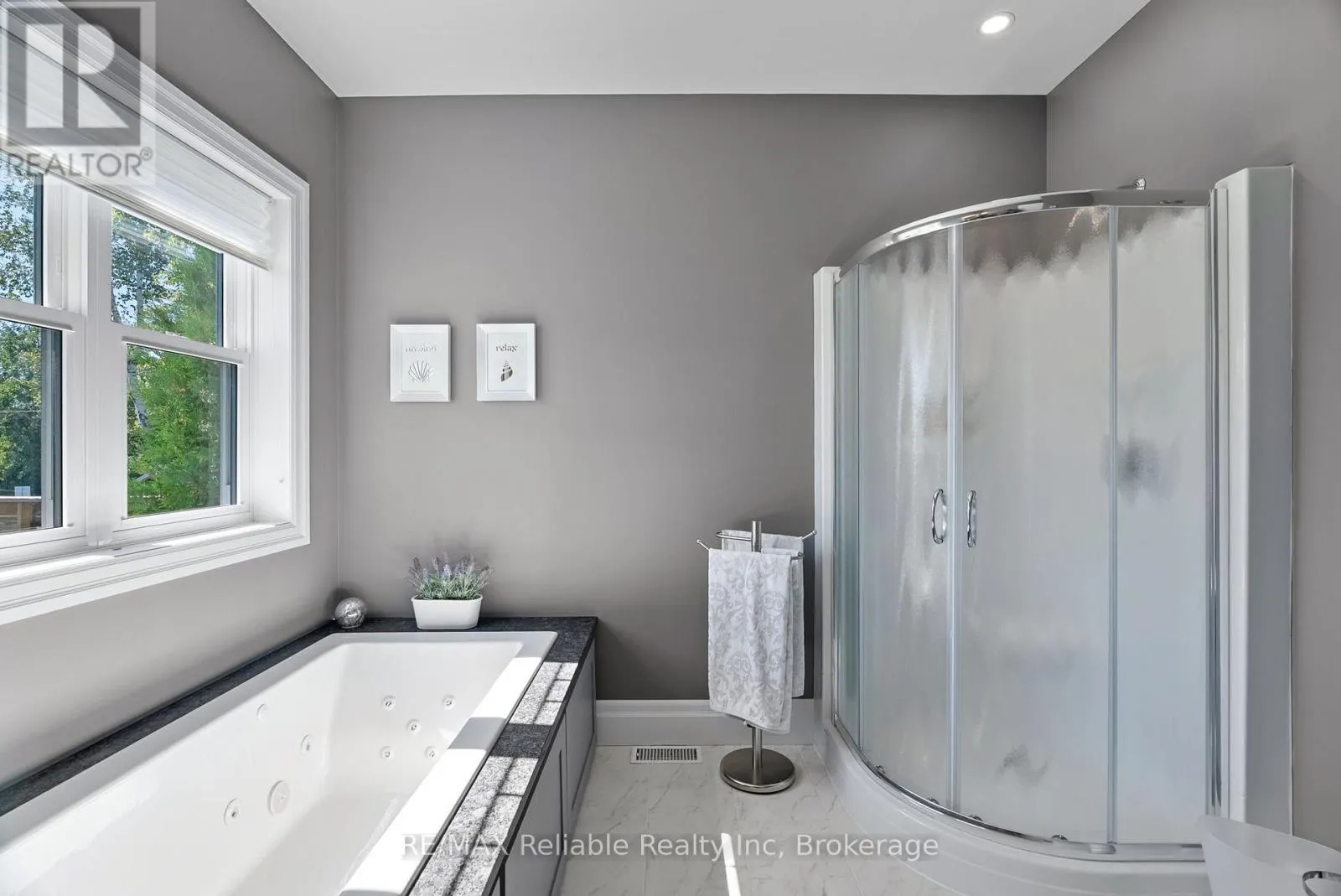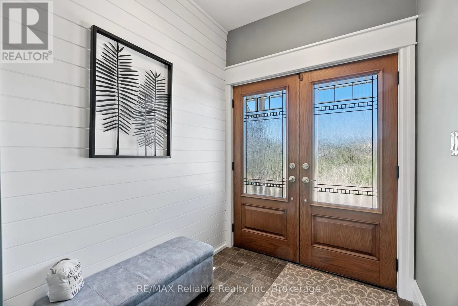 Cross Streets: Lidderdale and Fawn Creek Lane. ** Directions: Bluewater highway to Cameron Street to Lidderdale to Fawn Creek Lane. Built in 2019, this charming farmhouse-style bungalow offers exceptional curb appeal and is located on highly sought-after Fawn Creek Lane, just a five-minute walk to Bayfield's beautiful Lake Huron beaches. Step inside to an open-concept living, kitchen, and dining area featuring coffered ceilings, hardwood floors, and a cozy fireplac The kitchen is a chefs delight with granite countertops, an island with seating, built-in ovens, and an adjacent pantry. The main floor also includes a spacious primary suite with hardwood flooring, walk-in closets and a private ensuite, plus a second bedroom and full four-piece bath. The fully-finished lower level provides even more living space with a family room, two additional bedrooms, a three-piece bath, and abundant storage. Comfort is enhanced with in-floor hot water heating in both the basement and garage, as well as electric heating in the bathroom floors. Outdoors, the backyard is designed for both relaxation and recreation, overlooking a tranquil pond and featuring a private swim-spa. The attached two-car garage includes vinyl walls for easy maintenance, a workbench, and a storage area with a separate access door for lawn equipment. Located in the desirable south end, this home combines luxurious style, with casual comfort and convenience to Bayfield Main Street shops and restaurants. (id:27476)