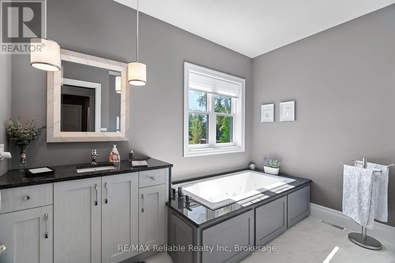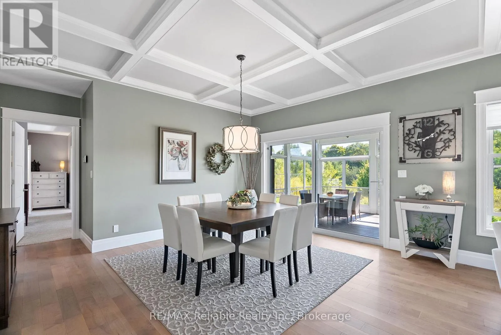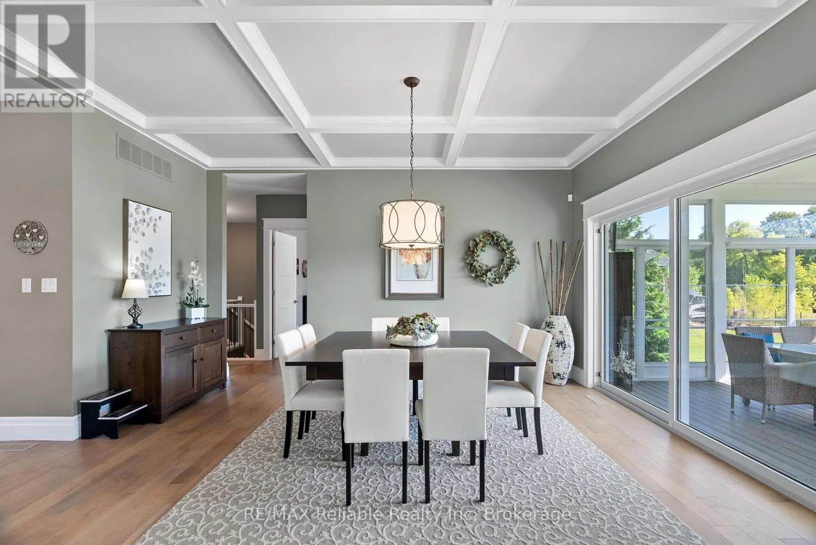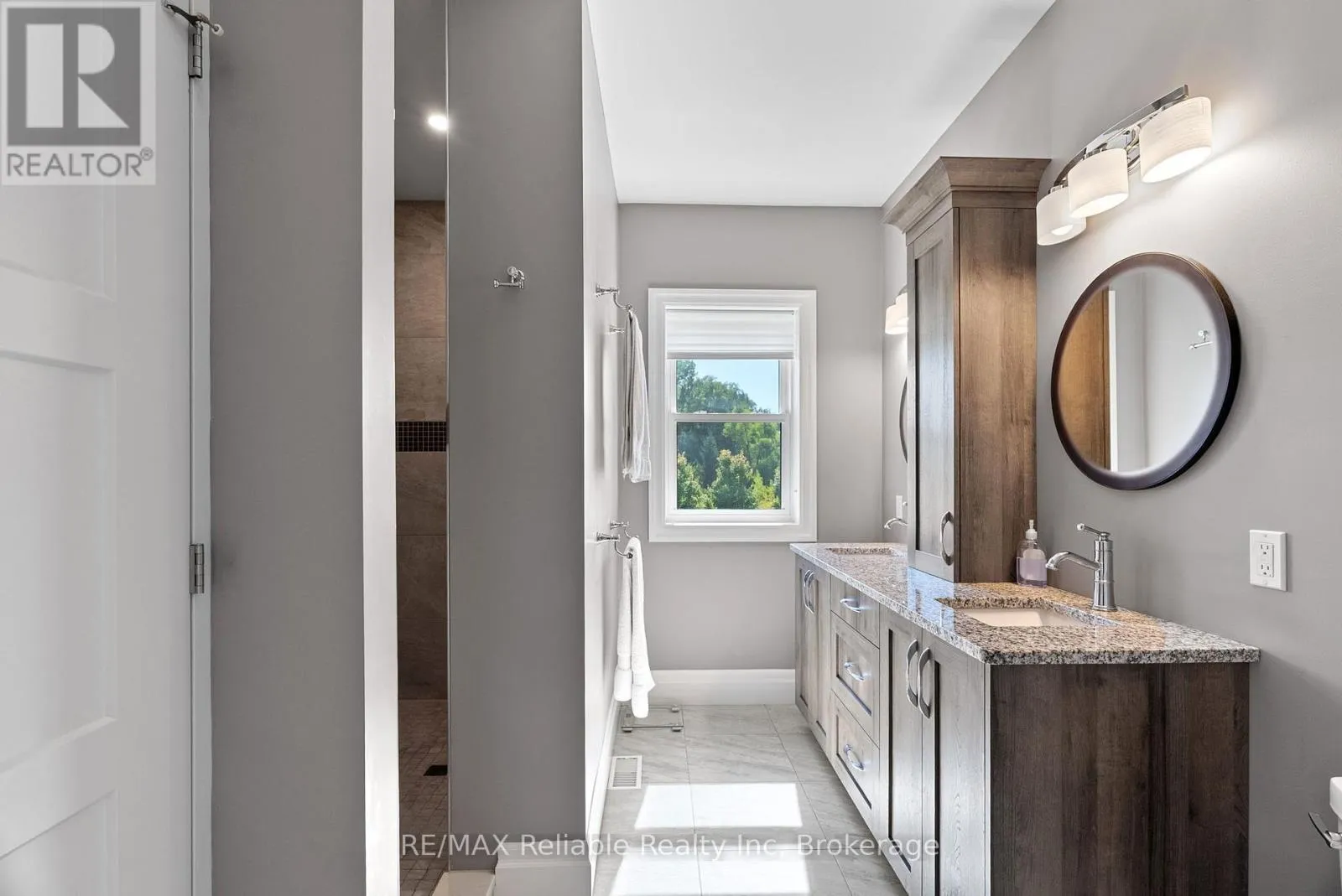 Cross Streets: Lidderdale and Fawn Creek Lane. ** Directions: Bluewater highway to Cameron Street to Lidderdale to Fawn Creek Lane. Built in 2019, this charming farmhouse-style bungalow offers exceptional curb appeal and is located on highly sought-after Fawn Creek Lane, just a five-minute walk to Bayfield's beautiful Lake Huron beaches. Step inside to an open-concept living, kitchen, and dining area featuring coffered ceilings, hardwood floors, and a cozy fireplac The kitchen is a chefs delight with granite countertops, an island with seating, built-in ovens, and an adjacent pantry. The main floor also includes a spacious primary suite with hardwood flooring, walk-in closets and a private ensuite, plus a second bedroom and full four-piece bath. The fully-finished lower level provides even more living space with a family room, two additional bedrooms, a three-piece bath, and abundant storage. Comfort is enhanced with in-floor hot water heating in both the basement and garage, as well as electric heating in the bathroom floors. Outdoors, the backyard is designed for both relaxation and recreation, overlooking a tranquil pond and featuring a private swim-spa. The attached two-car garage includes vinyl walls for easy maintenance, a workbench, and a storage area with a separate access door for lawn equipment. Located in the desirable south end, this home combines luxurious style, with casual comfort and convenience to Bayfield Main Street shops and restaurants. (id:27476)