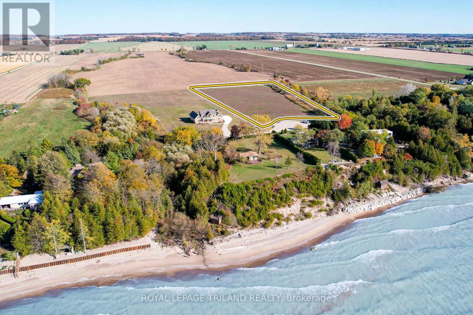 Cross Streets: Staffa Road. ** Directions: MAP to 73952 Durand Street, Bluewater, ON | Situated 1.25 KM off HWY 21 perched above Lake Huron & a short walk to easy Beach Access is this incredible 6.89 Acre Estate Style Lot, right in between Grand Bend & Bayfield with VIEWS OF LAKE HURON!. LAKE VIEW ESTATE LOT / PREMIUM VACANT RESIDENTIAL LAND | 6.9 ACRES OF UNTOUCHED POTENTIAL | FULLY SERVICED & READY TO BUILD | PREMIER 2ND ROW LOCATION W/ VIEWS OF LAKE HURON AS GOOD AS SOME LAKEFRONT PROPERTIES | 5 MIN WALK TO SECLUDED SANDY BEACH | MINUTES TO GRAND BEND & BAYFIELD. This 6.9-acre parcel offers a rare opportunity to secure a massive estate-sized lot with the same elite proximity to Lake Huron as its $2M to $3M+ lakefront neighbors, but at a fraction of the cost! Why settle for a standard suburban lot when you can command nearly 7 acres of rolling landscape overlooking the sparkling waters of Lake Huron? Positioned directly adjacent to a brand-new 2024 executive masterpiece, this oversized parcel offers the ultimate canvas for your own architecturally designed legacy home. Whether you envision a sprawling Cape Cod estate, a modern glass-walled sanctuary, or a multi-generational family compound with room for a secondary residence, workshop, or private orchards, this property delivers the scale and privacy that is becoming impossible to find along the coast. KEY FEATURES INCLUDE: 1) Massive Acreage: Even larger than the 2 neighboring executive estate lots, providing 6.9 acres of rolling pastures and epic views of Lake Huron 2) Build-Ready: A fully serviced building lot, significantly reducing your development timeline and complexity. 3) Spectacular location: Offers the beach lifestyle but with enough land for a larger executive style home 4) Lakefront style proximity w/o lakefront price tag: Located just 145 meters from the shoreline w/ subdivision beach access just a 5 min walk from lot. 5) Investment Security: Surrounded by high-end custom builds and oversized parcels, ensuring your future build is supported by premium "best-in-class" property values. Stop searching for the perfect house and build exactly where you want to be-on a massive, private, lake-view acreage estate lot that defines the gold standard of Ontario's West Coast living! (id:27476)