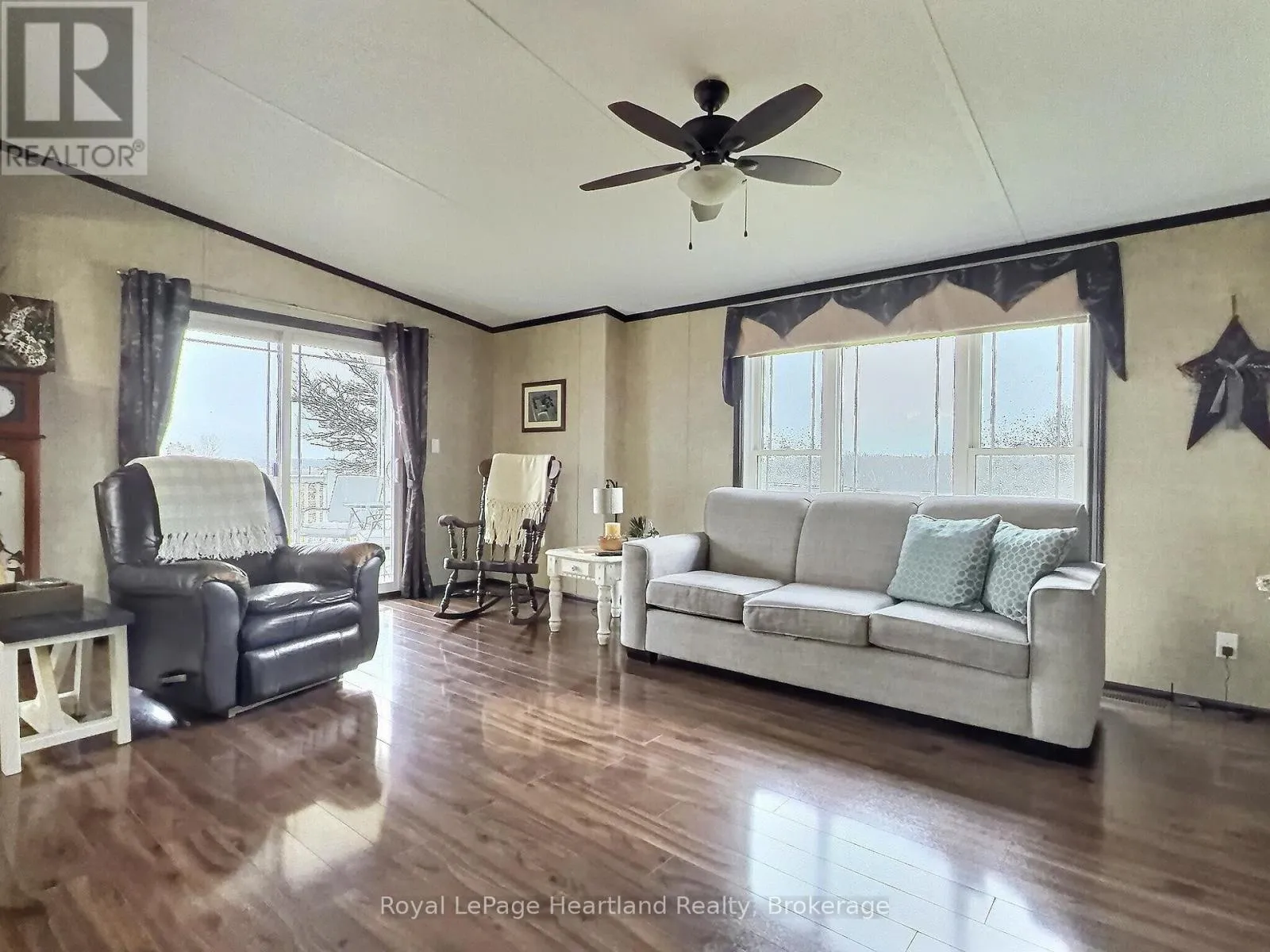 Cross Streets: Pepper Rd, Rodgerville Rd, Zurich Hensall Road. ** Directions: From Zurich/Hensall Rd, turn South onto Babylon Line. Property is past Rodgerville Rd on the right. Here's your chance to own a pristine home on a scenic country property. Set back nicely from the paved road, and overlooking miles of bush lot and farmland, it is a lovely private setting for this 12 year old, well kept and locally built modular home boasting an open layout with cathedral ceilings and generous sized rooms. The oversized primary bedroom includes built-in closet storage and an attached 2pc bathroom. Additionally, there is a second bedroom with views of the back yard, and another 4 piece bathroom. The layout is optimized to allow for a large living, dining and open concept kitchen area, with access to the front foyer, and covered deck. Spacious entrance areas, both front and back including a main floor laundry and utility room. There is no basement but the accessible crawl space has a good concrete floor for storage etc. Serviced with a well and septic bed, propane furnace with central air, plus an electric start gas generator to ensure comfort and safety when needed. For the wood worker this property offers a 24x24ft workshop, insulated and heated with a wood stove, with a 12x24ft open/lean to area at the rear. Another 22x28ft older shed is also on site. A well built 10x8ft "craft and storage" shed along with an 8x12ft shed, perfect for motorcycle storage. There's plenty of room on the 2.5 acres lot for animals and pets, and a large garden. Make this piece of country heaven your home. (id:27476)