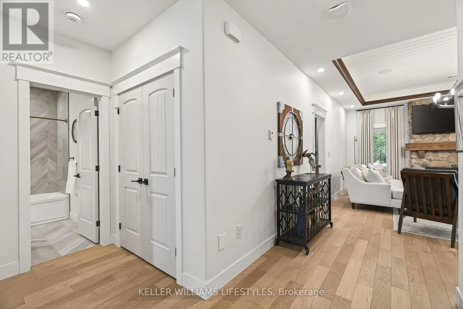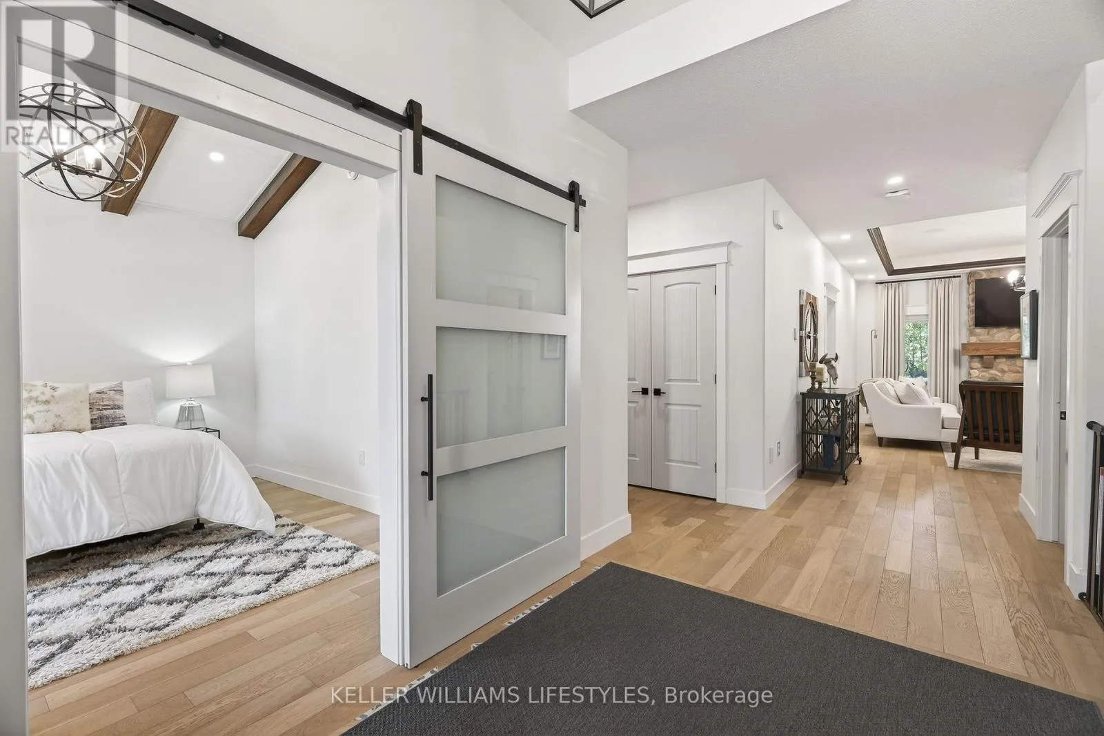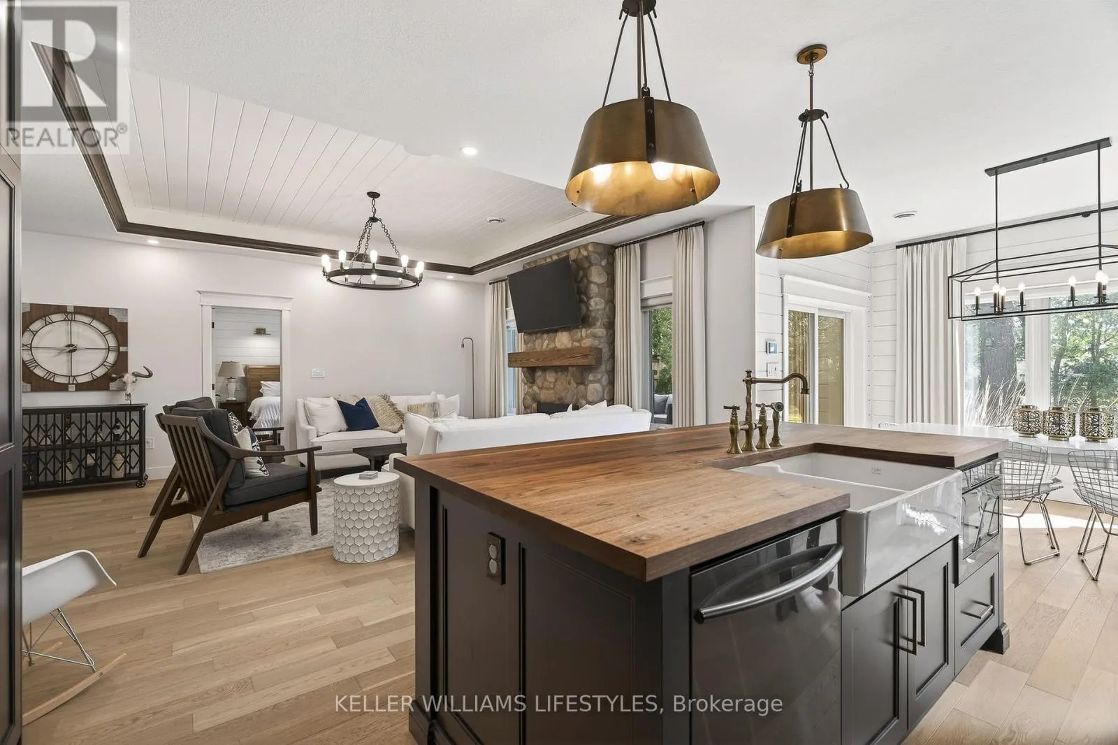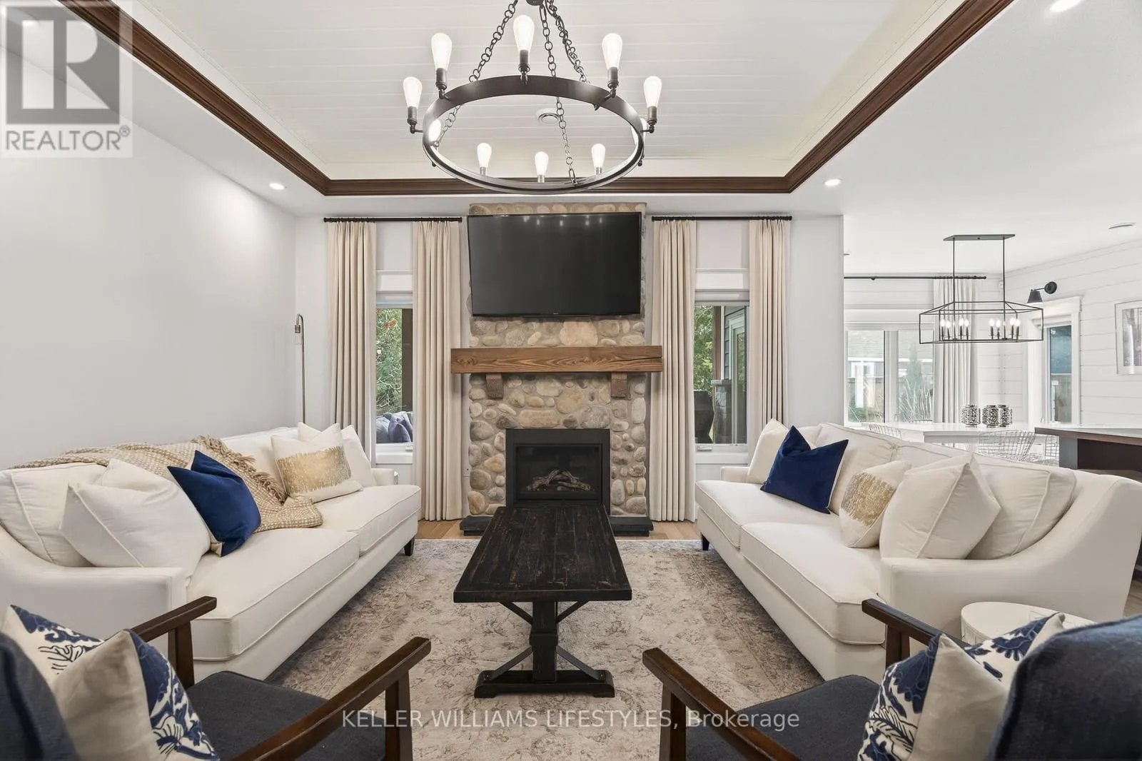Cross Streets: Charles St and Delevan St. ** Directions: From Bayfield Main St N turn left onto Charles St then Right onto Delevan St. Welcome to 22 Delevan Street, a stunning custom-built home tucked away on a quiet street in the heart of Bayfield. Just a short walk to Main Street, the beach, parks, and local shops, this property offers the perfect blend of small-town charm and elevated living. Originally designed as a Lottery Dream Home by award-winning builder Meinen Custom Homes and designer Jillian Summers, this 1.5-storey home showcases exceptional craftsmanship and thoughtfully curated finishes throughout. Step inside to a bright, open-concept layout featuring heated floors, inlaid tile, and a striking river rock gas fireplace that anchors the main living space, complemented by tray ceiling detail and abundant natural light. The custom kitchen is both functional and refined, offering quartz countertops, walnut butcher block accents, premium cabinetry, and seamless flow into the dining and living areas. The main floor primary suite features a walk-in closet and a spa-inspired ensuite with double vanity and glass shower, while an additional bedroom or office provides flexibility for everyday living. Upstairs, a private retreat includes a spacious bonus area, an additional bedroom, and a full bathroom, ideal for guests or extended family. The exterior is equally impressive, featuring a timeless blend of board and batten, stone, and wood beam accents. A covered rear patio with TV hookup and fan overlooks the private yard, creating the perfect space to relax or entertain. The attached double garage includes an electric vehicle charger, and the home offers parking for up to six vehicles. Additional features include Control4 home automation, energy-efficient construction, and Net Zero readiness, offering future-forward efficiency and comfort. Situated on a 58' x 127' lot and built in 2017, this home is just steps from Bayfield's marina, restaurants, shops, and trails, presenting a rare opportunity to enjoy luxury living in one of Ontario's most sought-after lakeside communities. (id:27476)