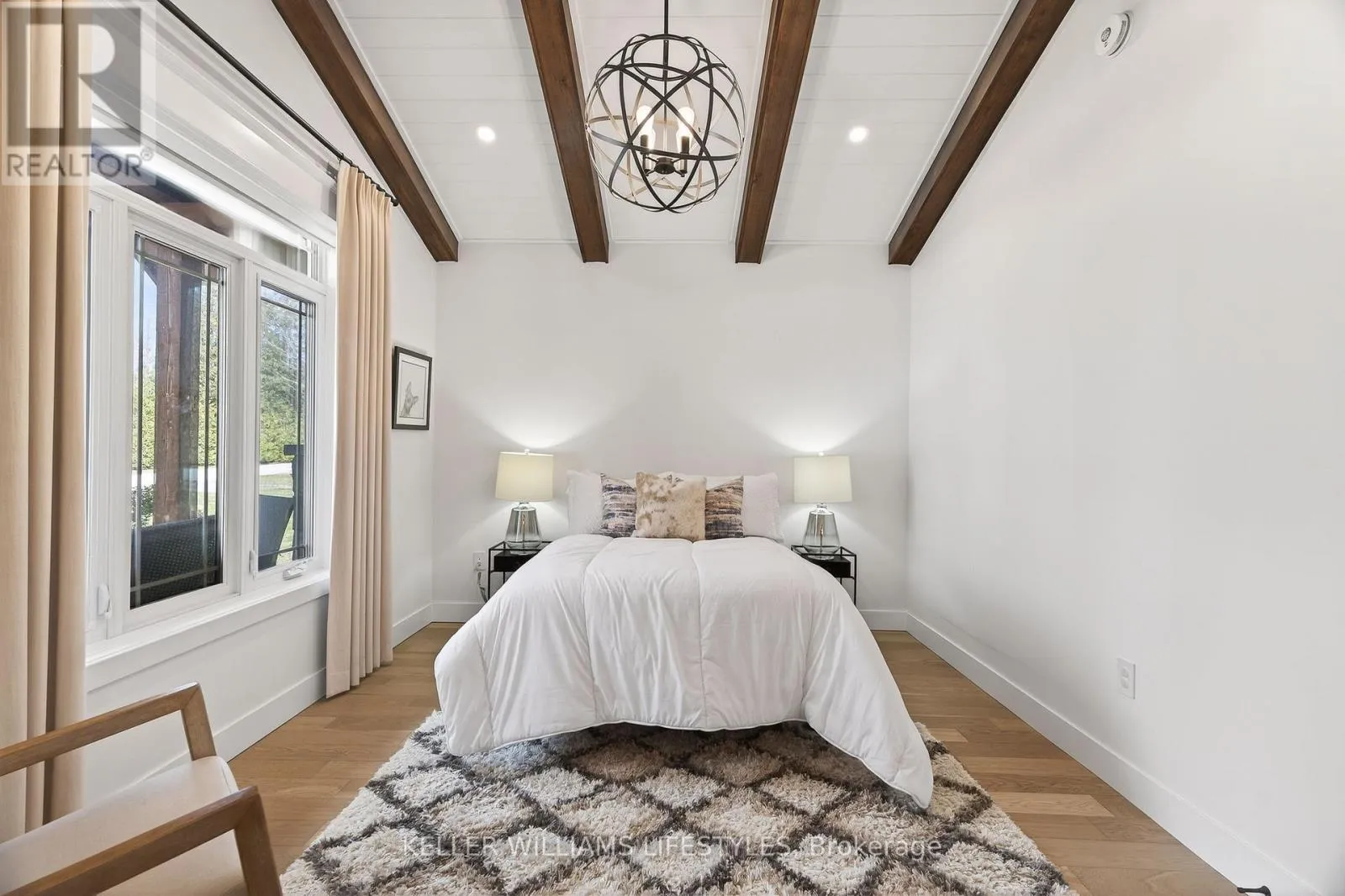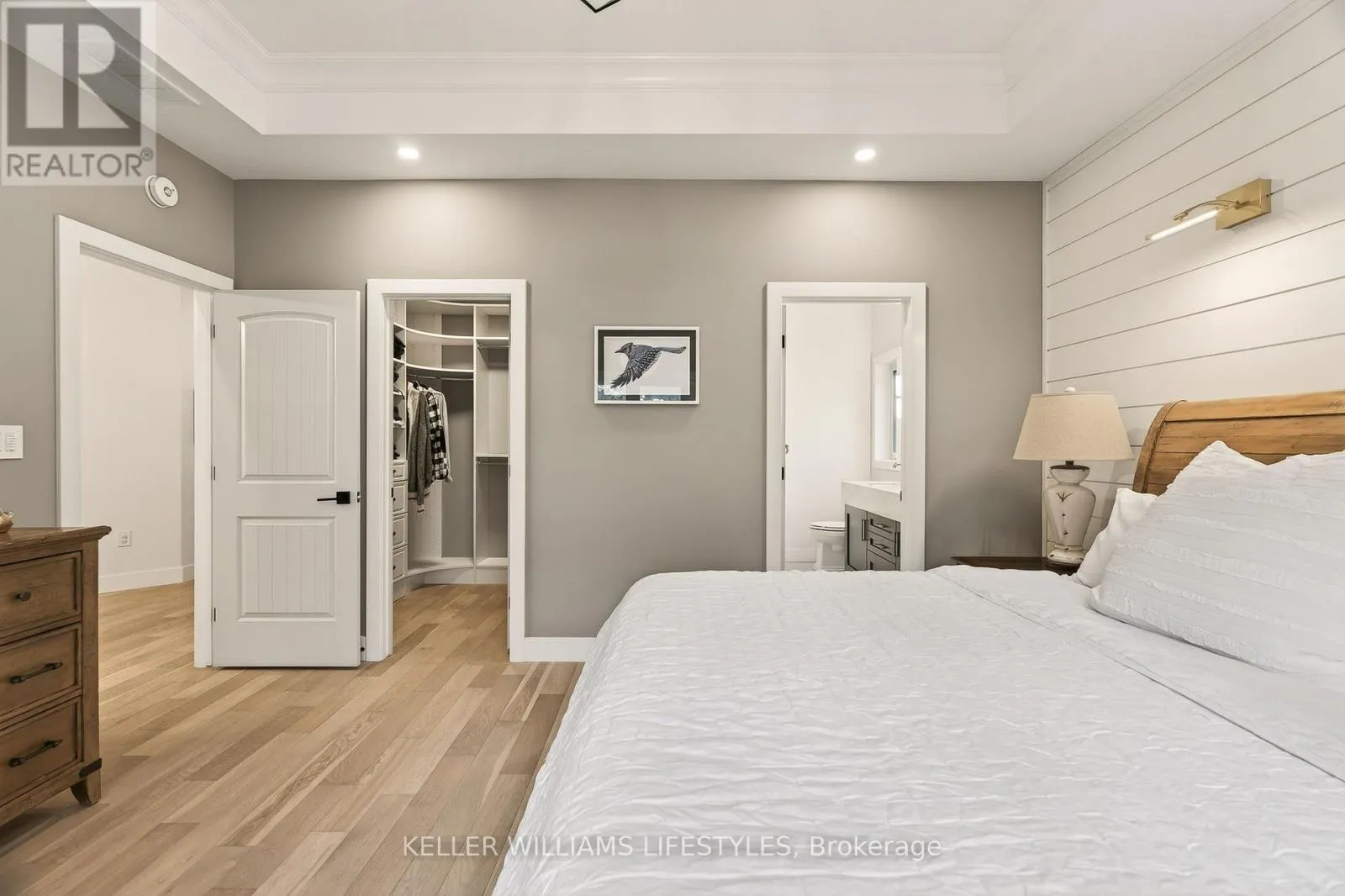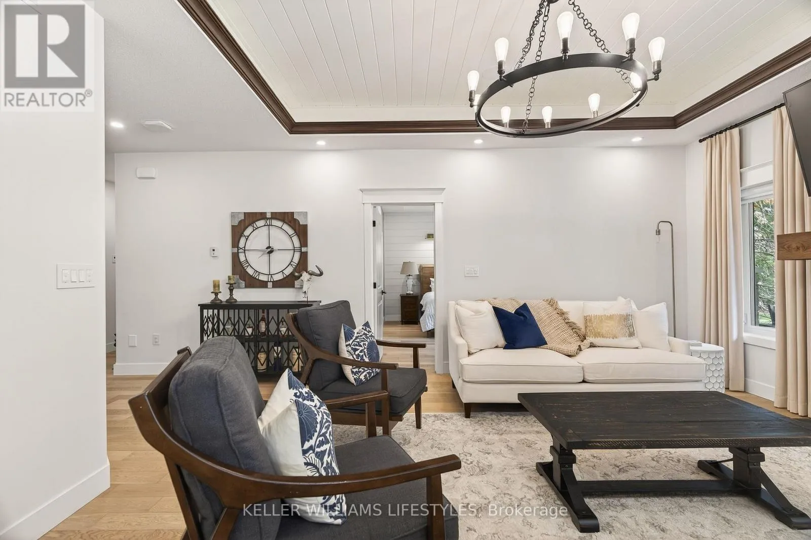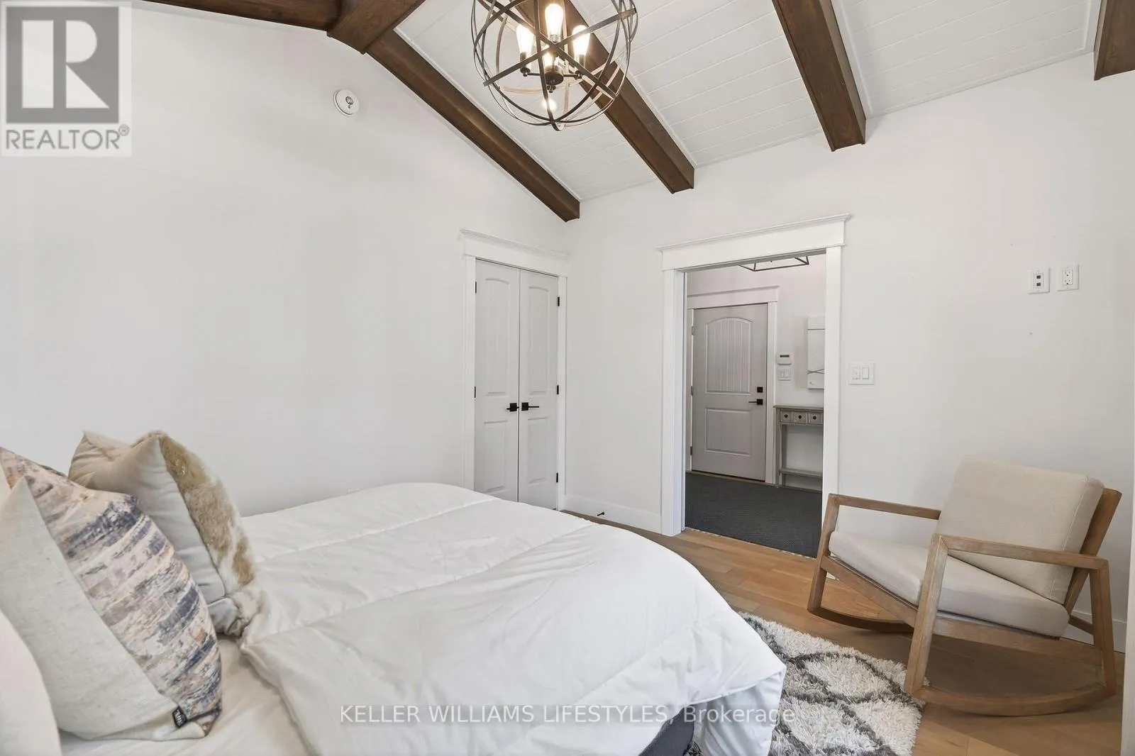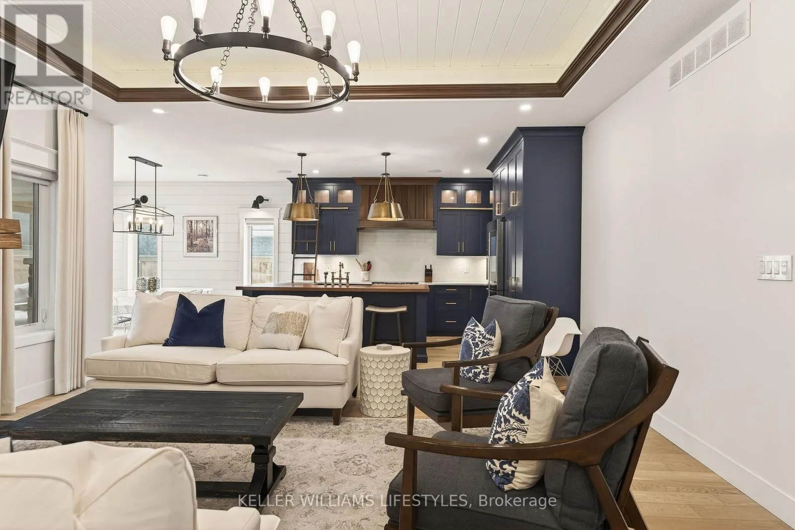 Cross Streets: Charles St and Delevan St. ** Directions: From Bayfield Main St N turn left onto Charles St then Right onto Delevan St. Welcome to 22 Delevan Street, a stunning custom-built home tucked away on a quiet street in the heart of Bayfield. Just a short walk to Main Street, the beach, parks, and local shops, this property offers the perfect blend of small-town charm and elevated living. Originally designed as a Lottery Dream Home by award-winning builder Meinen Custom Homes and designer Jillian Summers, this 1.5-storey home showcases exceptional craftsmanship and thoughtfully curated finishes throughout. Step inside to a bright, open-concept layout featuring heated floors, inlaid tile, and a striking river rock gas fireplace that anchors the main living space, complemented by tray ceiling detail and abundant natural light. The custom kitchen is both functional and refined, offering quartz countertops, walnut butcher block accents, premium cabinetry, and seamless flow into the dining and living areas. The main floor primary suite features a walk-in closet and a spa-inspired ensuite with double vanity and glass shower, while an additional bedroom or office provides flexibility for everyday living. Upstairs, a private retreat includes a spacious bonus area, an additional bedroom, and a full bathroom, ideal for guests or extended family. The exterior is equally impressive, featuring a timeless blend of board and batten, stone, and wood beam accents. A covered rear patio with TV hookup and fan overlooks the private yard, creating the perfect space to relax or entertain. The attached double garage includes an electric vehicle charger, and the home offers parking for up to six vehicles. Additional features include Control4 home automation, energy-efficient construction, and Net Zero readiness, offering future-forward efficiency and comfort. Situated on a 58' x 127' lot and built in 2017, this home is just steps from Bayfield's marina, restaurants, shops, and trails, presenting a rare opportunity to enjoy luxury living in one of Ontario's most sought-after lakeside communities. (id:27476)
