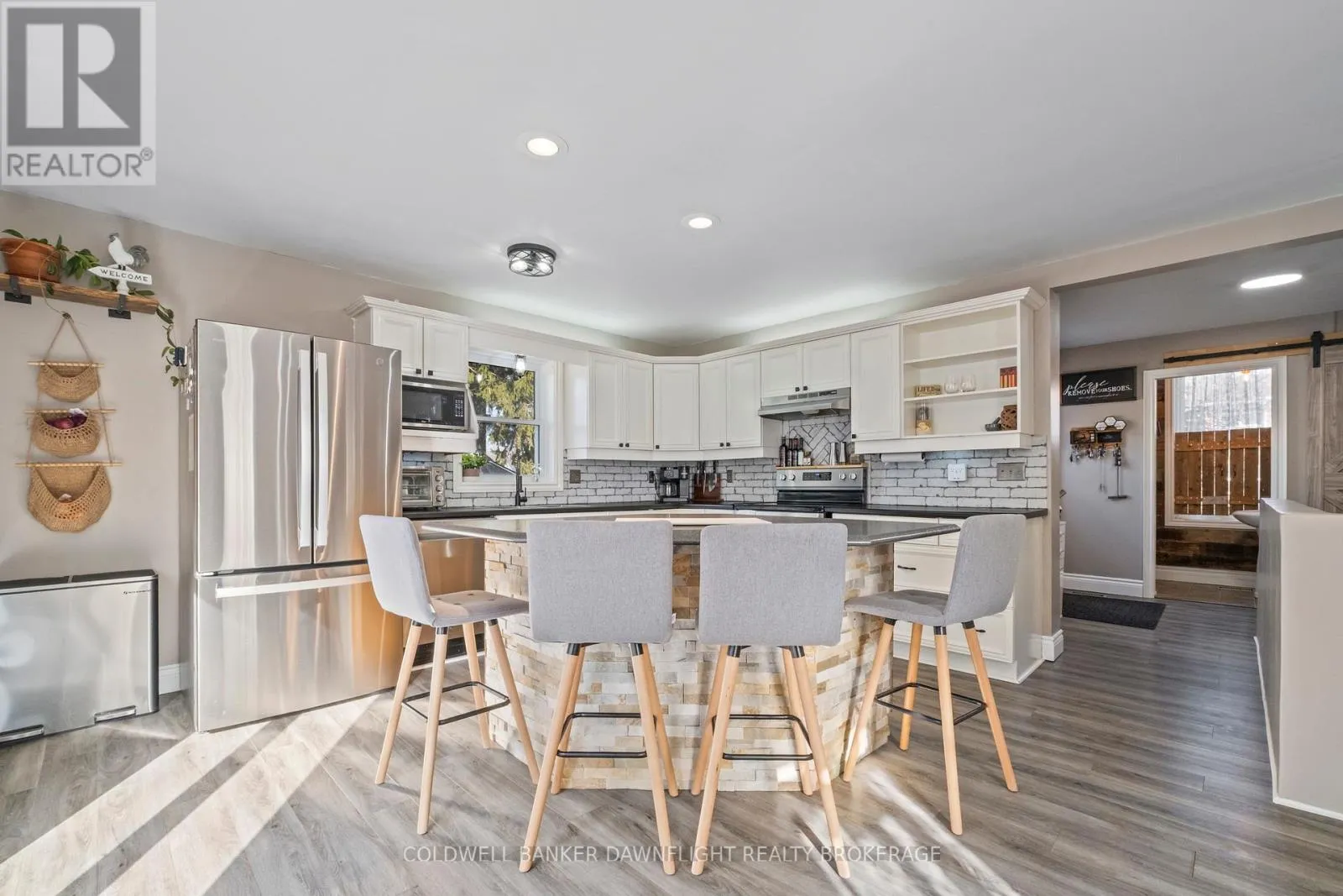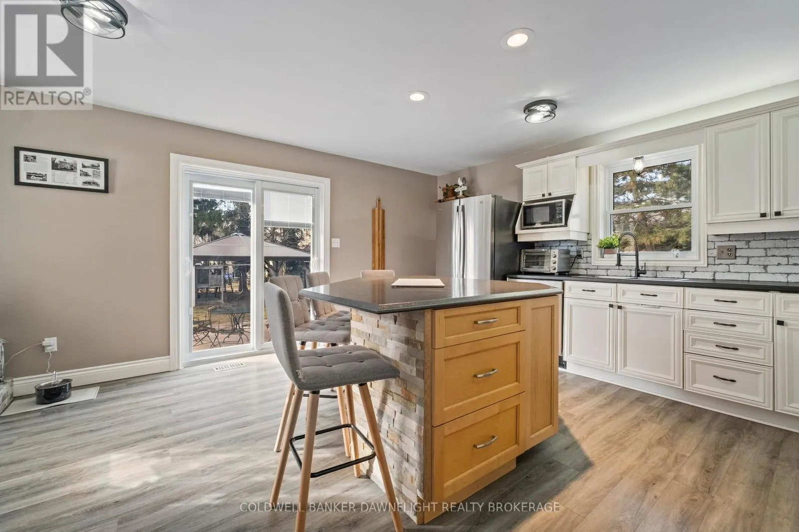 Cross Streets: Nelson Street & Queen Street. ** Directions: Off of Main St (King St) turn North onto Nelson Street. House is on the corner of Nelson & Queen Street. This charming yellow brick 2-storey home offers a blend of character and functionality in the heart of Hensall, complemented by incredible curb appeal. Featuring 4 bedrooms and 2 bathrooms, the home includes a spacious kitchen with island seating and appliances that flows seamlessly into a large dining area and inviting living room, highlighted by a striking 3-sided fireplace. Hardwood floors, high ceilings, and original details such as pocket doors add timeless appeal, while a dedicated office space with built-ins enhances everyday living. A thoughtfully designed mudroom with direct access from Nelson Street adds convenience for busy households. Upstairs, you'll find four well-sized bedrooms, a 4-piece bathroom, and the added convenience of second-floor laundry. The basement provides excellent storage, a 2-piece bathroom, and in-floor heating in the addition for added comfort. Mechanical updates include 200-amp electrical service and central air (2022). Set on a fully fenced lot, the outdoor space is ideal for entertaining, featuring a two-tier deck, two gazebos, and an outdoor kitchen with hydro. A detached insulated shop with a concrete floor and steel exterior, along with a separate guest or pool house with hydro, adds versatility. The expansive lot also offers potential for severance (buyer to verify), presenting additional future opportunity. Complete with a double-wide paved driveway, this property delivers space, character, and flexibility both inside and out. (id:27476)