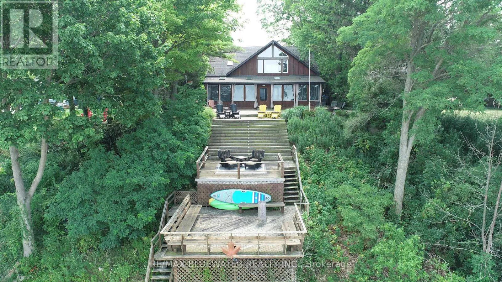 Cross Streets: Elizabeth St. ** Directions: Bluewater Highway to Evelyn St, Follow Evelyn St to Elizabeth St. Property near end of Elizabeth St on Lakeside. The picture-perfect lakefront retreat just north of Grand Bend! Start checking the boxes off for sandy beaches, panoramic lake views, private setting, spacious updated living space and turnkey with furniture included. Situated in the Highlands III neighborhood this year-round home catches your eye. With the charming log home wood siding finish complimented by the covered front entrance, landscaped gardens, second floor transom windows and stone chimney. On the lakeside its your private oasis with a 400 sqft three season sunroom that transitions you from the inside living space to your back yard. The sunroom is a great screened in space during the day with lexan coverings for colder nights. Large patio space leads to a three-tiered deck down to the sandy beaches of Lake Huron. Inside you have an updated open concept design with engineered hardwood flooring, vaulted knotty pine ceilings and a living space flowing with natural light. Enjoy the panoramic lake views found throughout the home. The kitchen includes stainless steel appliances, wood cabinetry, pantry for storage and granite countertops with eat up island. Living room with large lakeview windows and patio doors leading to the lakeside sunroom. A large eating area is great for entertaining family and the reading space at the front of the home is the perfect spot to get cozy by the gas fireplace. Main floor primary bedroom suite with double closets, full ensuite and lake views. The main floor also includes a second bedroom and additional full bathroom with laundry. Upstairs you have an open loft area that leads to the perfect office space with a large panoramic window overlooking the lake no need for a screen saver with this view. The second floor also includes a third bedroom and space for guests in the guest room. Come enjoy the relaxing days on the beach, the long walks along the sandy shores of Lake Huron, the nightly sunsets over the water and the calming lifestyle of living on the Lake. (id:27476)